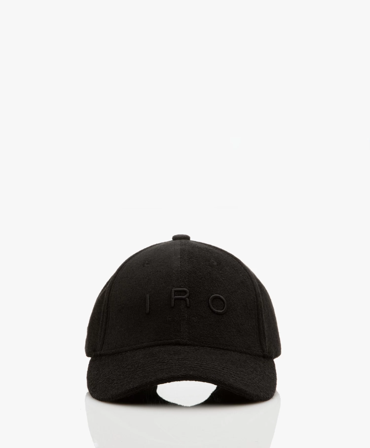 Met een stijlvolle pet geef je je outfit een coole streetwear-look. IRO’s zwarte Greb Sponge pet van katoenmix micro-badstof heeft een klassieke doorgestikte klep, is deels verstevigd aan de binnenzijde en verfraaid met ton-sur-ton logoborduur. De wijdte verstel je traploos met het koppelriemgespje aan de achterzijde.