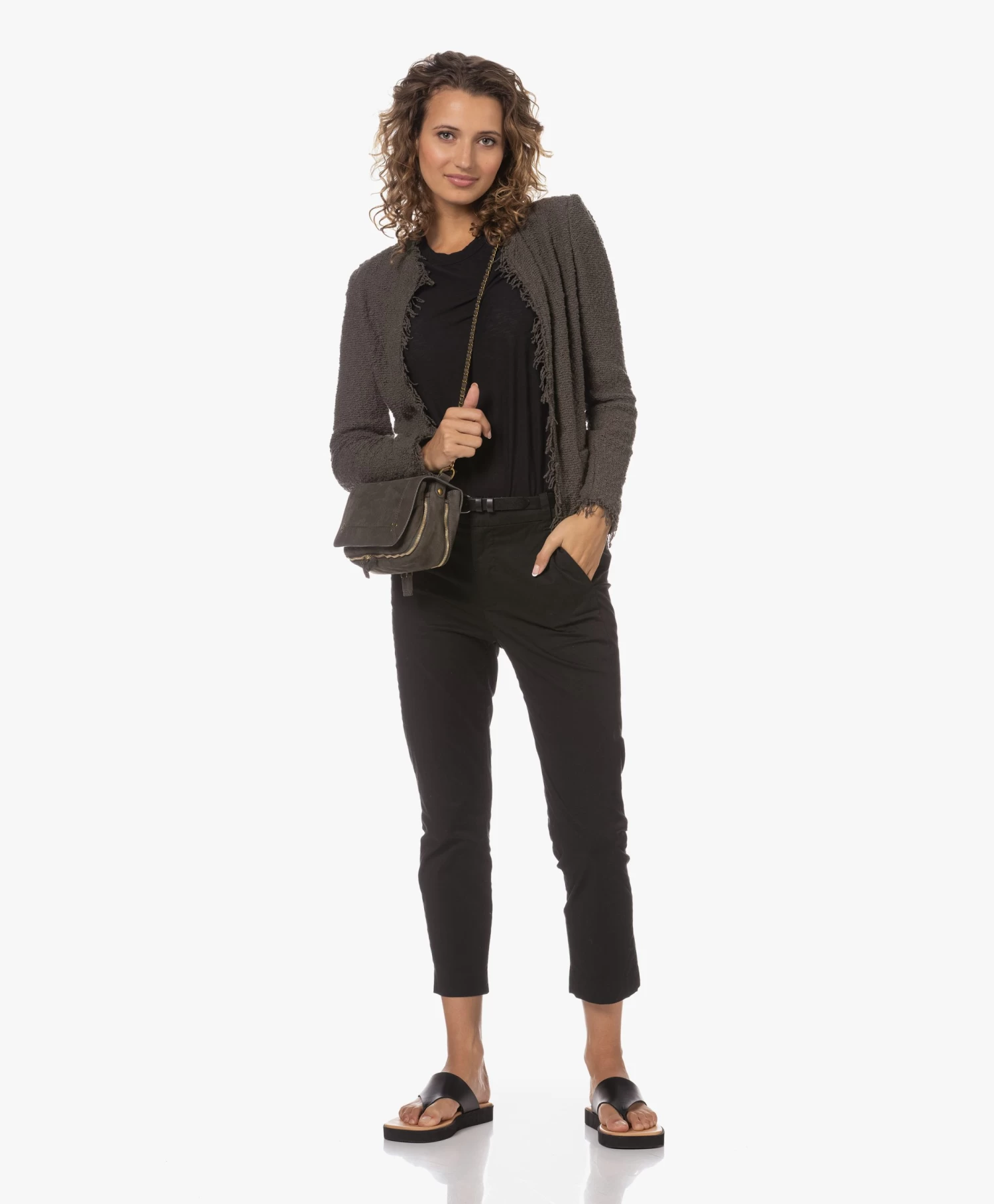 – Evy is 1.75m en draagt maat FR36 (XS)
