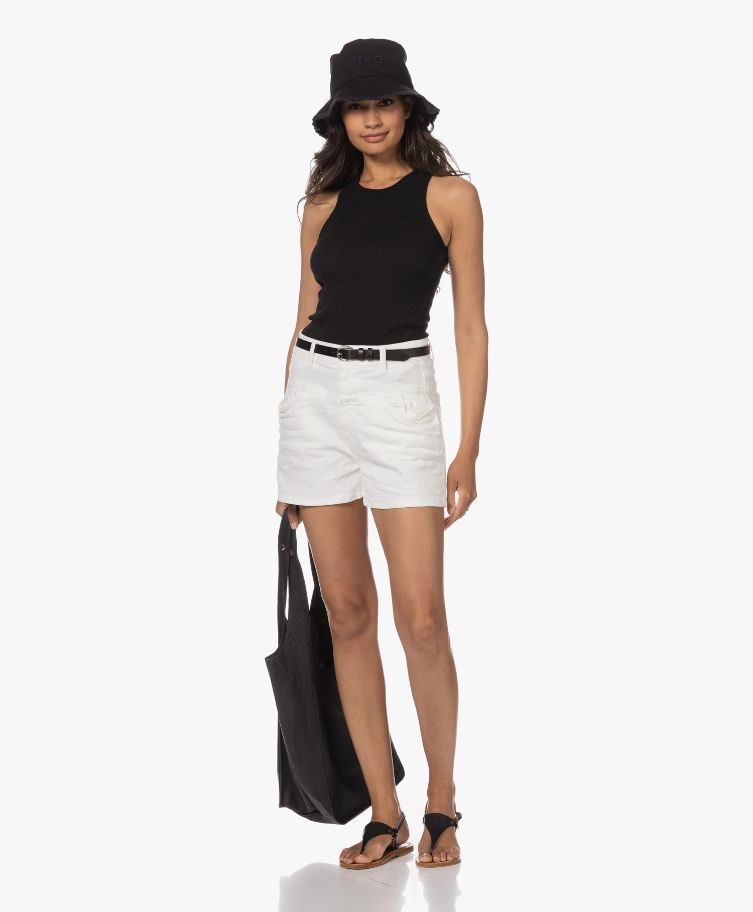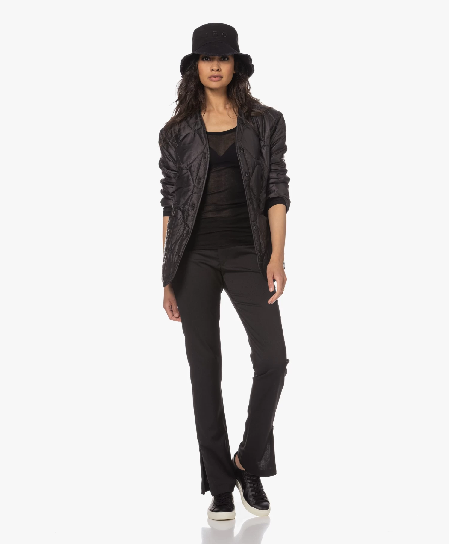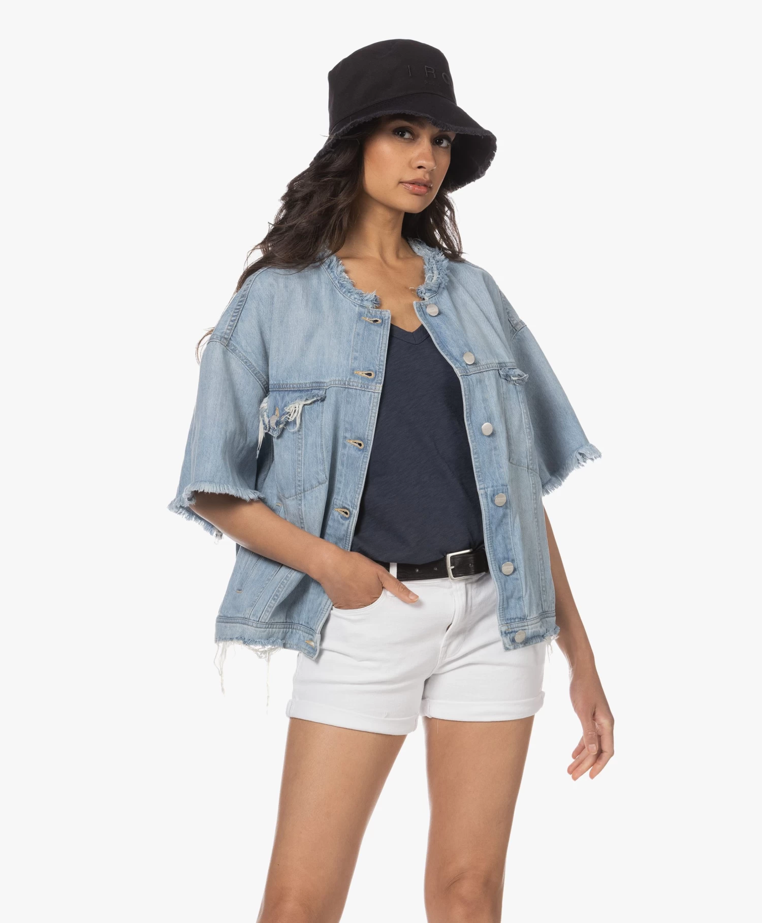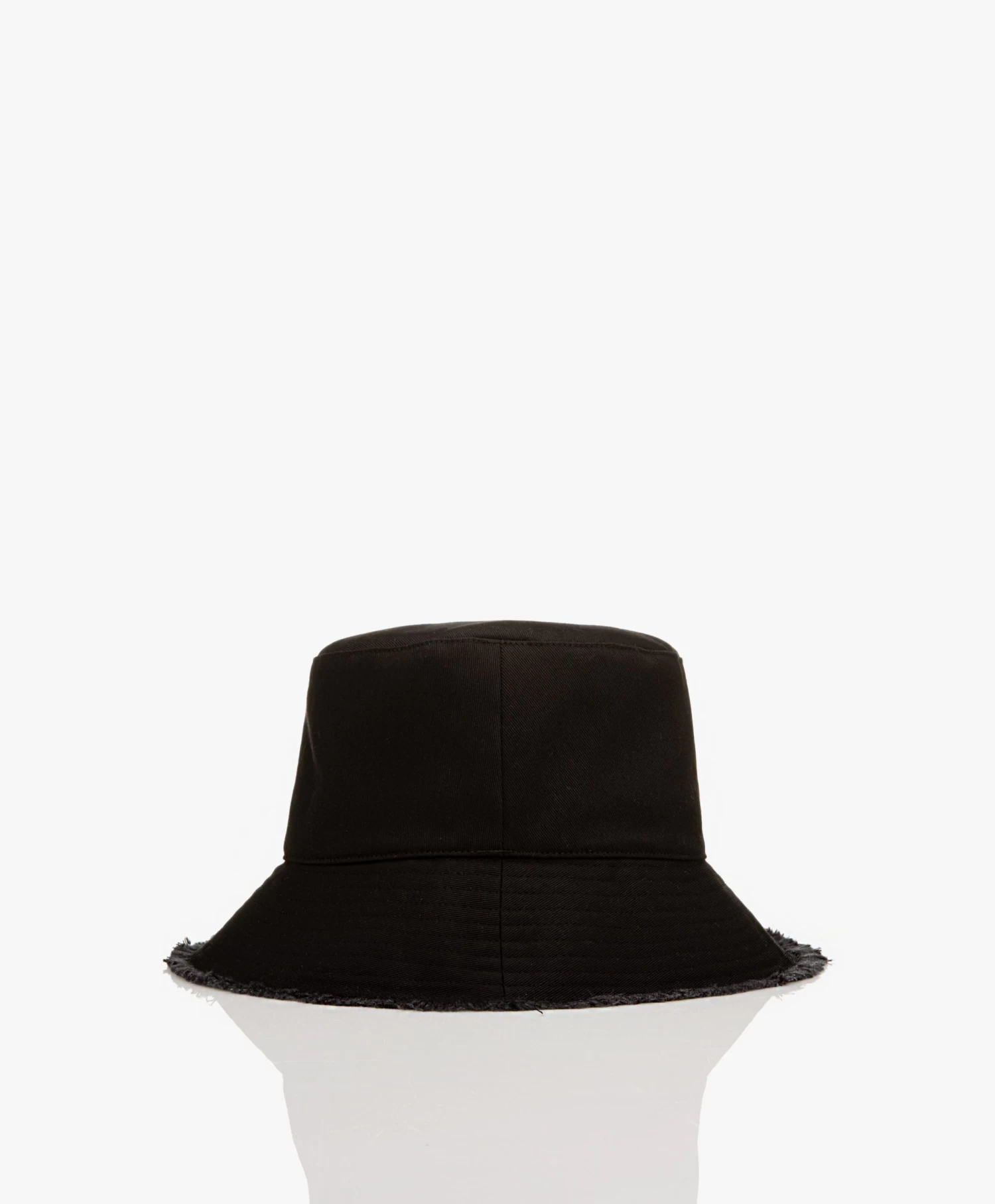 De bucket hat staat eigenlijk iedereen – probeer het, en je bent om. IRO’s zwarte Veneto Fringe is gemaakt van niet te zware katoenen twill. De rand is meernaalds doorgestikt en afgewerkt met een casual rafelrand. Ton-sur-ton logoborduur geeft aan dat het hier een heuse IRO betreft.