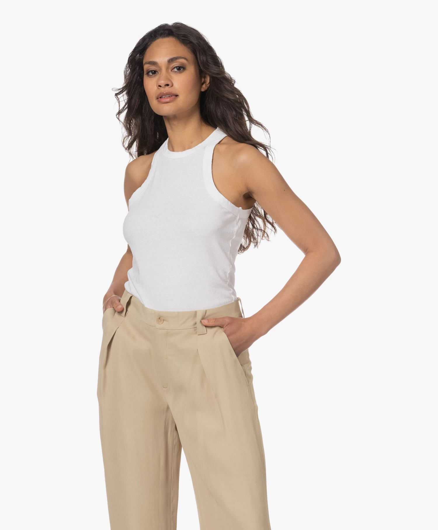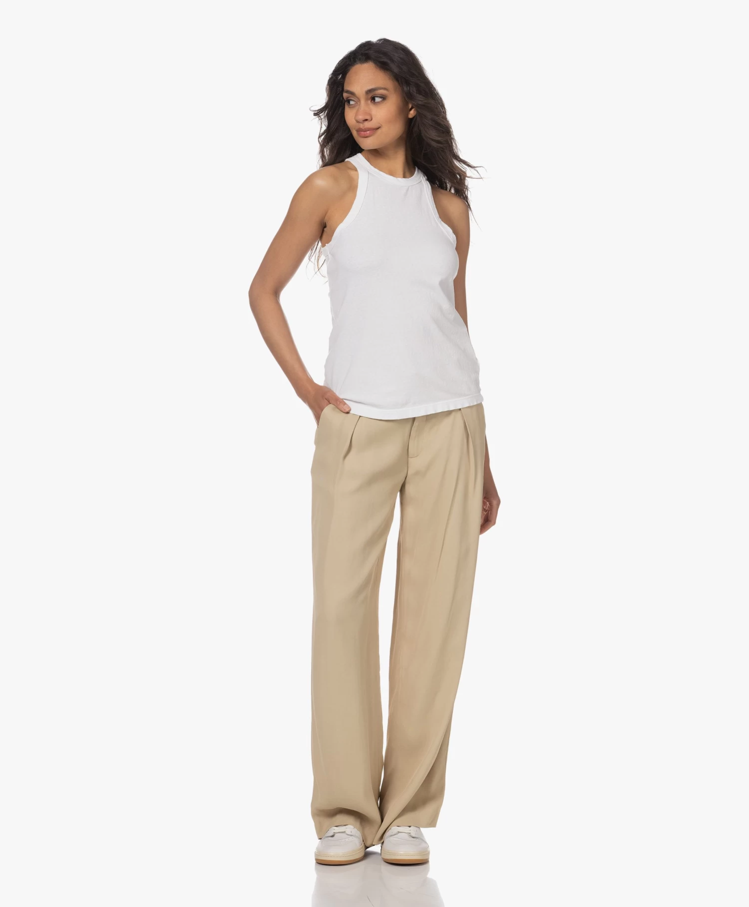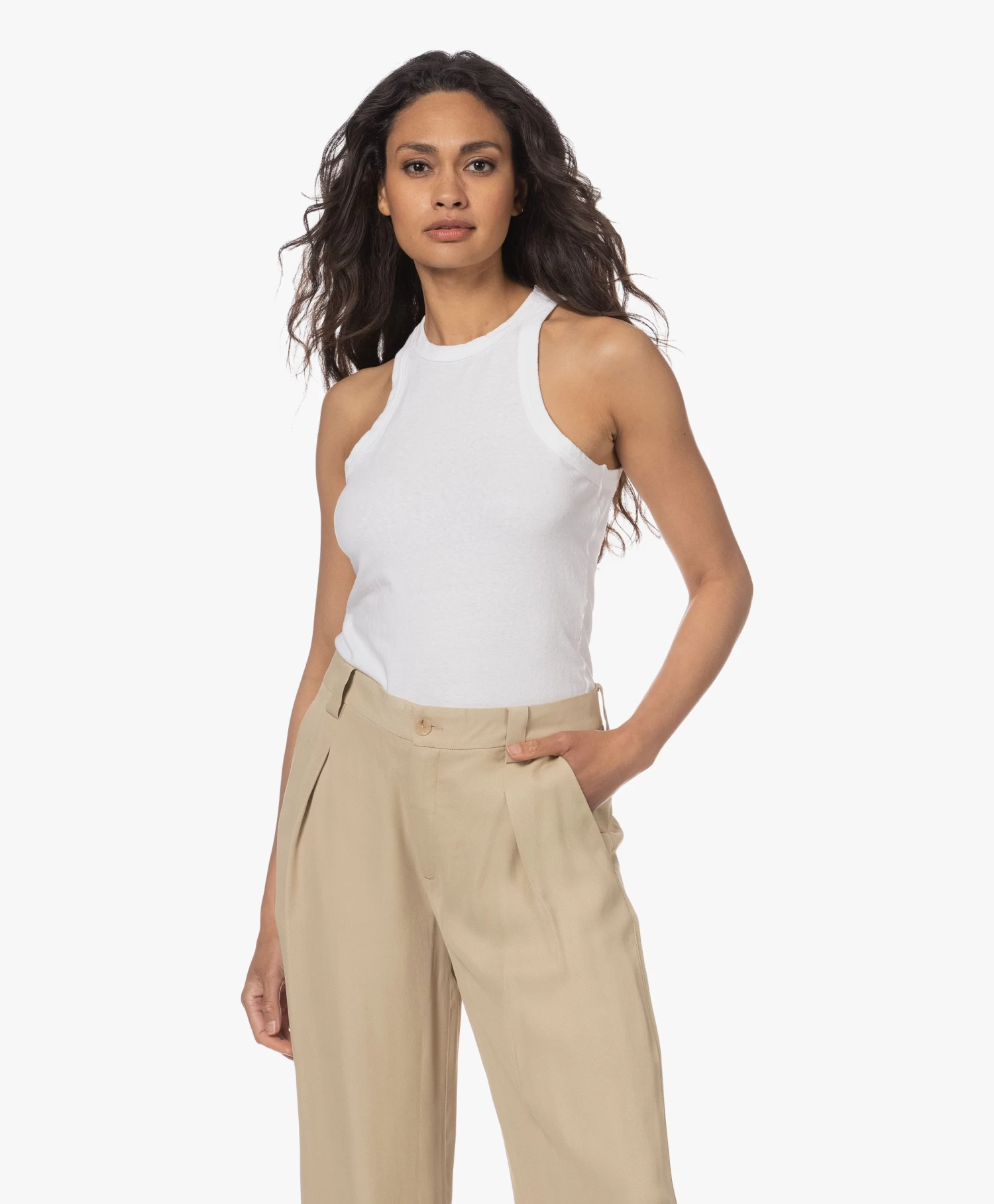 James Perse’s versie van de witte muscle tank is simpel, maar tegelijkertijd ó zo geraffineerd. Met de richting de hals weggesneden armsgaten en een gewassen finish, geeft deze gemoderniseerde klassieker je een eigentijdse uitstraling. De Cut Away tanktop is gemaakt van een middelzware jersey van katoen waarbij de toevoeging van een klein aandeel polyurethaan bijdraagt aan behoud van pasvorm en de levensduur vergroot.