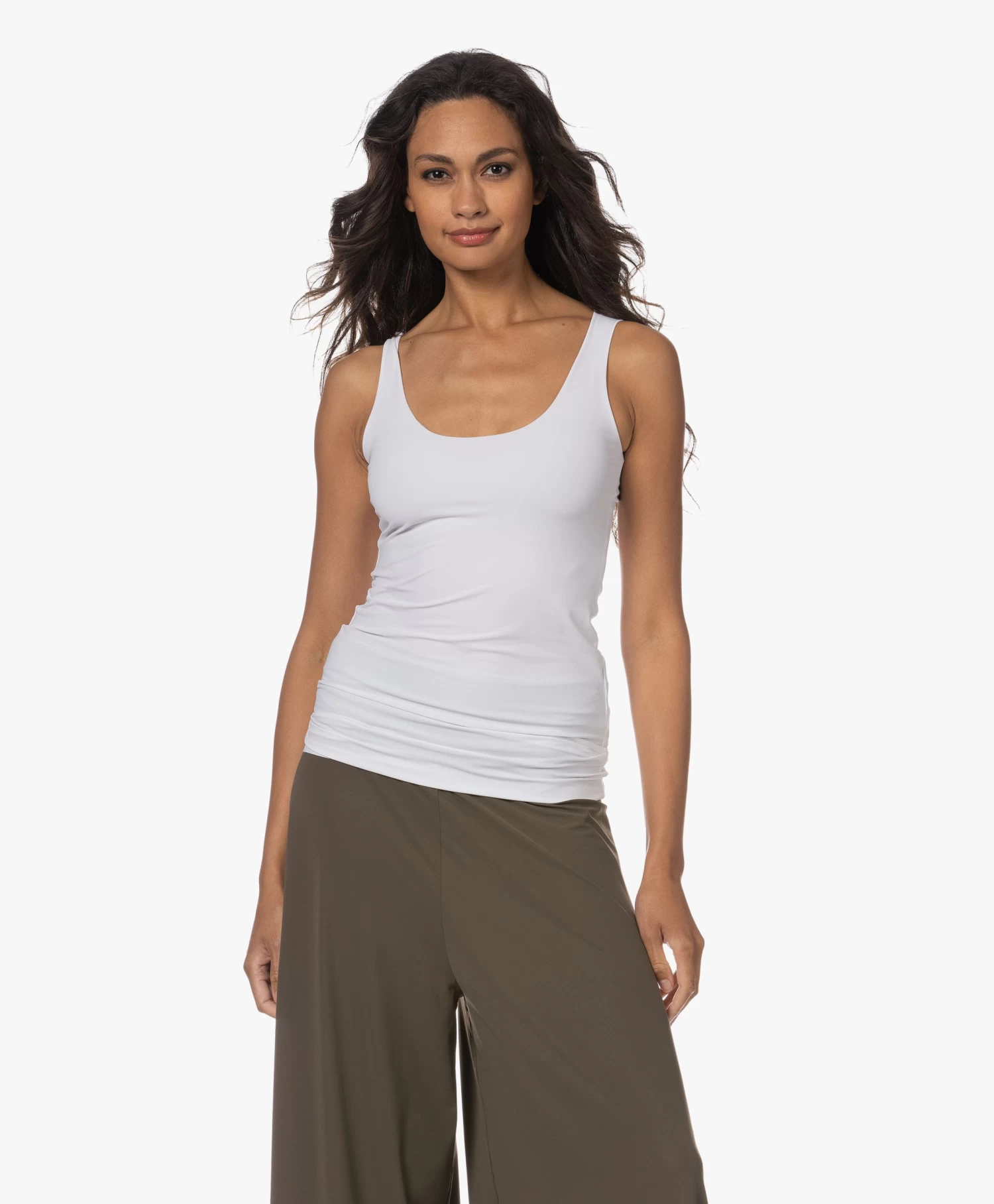 Deze witte Iyo tanktop van JapanTKY is hét perfecte basis item voor Ãedere dag! Draag deze ‘reversible’ stijl aan beide kanten; de hogere ronde hals aan de voorkant naar kantoor en ga ’s avonds voor de diepere ronde hals. De flatterende aangesloten stijl is gemaakt van een zachte en ultra-stretchy materialenmix voor een figuurvolgend silhouet – een item voor zowel solo áls gelaagde looks!