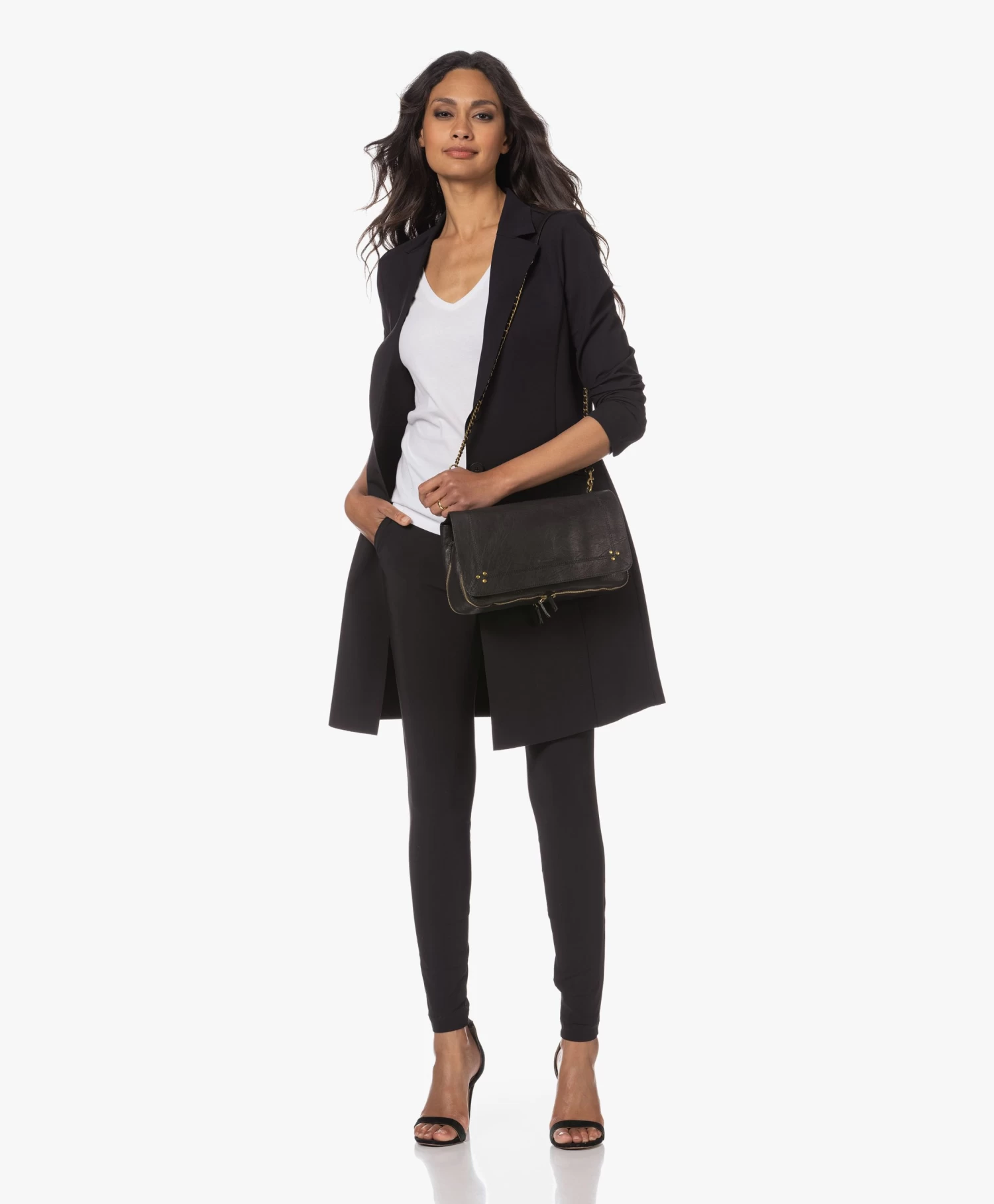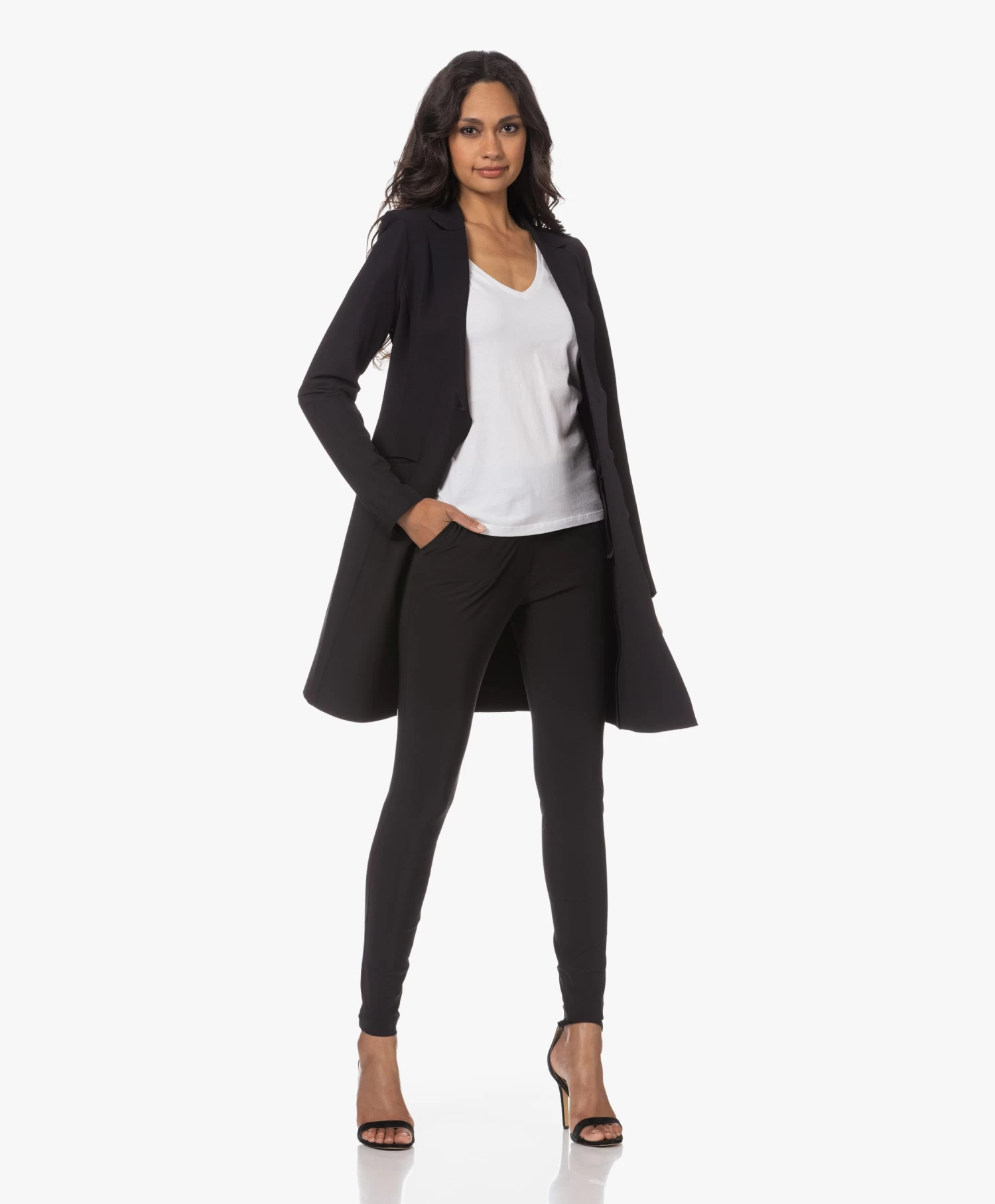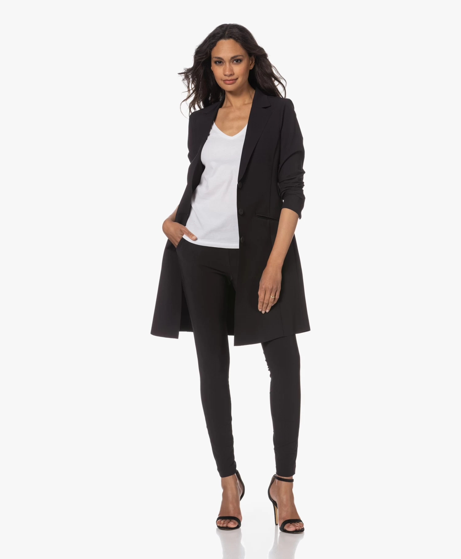 De iconische lange Luna blazer van JapanTKY in een stijlvolle diepzwarte kleurtint. Deze flatterende, middelzware en comfortabele stijl is gemaakt van een dikkere travel jersey kwaliteit met een vleugje stretch voor een perfecte pasvorm. Deze travel jersey kwaliteit is een easy-care, kreukvrije en gladde kwaliteit.