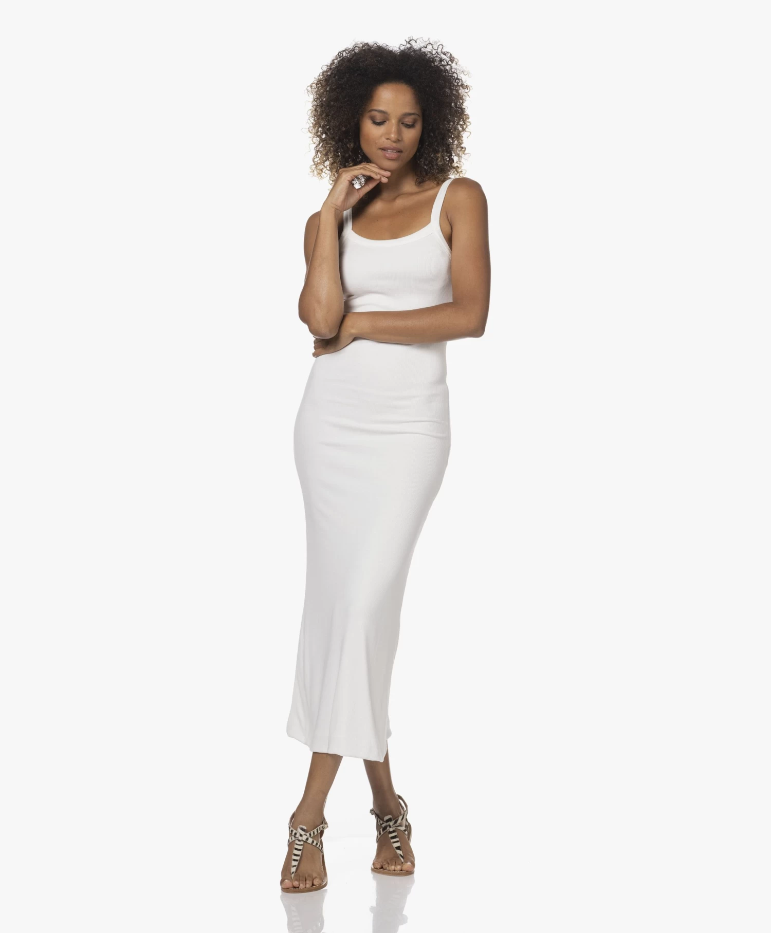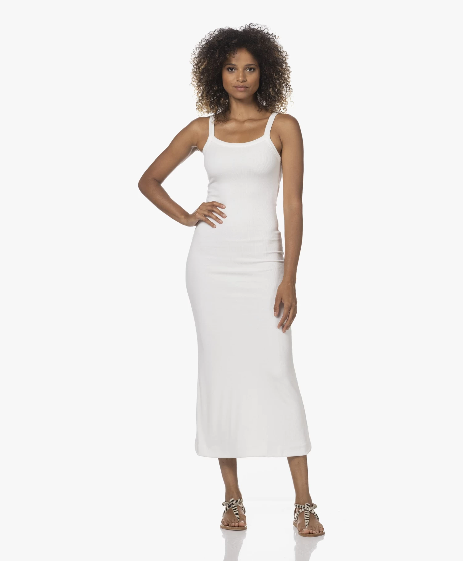 Japantky Yukata Dubbellaagse Rib Jersey Maxi Jurk – Panna