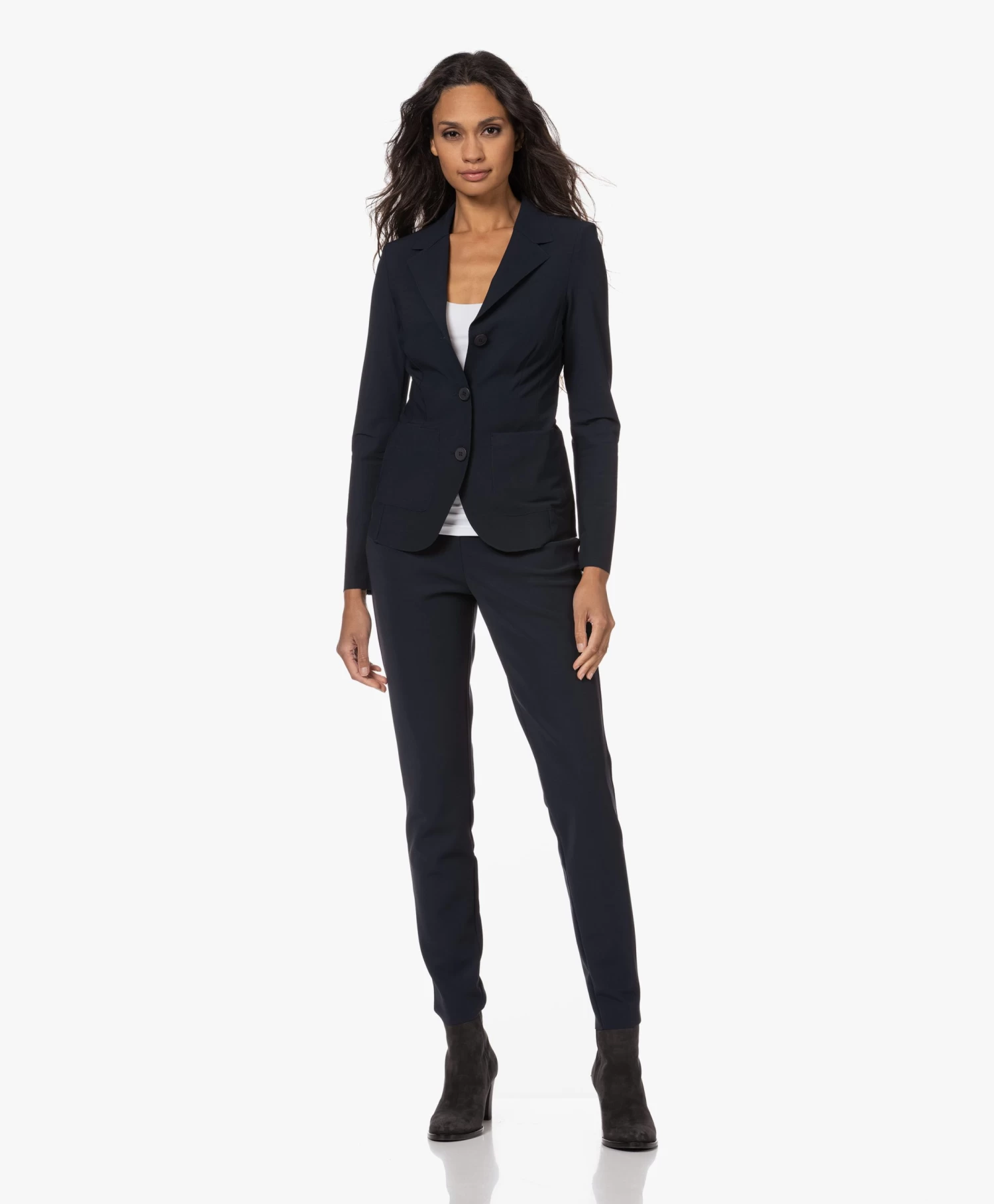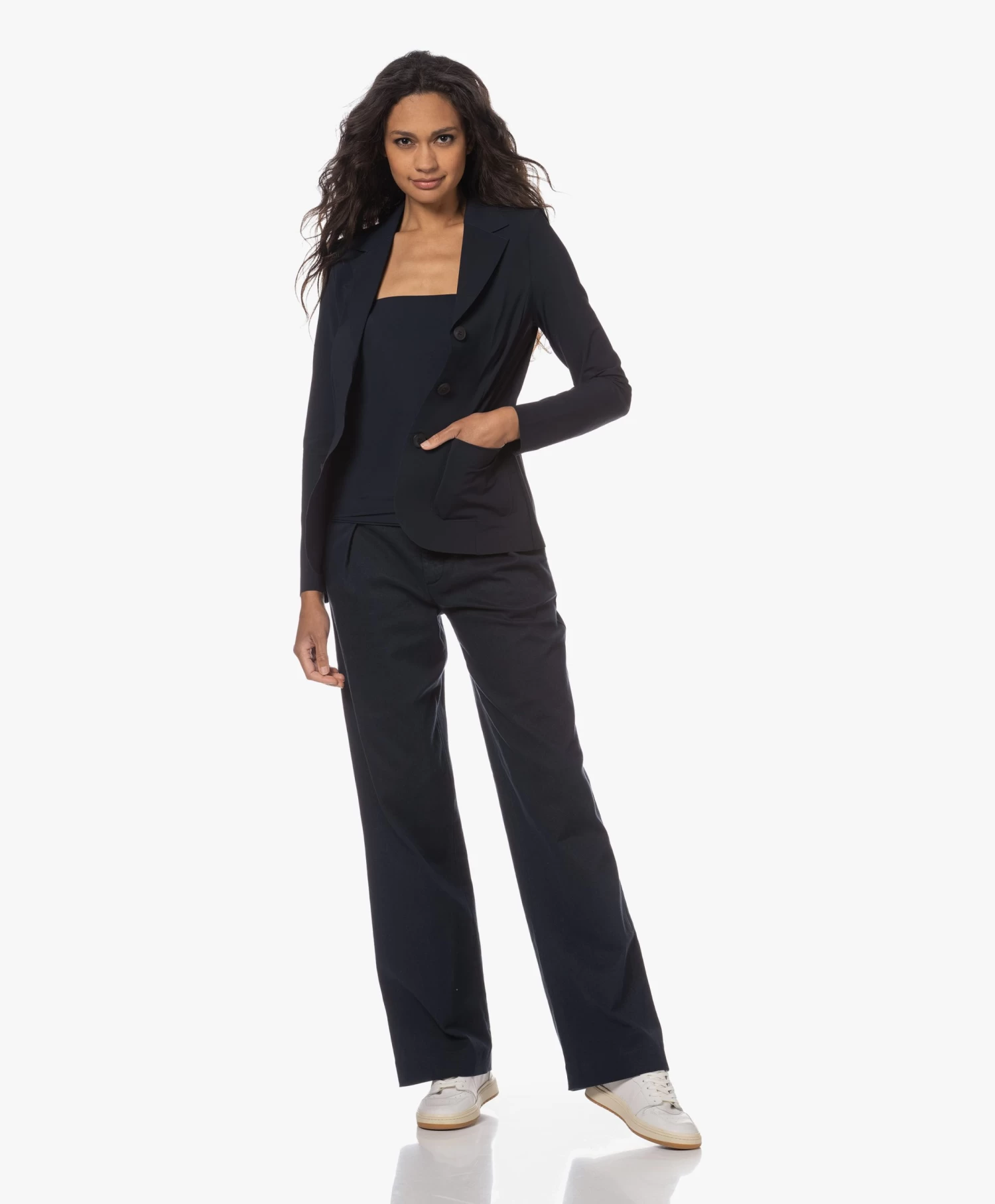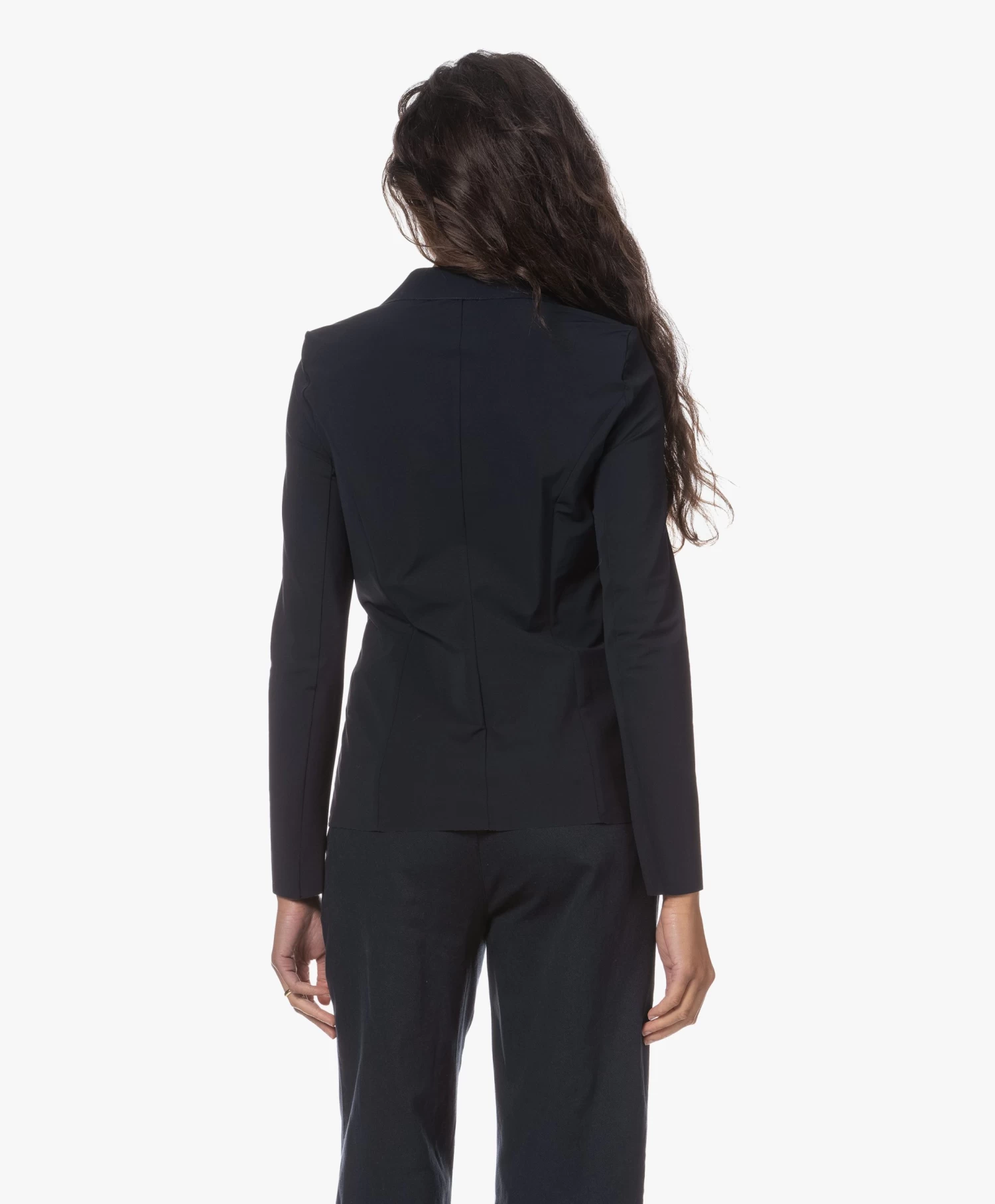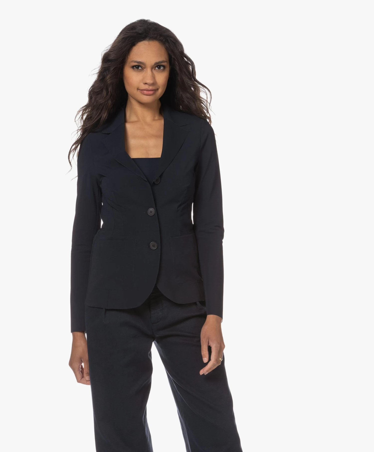 Deze vrouwelijke blauwzwarte Yuuka blazer van JapanTKY is gemaakt van een ultra-stretchy doch stevige materialenmix voor optimaal draagcomfort en is daarnaast gemakkelijk te wassen, kreukvrij én sneldrogend! Perfect om mee te nemen op een business-trip óf voor meer casual gelegenheden.