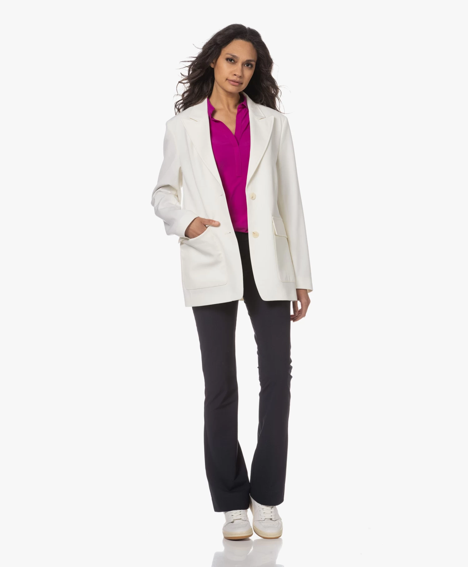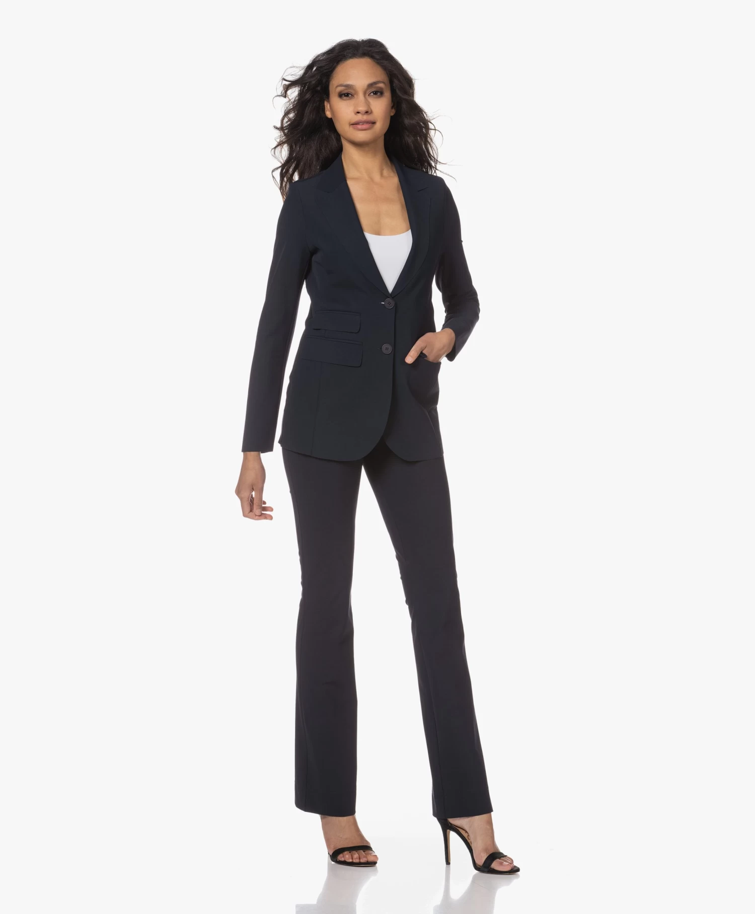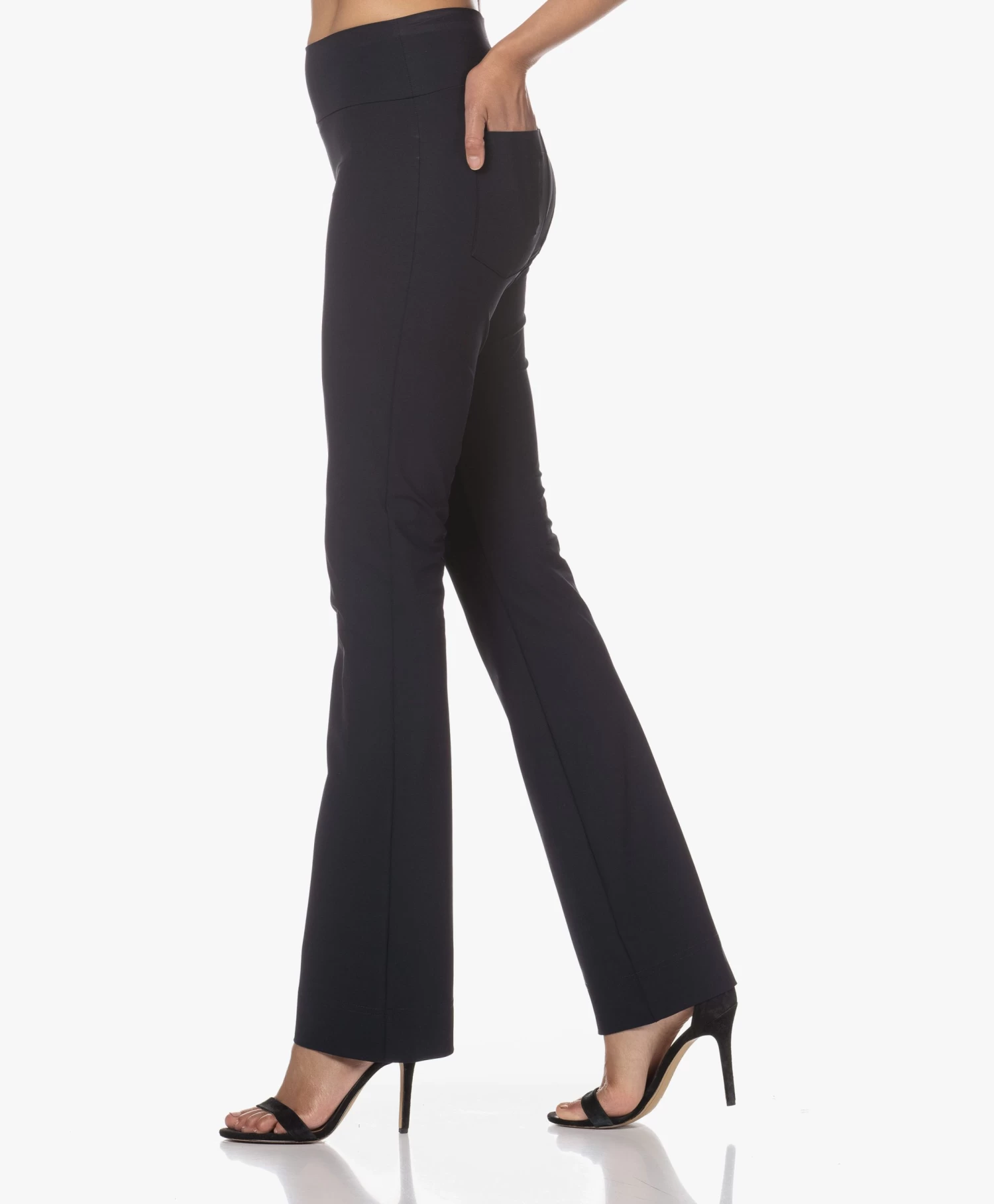 Deze super comfortabele flared Zaya broek van JapanTKY is ontworpen in hun karakteristieke Italiaanse jersey kwaliteit. Deze soepele en lichtgewicht zwartblauwe stijl heeft opgestikte achterzakken voor een flatterend design. De brede, dubbellaagse tailleband en hoge taille creëren een gladmakend silhouet.