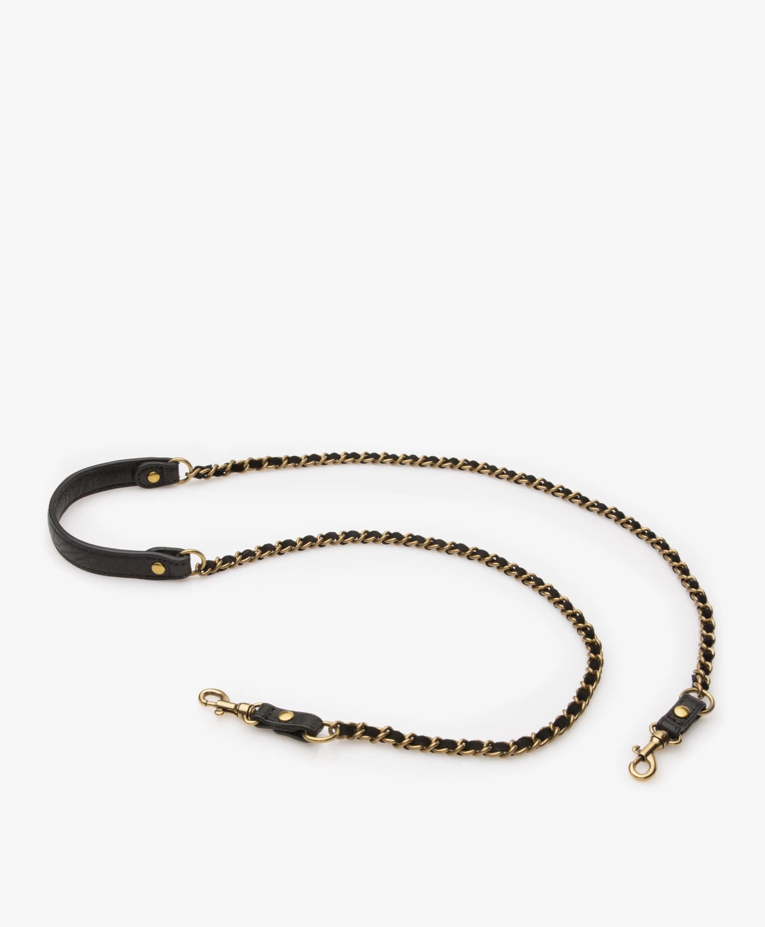 Wil je de look van je Jerome Dreyfuss tas zo nu en dan eens veranderen of wil je je tas verder personaliseren? Dat doe je heel simpel met dit losse schouderhengsel die tevens ook perfect is als je het kettinghengsel van je Jerome tas nét te kort vindt – het scheelt ca. 15cm. Het ketting schouderhengsel is doorregen met subtiel gestructureerd zwart geitenleer met vintage goudkleurige karabijnsluitingen.