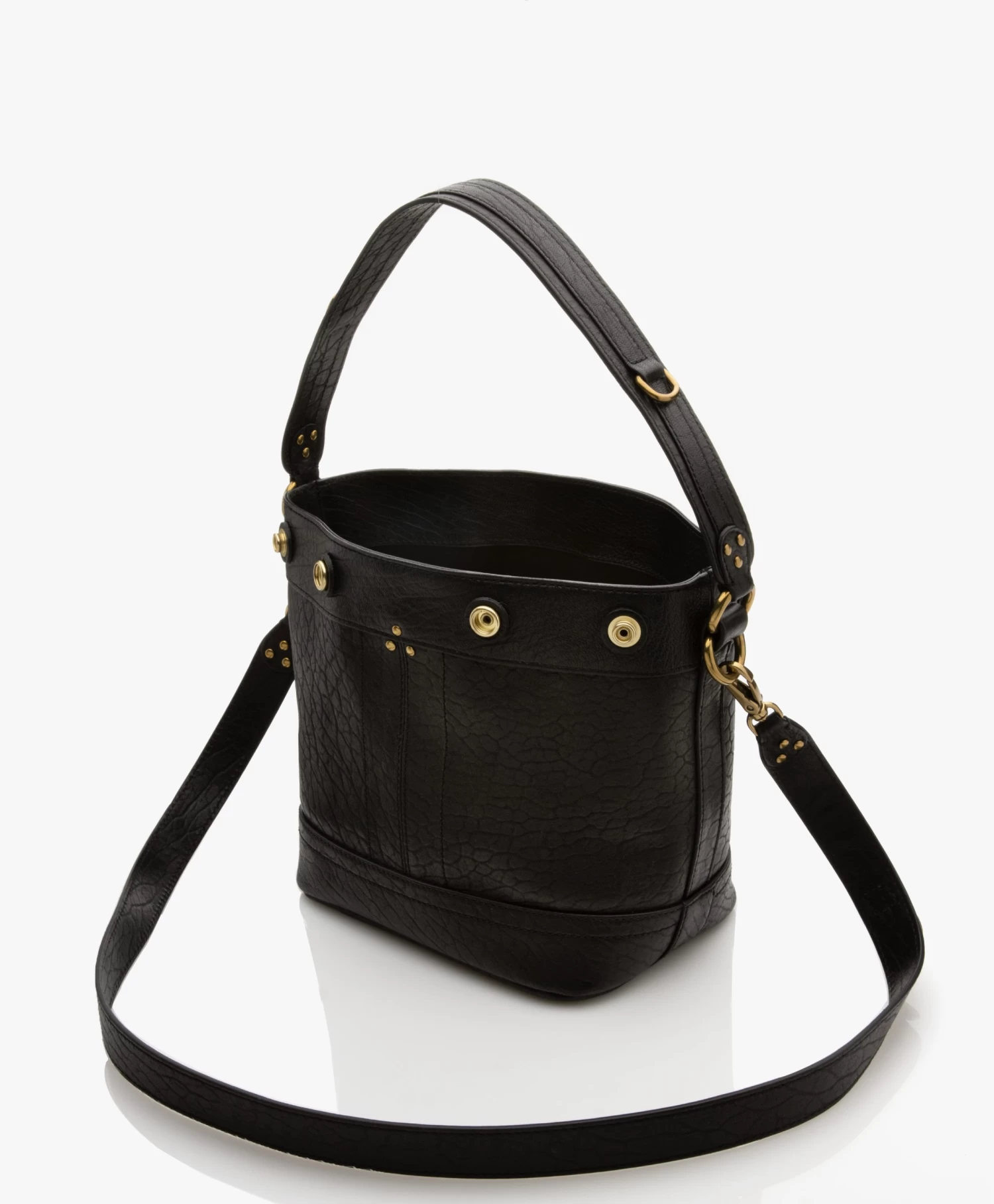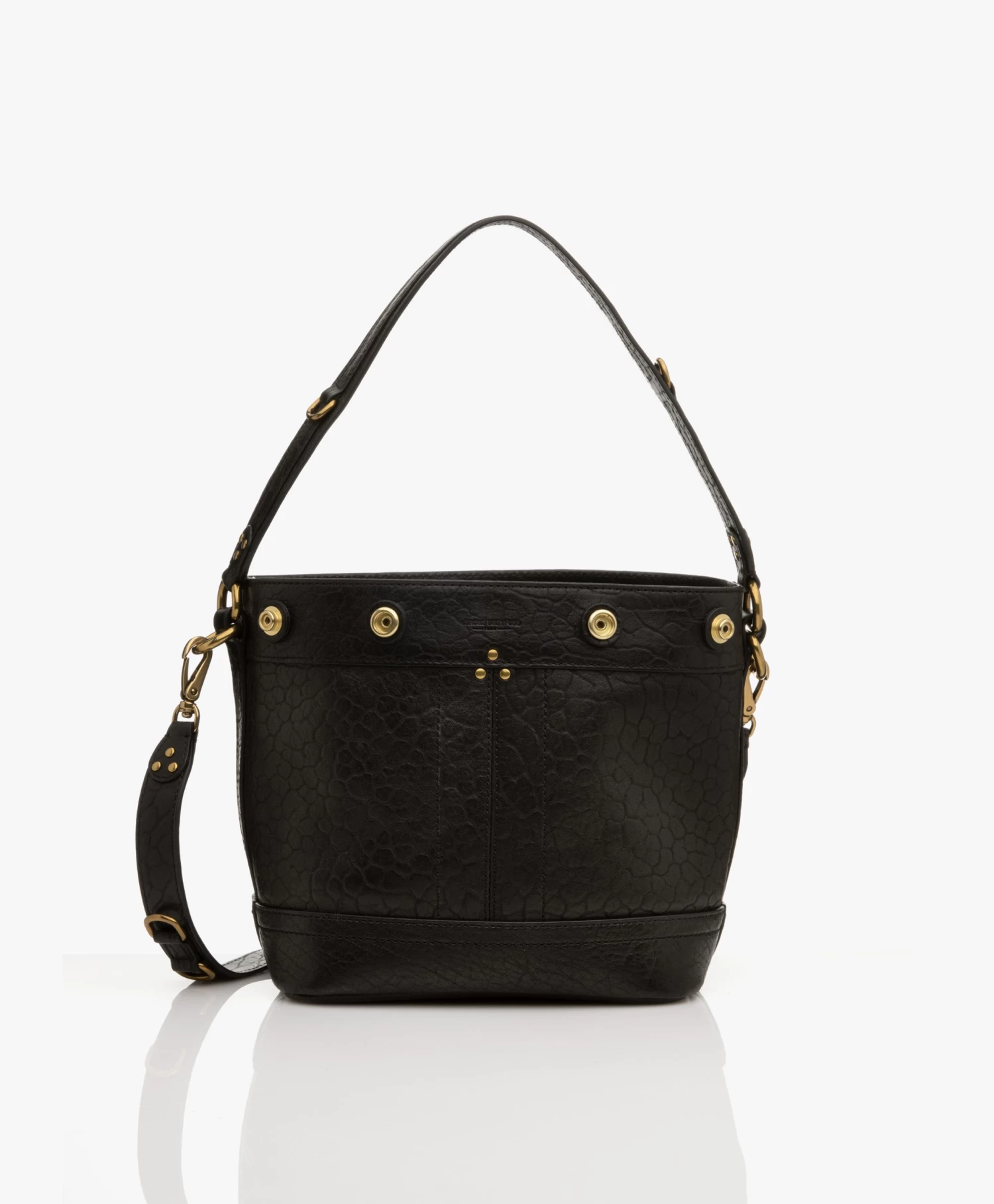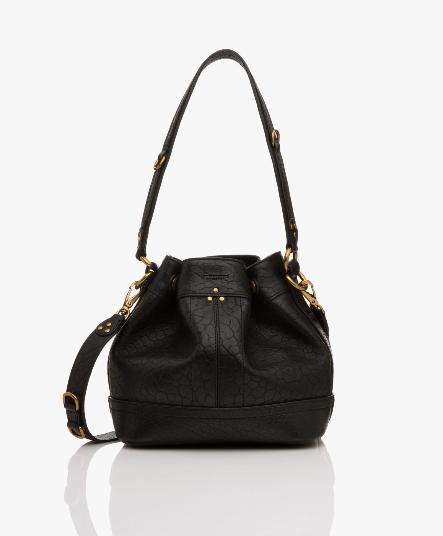 Terug naar de jaren ’80 met deze rock-chique handtas van Jerome Dreyfuss – uitgevoerd in zwart lamsleer met een gebobbelde finish. De Ben S is een veelzijdig nieuw ontwerp met zijn verstelbare drukknopen aan de buitenzijde, hand- en schouderband en sleutelkoord met extra vakje aan de binnenzijde. Gedecoreerd met goudkleurige hardware, waaronder studs, geef jij jouw outfit een stoere boost.