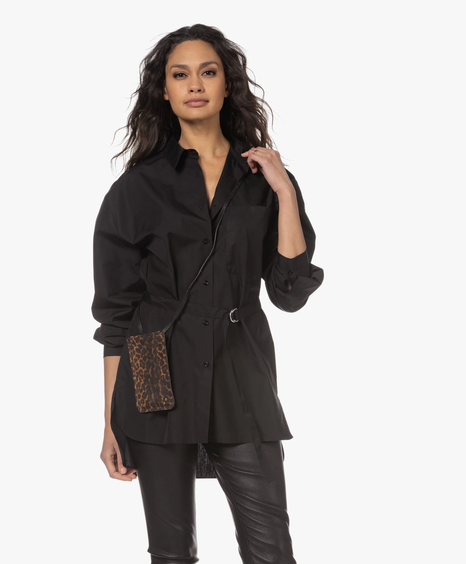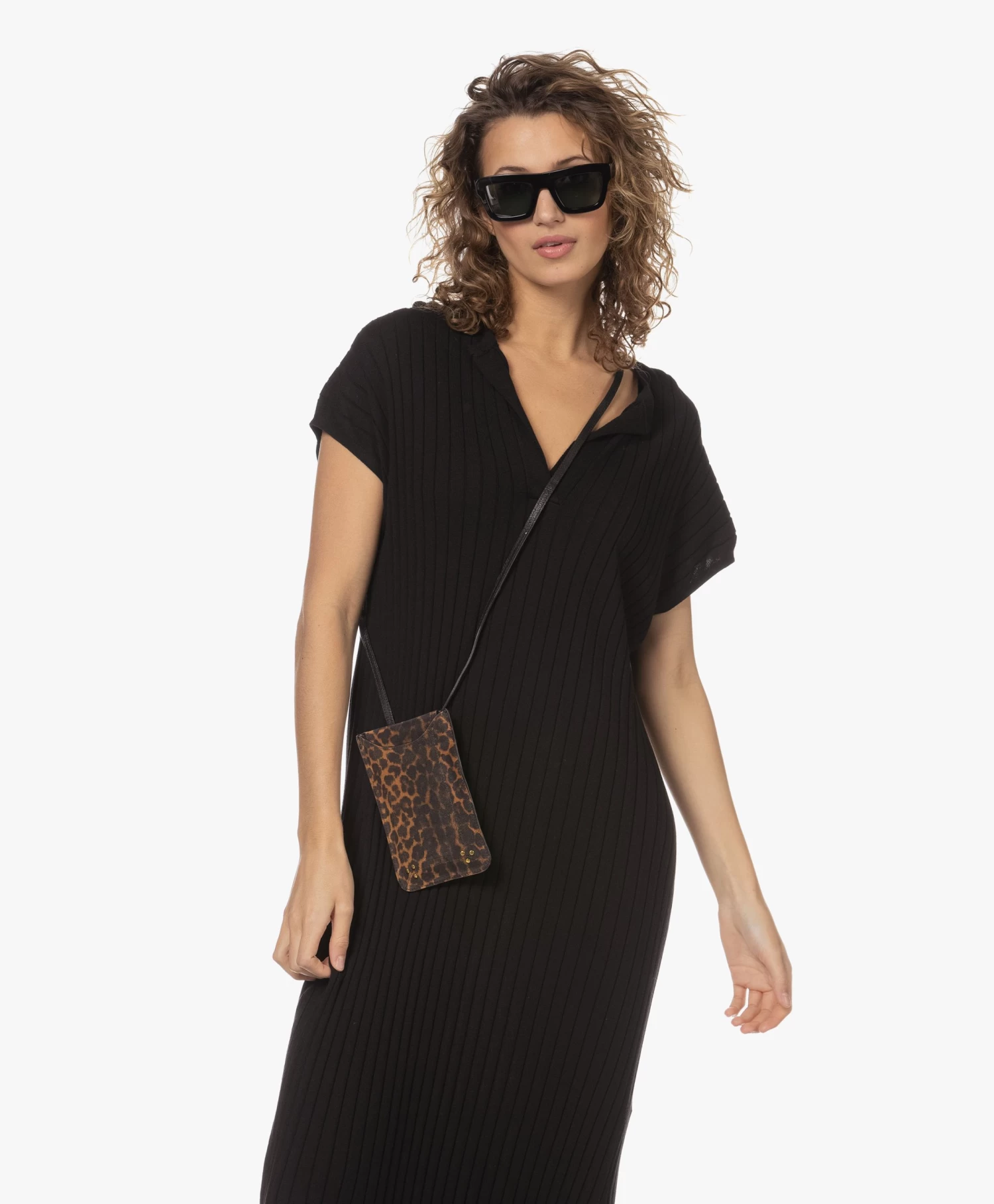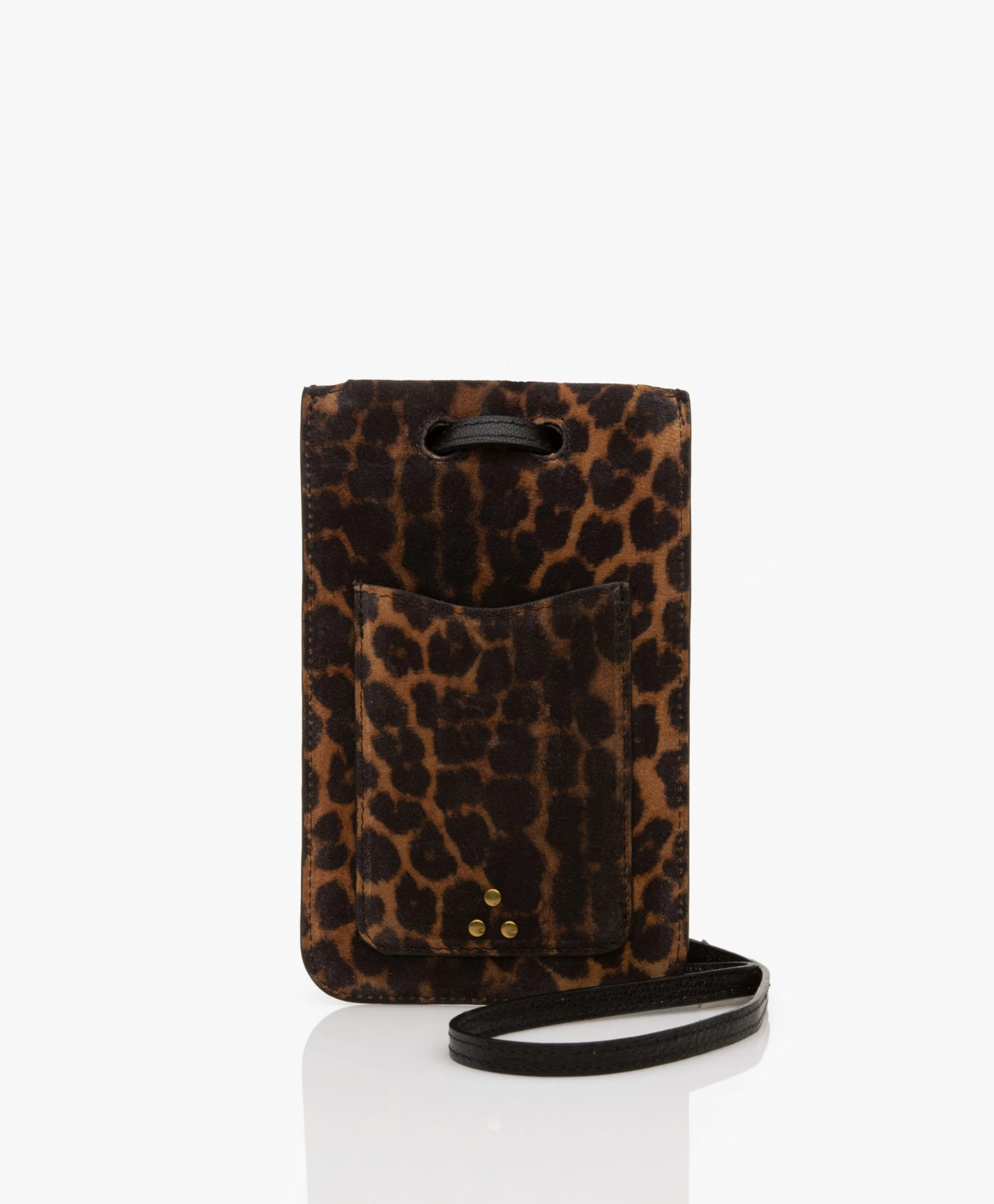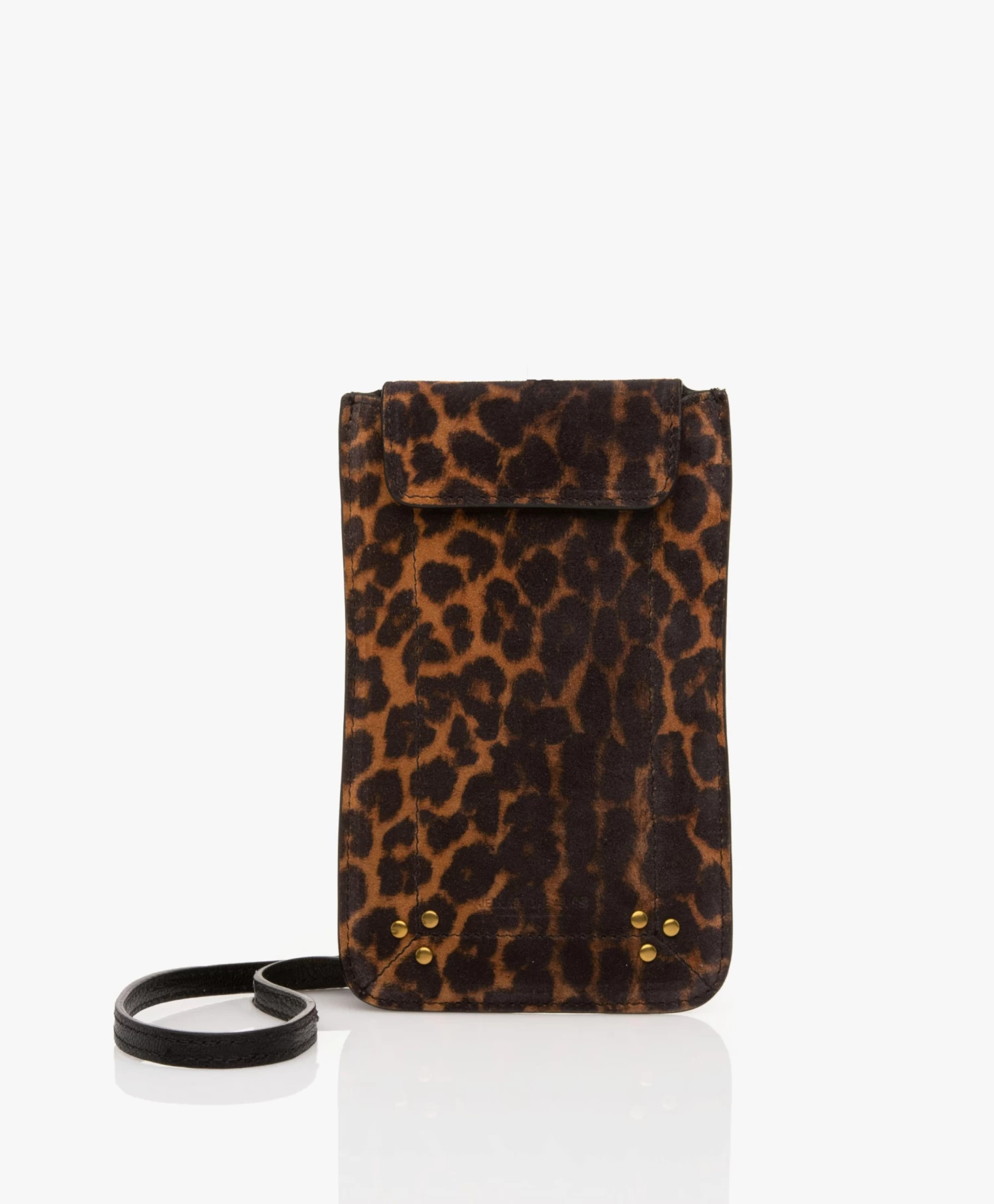 Je telefoon op een stijlvolle (én praktische) wijze meenemen? Jerome Dreyfuss brengt met dit telefoontasje hét accessoire dat je absoluut nodig hebt. Dit cross-body telefoontasje is ontworpen met een leren schouderhengsel en een stoere luipaardprint in een natuurlijke kleurenmix met onder meer donkerbruin en camel. Vervaardigd van een hoogwaardige – zoals we gewend zijn van het merk – materialenmix met kalfs- en geitenleer.