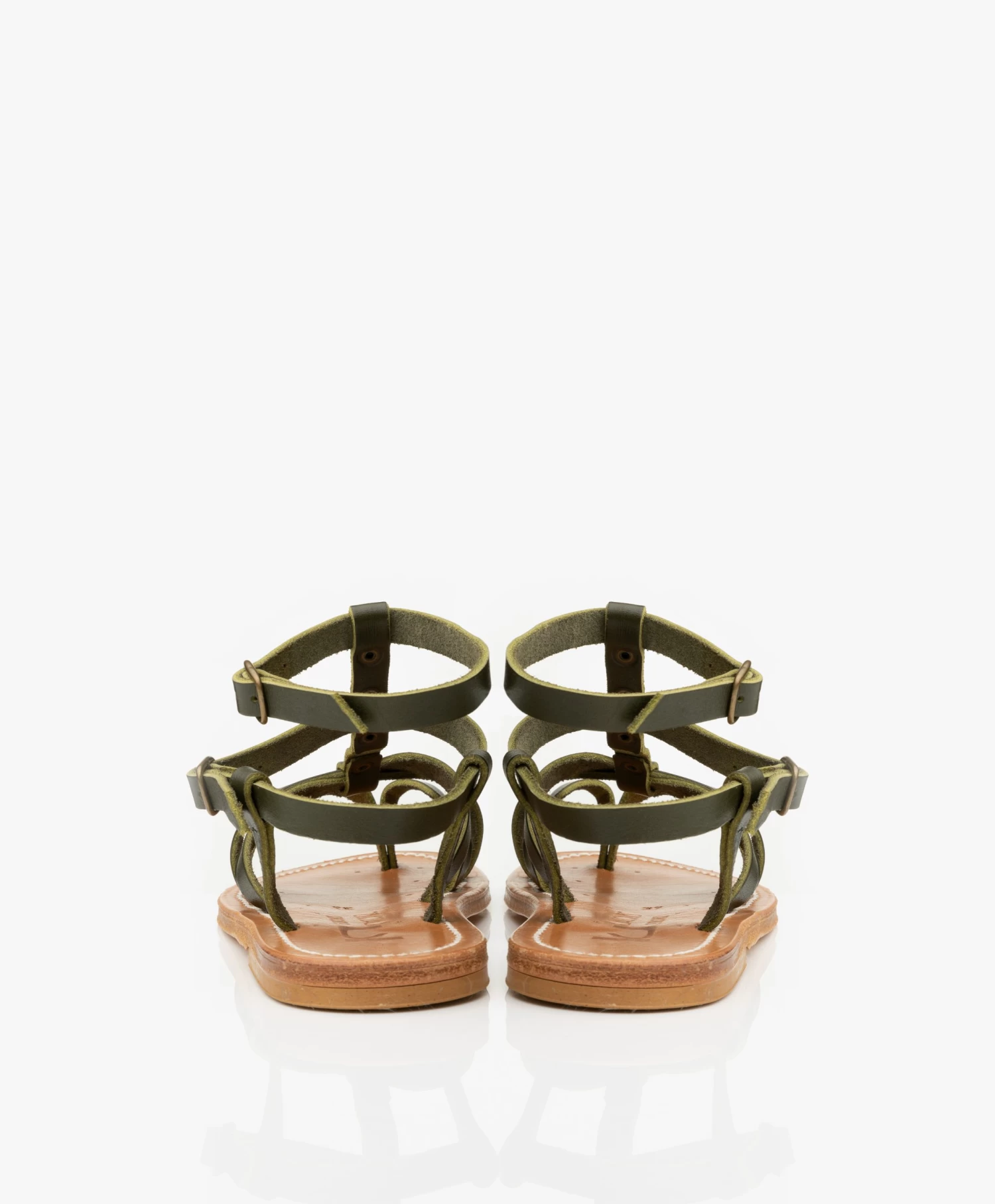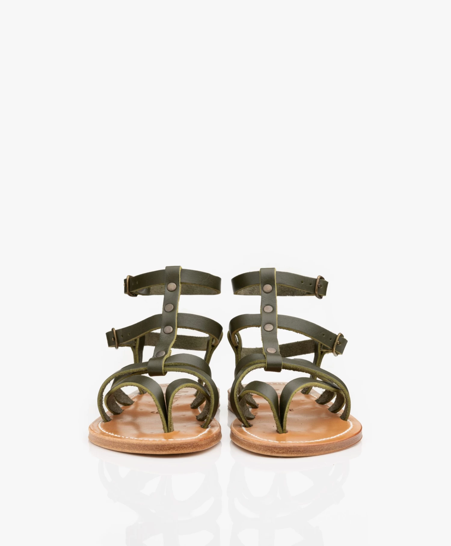 De leren Larissa sandalen van K.Jacques Saint Tropez ademen een tijdloze stijl. Deze sandalen zijn met de hand gemaakt van kakigroen leer en ontworpen met smalle leren bandjes in een kruislings design en zijn gedetailleerd met vintage metalen studs. Deze gladiator-stijl sandalen complementeren iedere look, seizoen na seizoen.