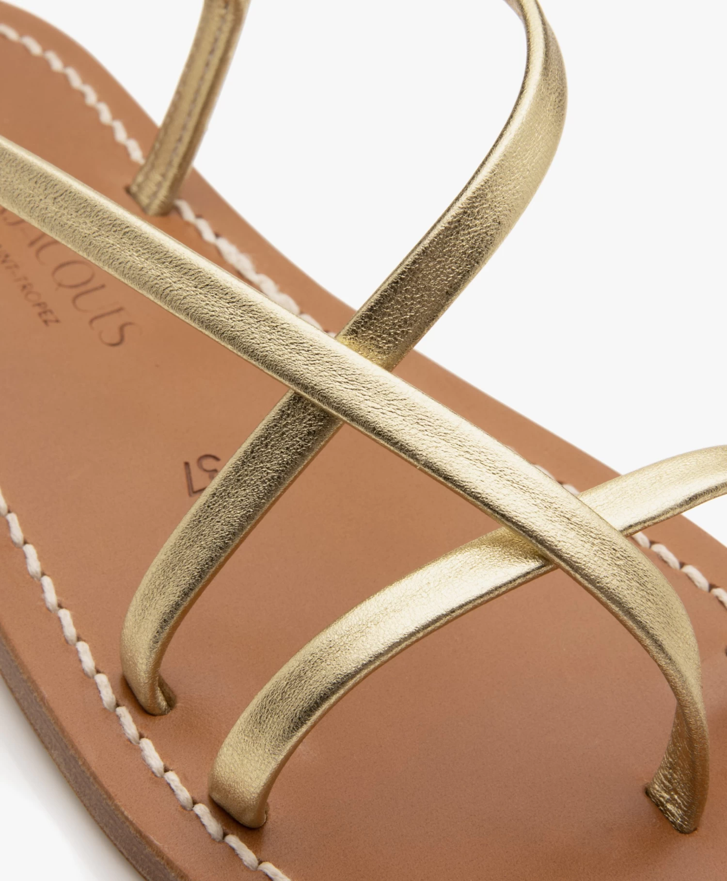– Platte leren teensandaal