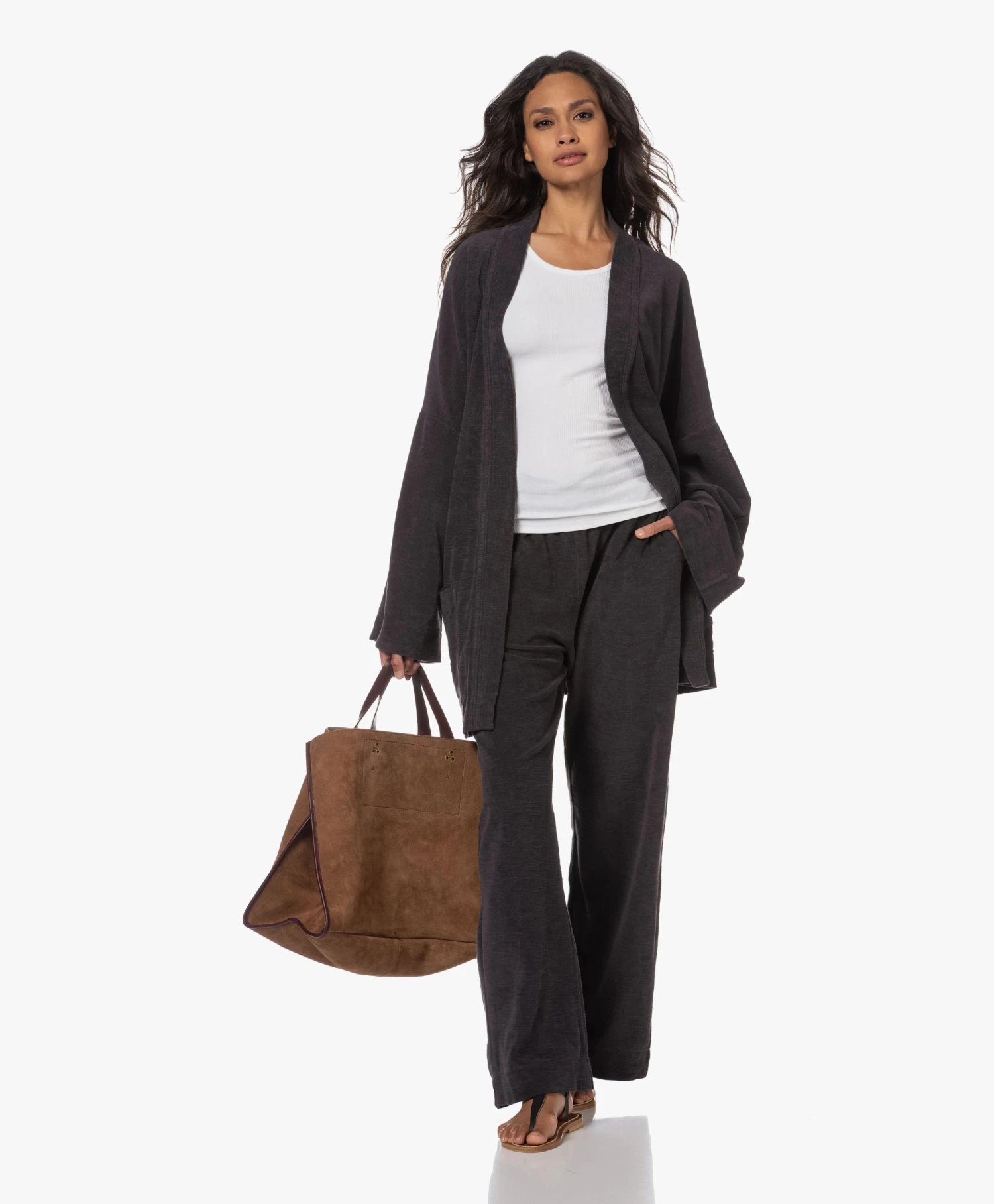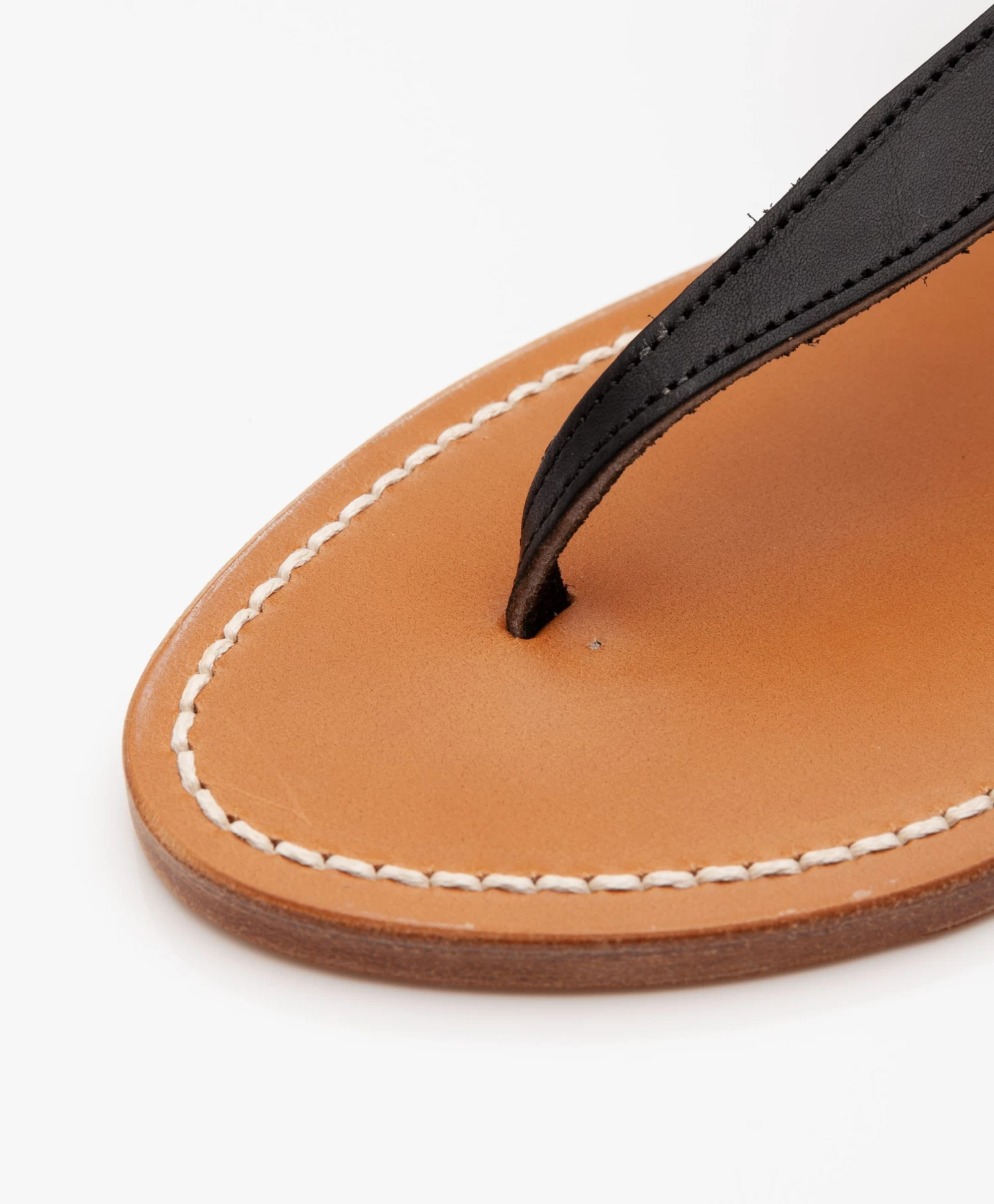 – Platte leren teensandaal