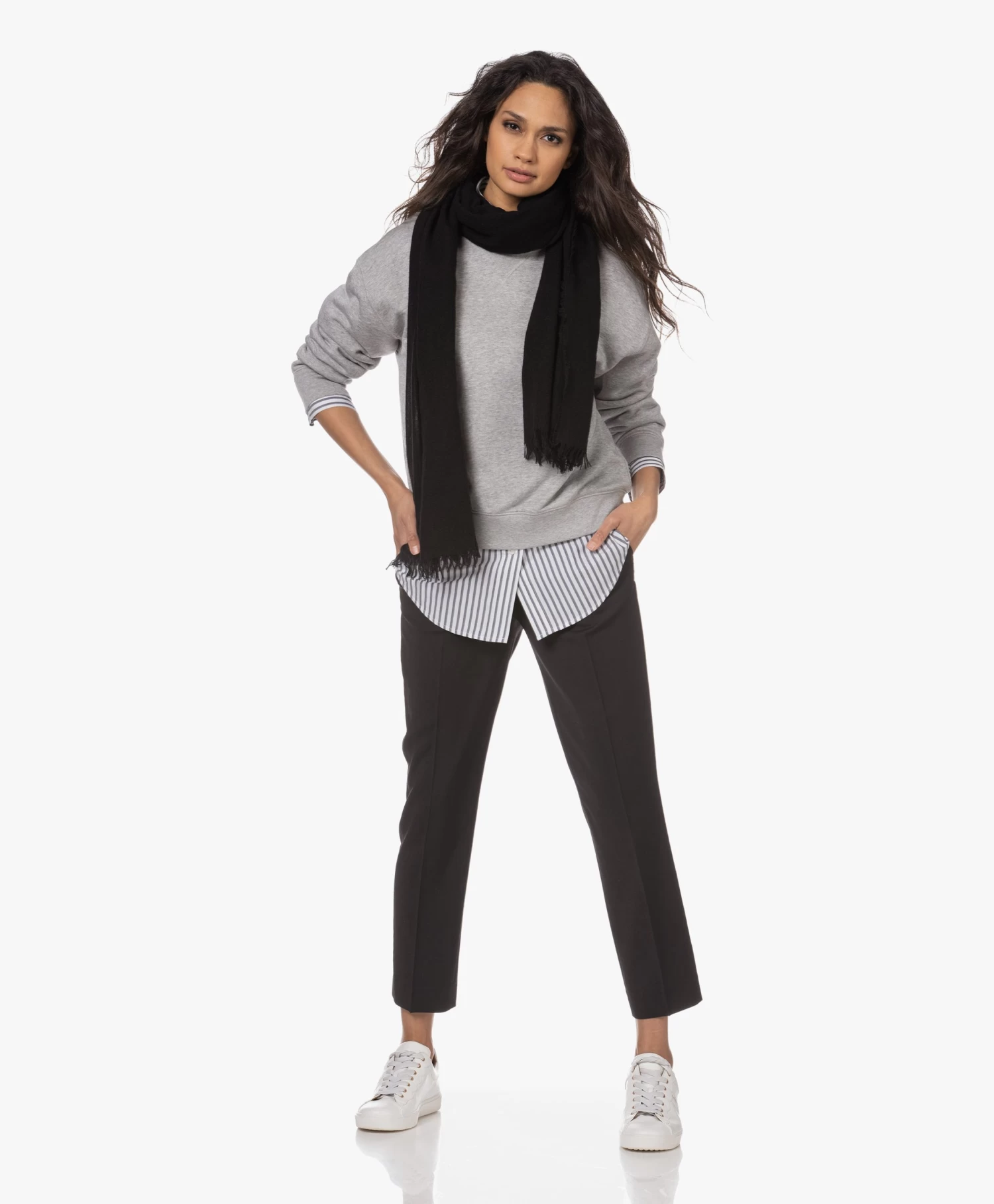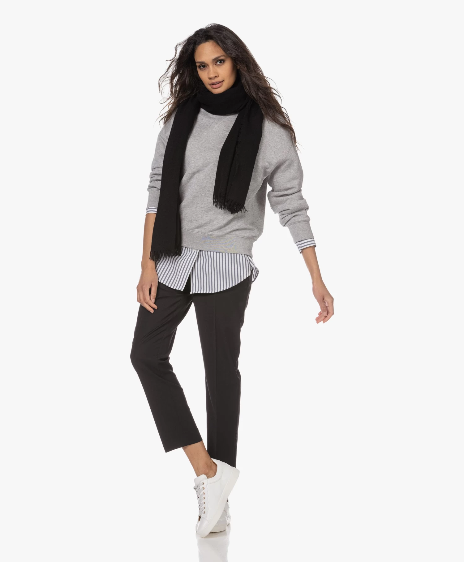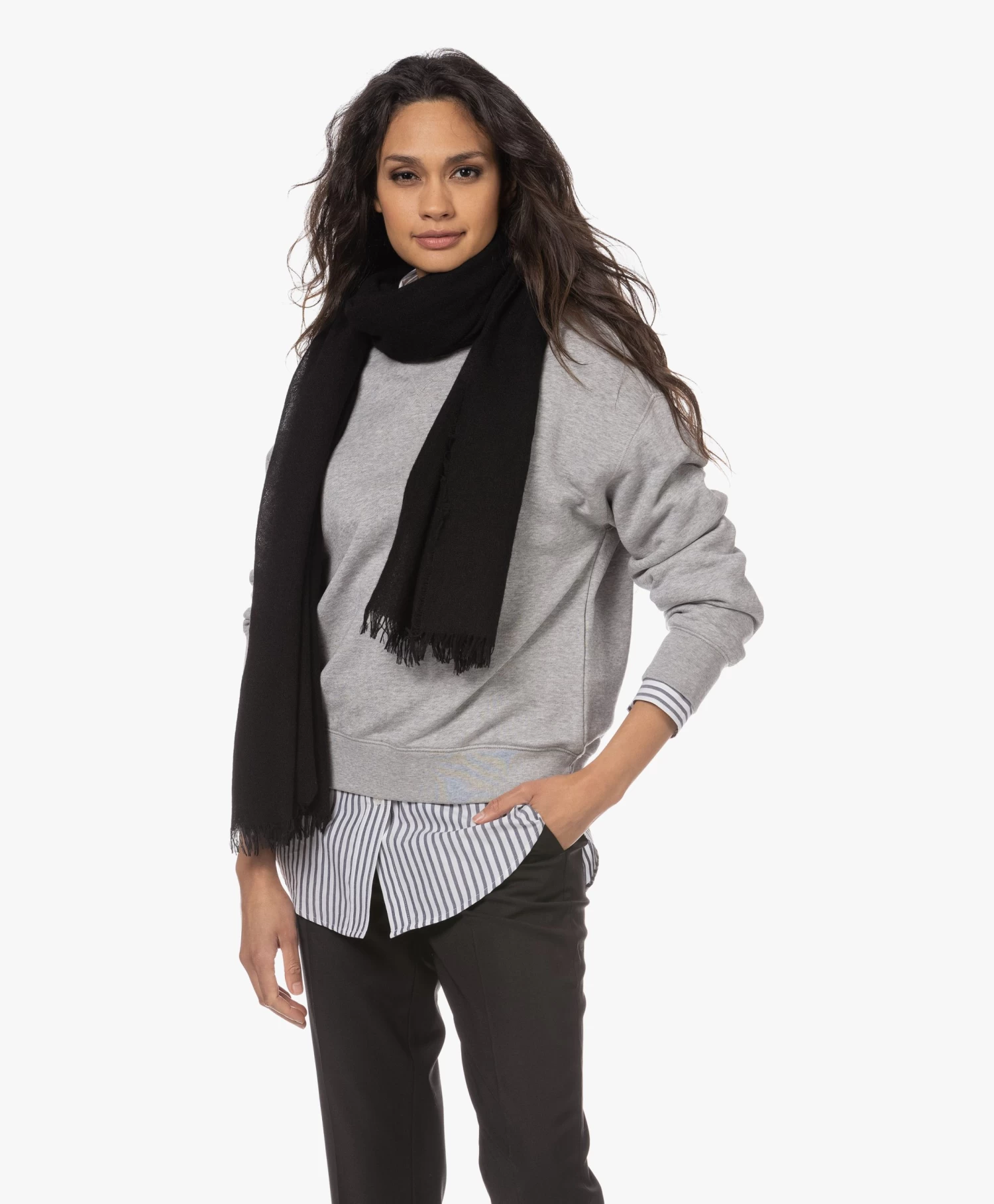 Losjes geweven cashmere, net niet helemaal door-en-door ingeverfd waardoor de zwarte kleur iets zachter overkomt. Knap, hoe LaSalle een superdeluxe cashmere Pasmina sjaal met bestudeerde nonchalance nog rijker maakt.