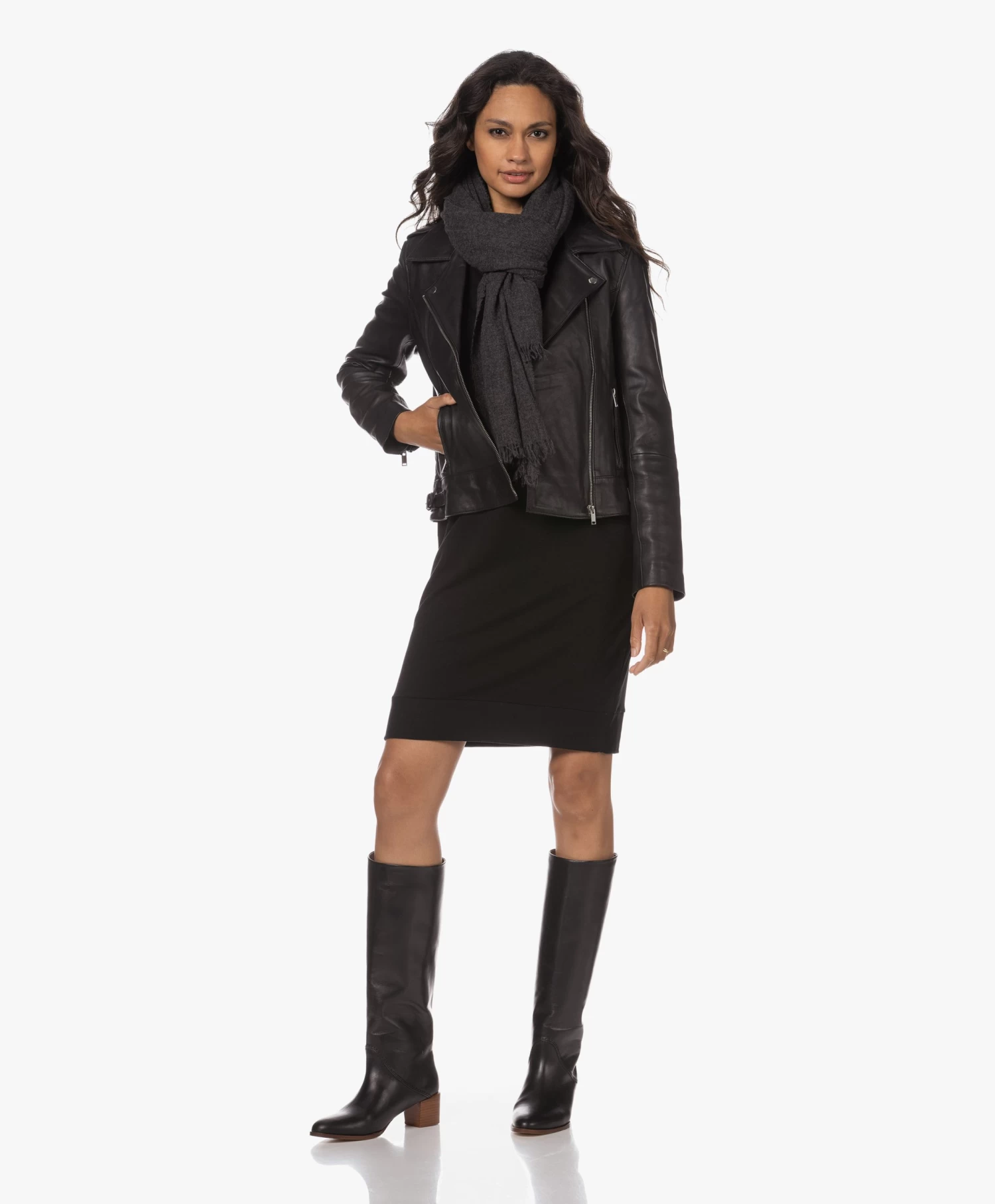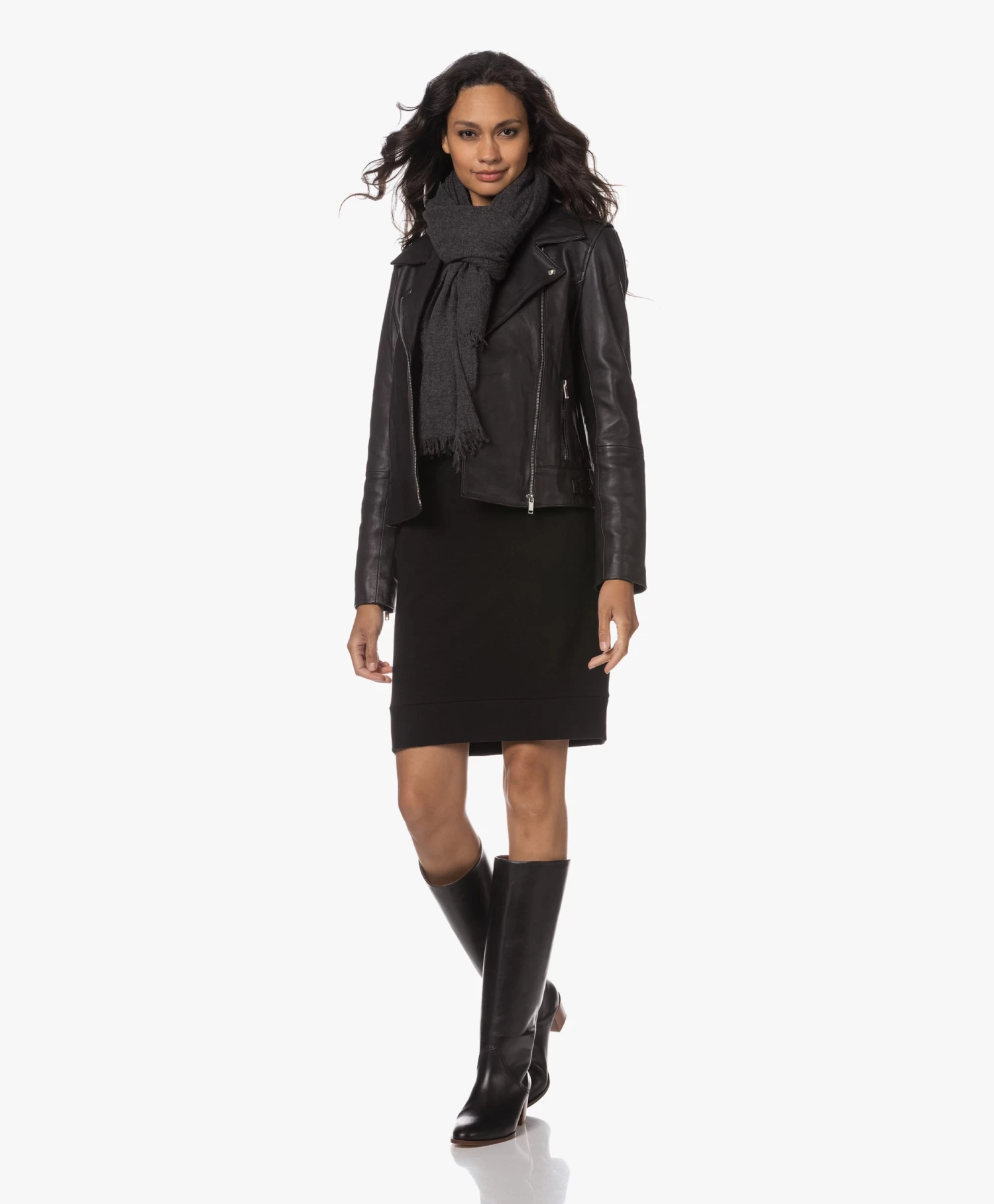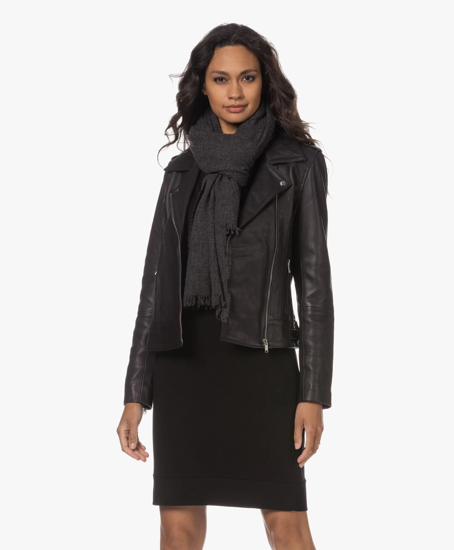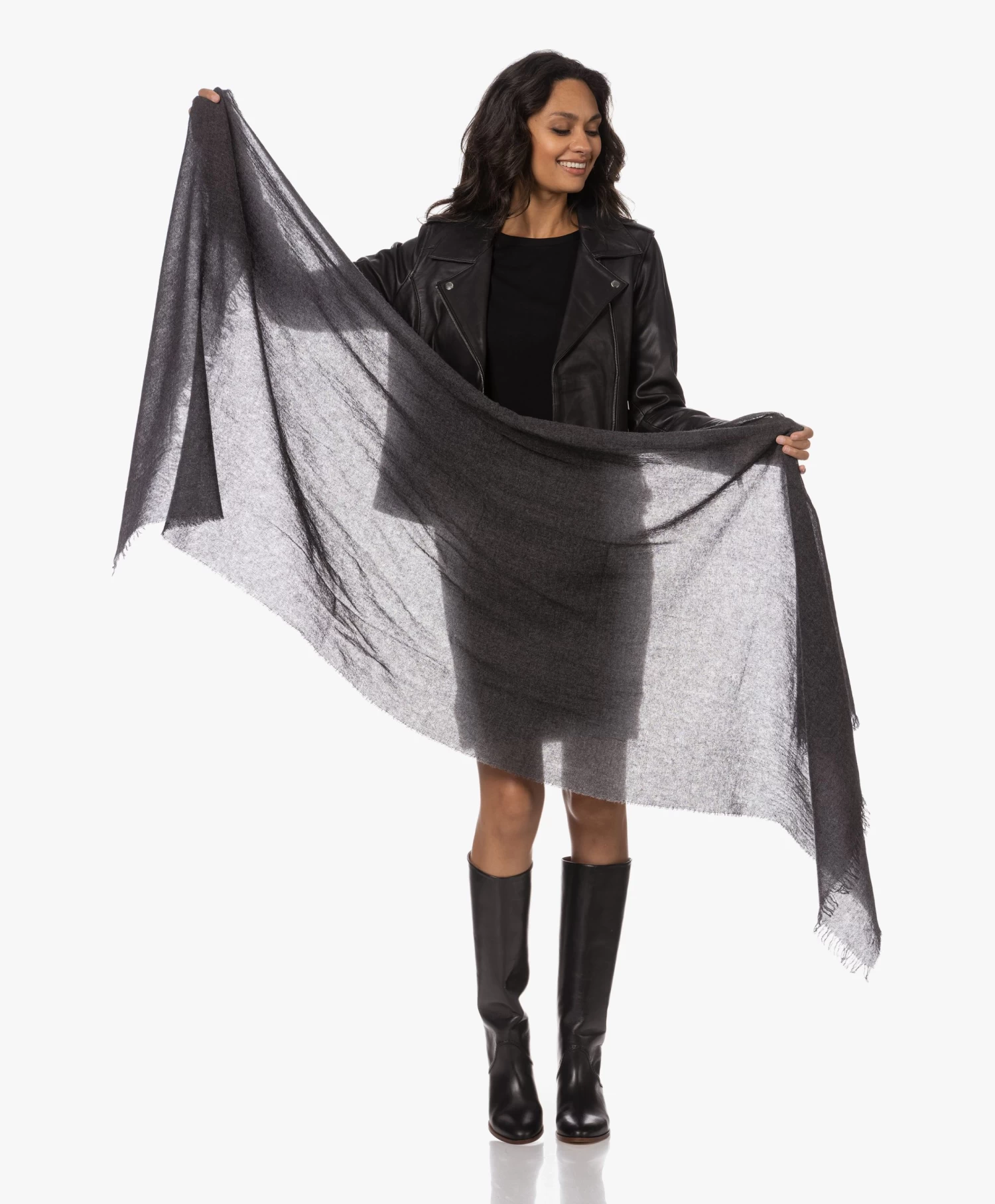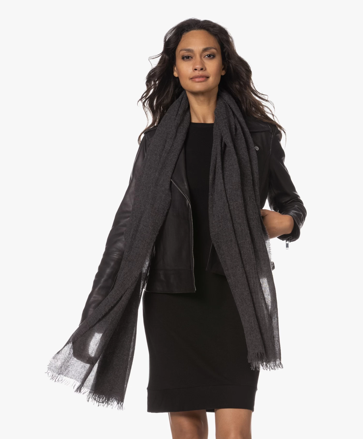 Pure verwennerij, LaSalle’s antracietgrijze sjaal van rijke Italiaanse cashmere. Het lichtgewicht weefsel is subtiel onregelmatig qua oppervlaktestructuur, wat de chique status van cashmere een nonchalant randje geeft. Een tijdloze musthave voor alle liefhebbers van topkwaliteit!
