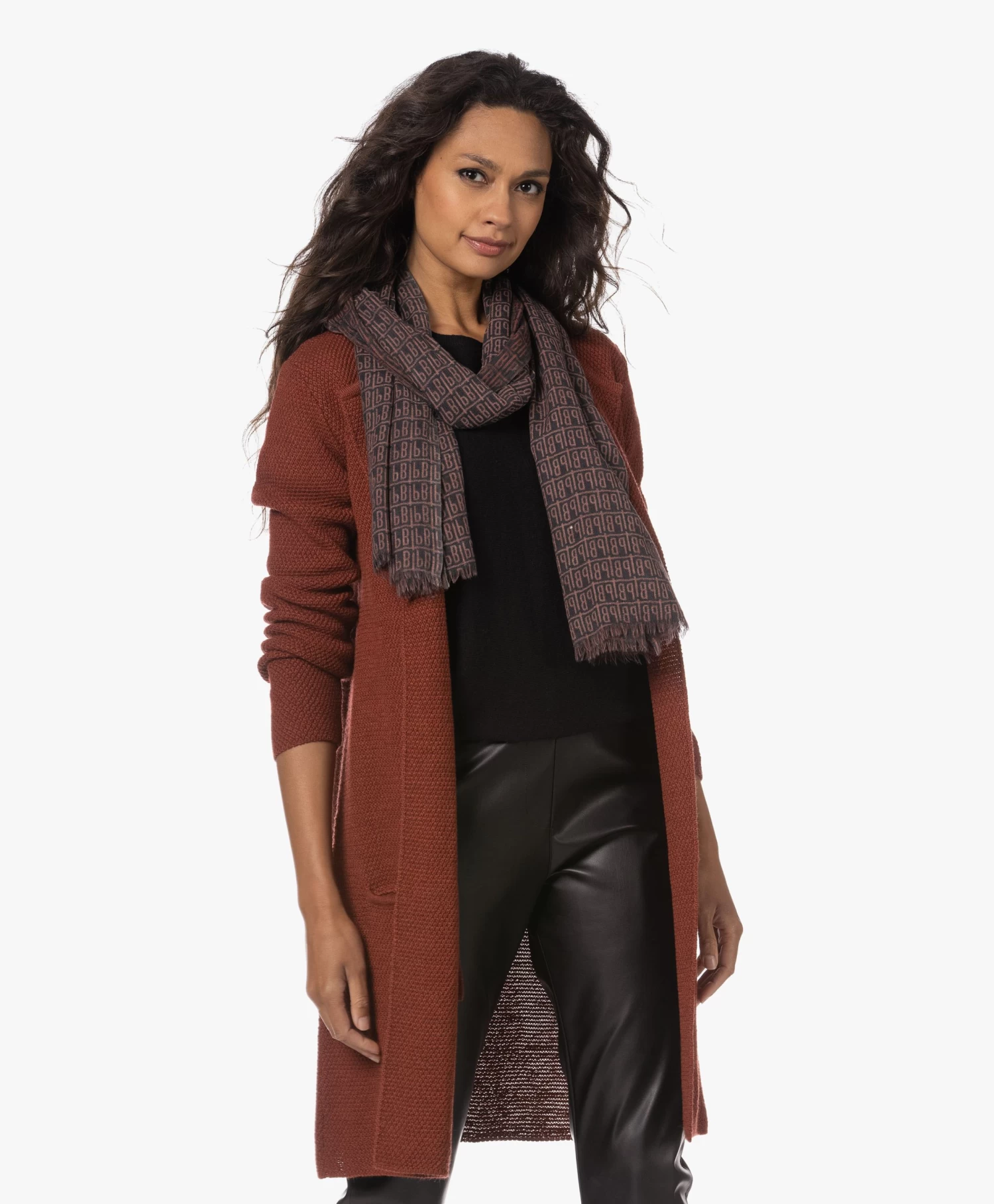 Gemaakt door LaSalle, ontworpen door PB. En zoals je waarschijnlijk al weet hechten we bij PB. veel waarde aan kwaliteit, dus is deze huidstrelend zachte Limited Edition sjaal gemaakt van een lichtgewicht geweven mix van wol en zijde. Het PB. logo is all-over geprint in roestbruin op een achtergrond die het midden houdt tussen antracietgrijs en zwart. Als dit geen collectors item is?!