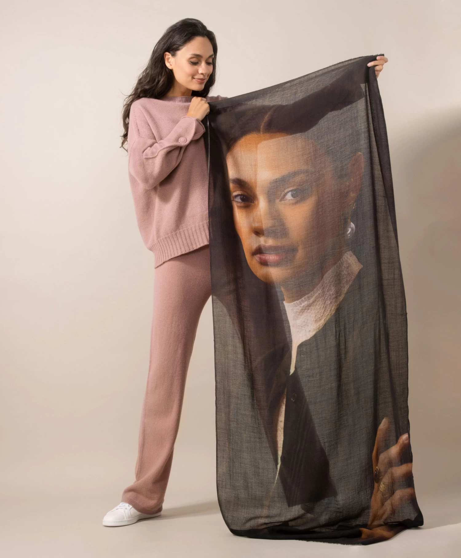 Luxueuze wol met zijde en een limited edition print met PB. model Nicole in Hollandse Meesters stijl: als dit geen collectors-item is? LaSalle’s fraaie sjaal is licht van gewicht, warm en zacht. Dit opvallende accessoire laat elke outfit sprankelen!
