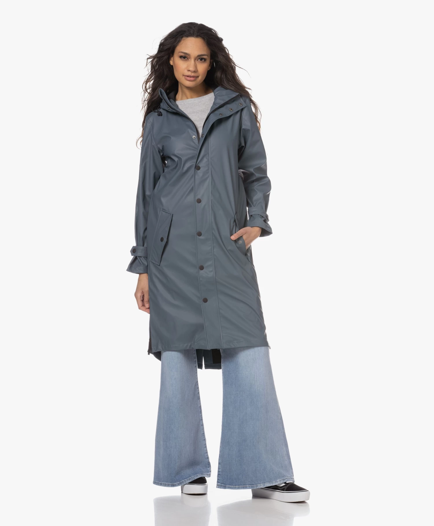 – Lange rechte mouwen met verstelbare drukknoopband bij de manchetten