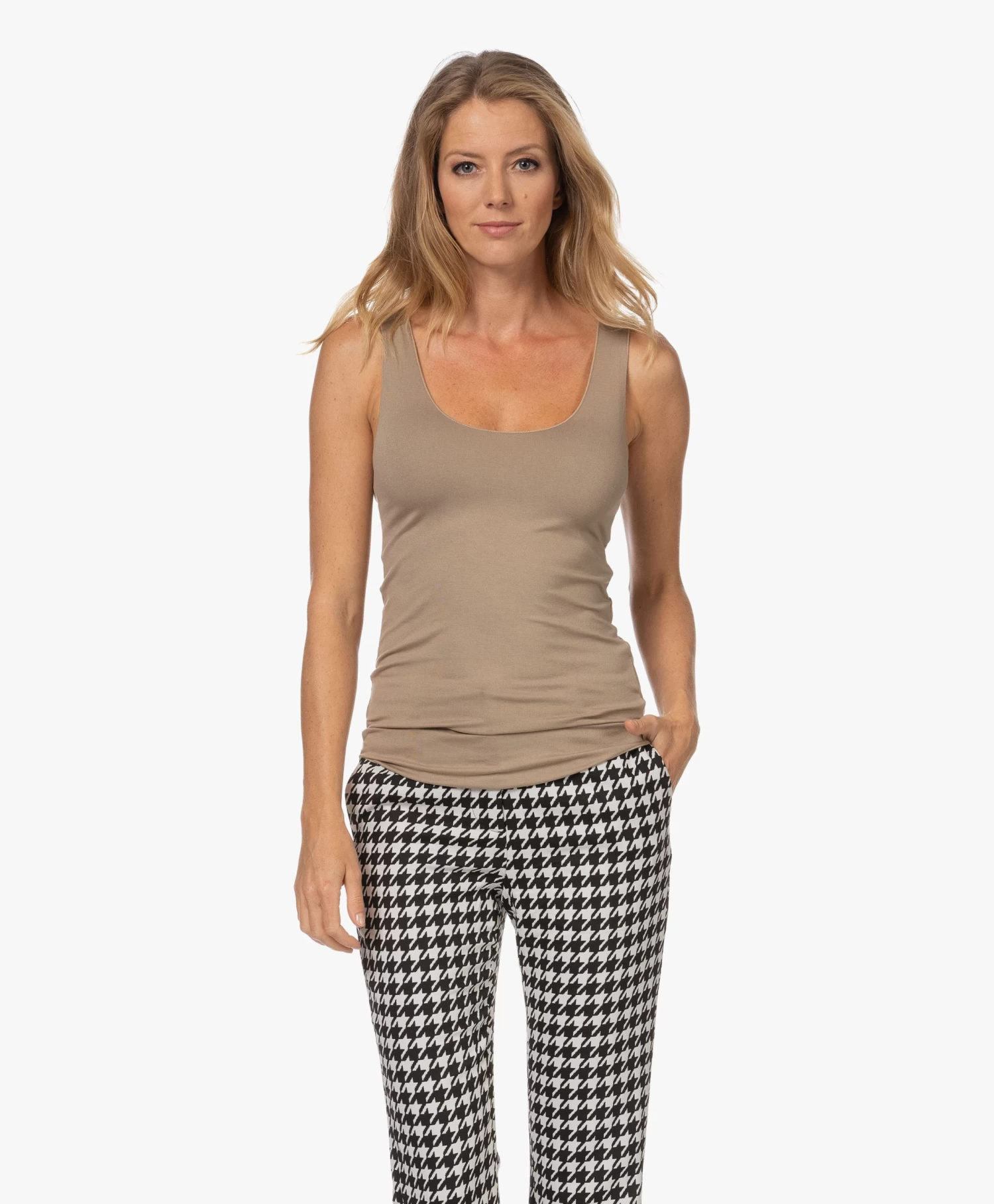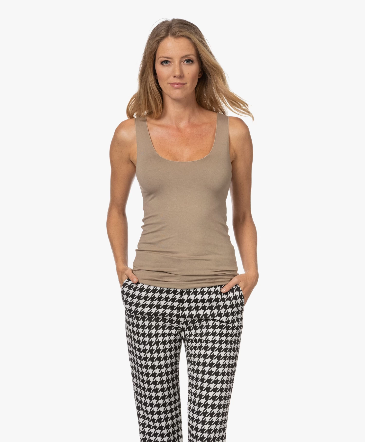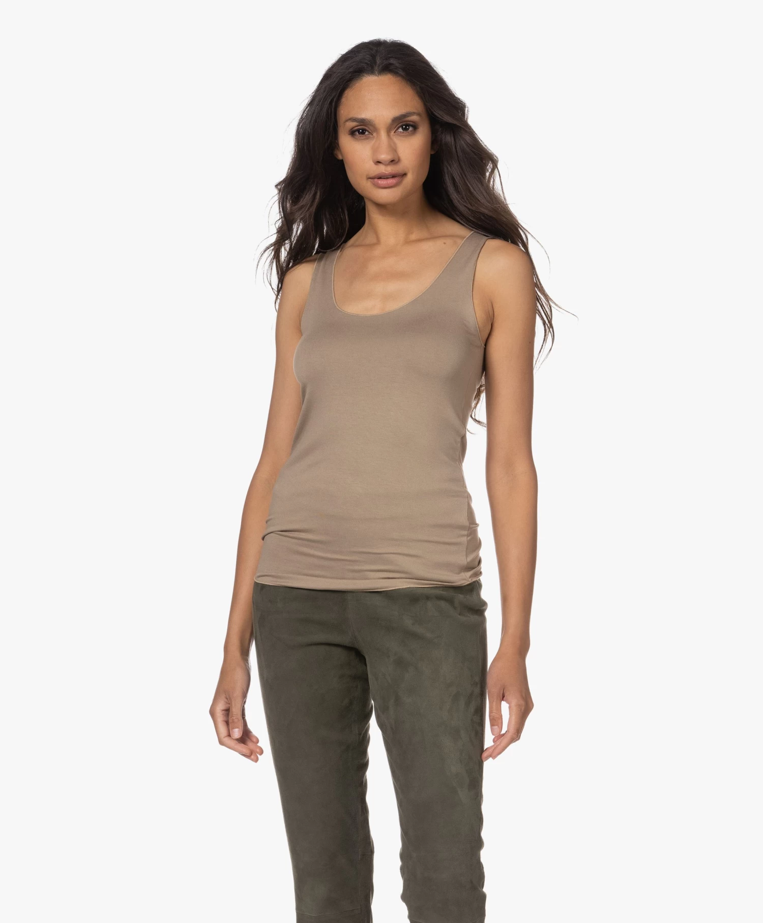 Natuurlijk mag je dit beige singlet van Majestic Filatures solo dragen: het is een plaatje. Maar wat dit slim-fit item van luxe stretch-viscose jersey extra speciaal maakt is de verfijnde baby-lock randafwerking: de ideale ondertop voor elke gelaagde outfit.