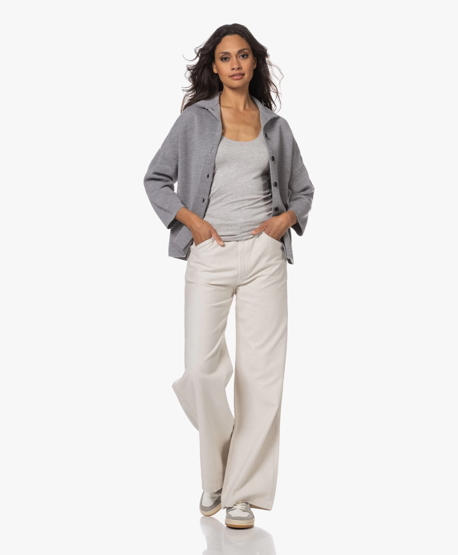 Natuurlijk mag je dit grijze singlet van Majestic Filatures solo dragen: het is een plaatje. Maar wat dit slim-fit item van luxe stretch-viscose jersey extra speciaal maakt is de verfijnde baby-lock randafwerking: de ideale ondertop voor elke gelaagde outfit.