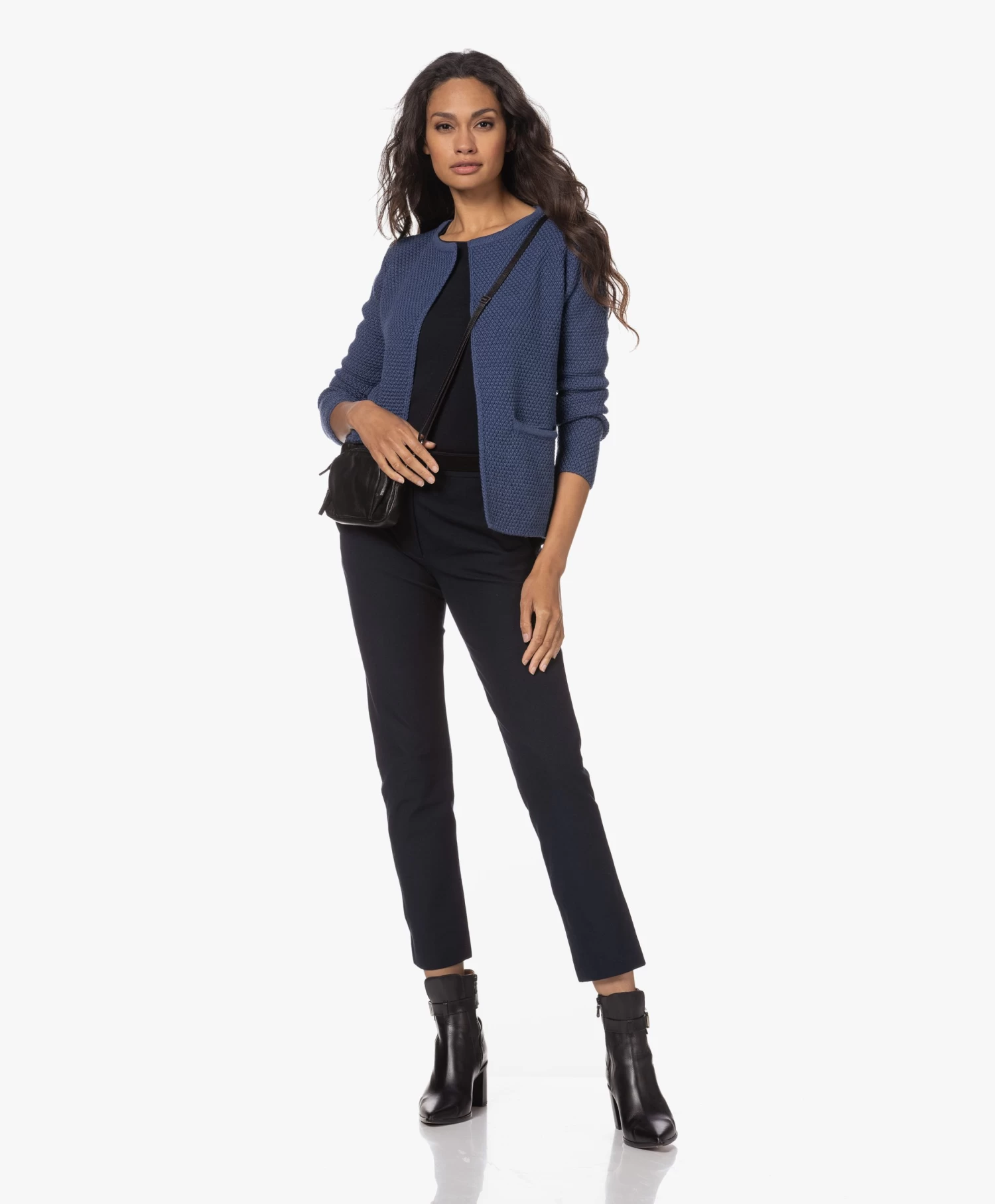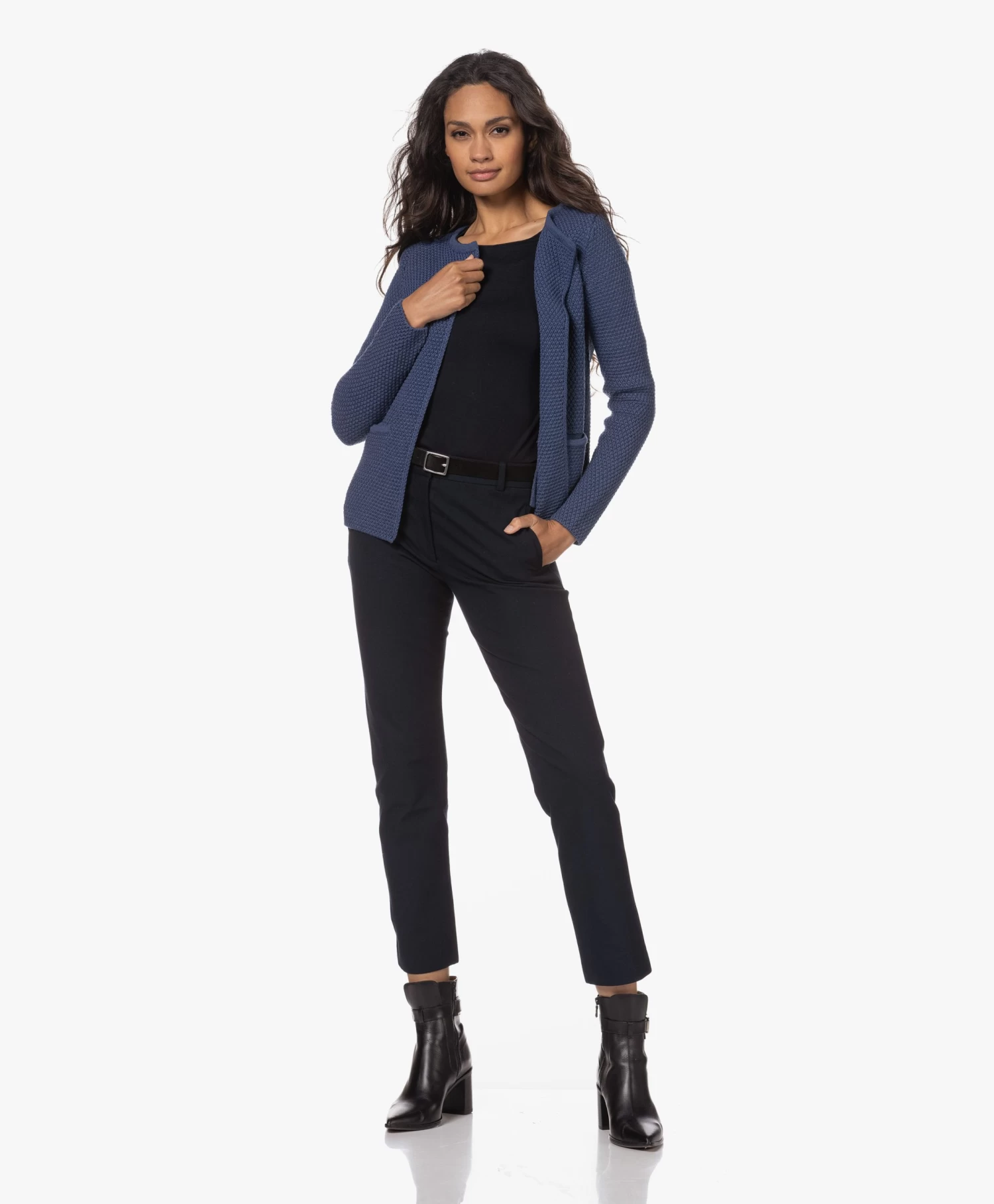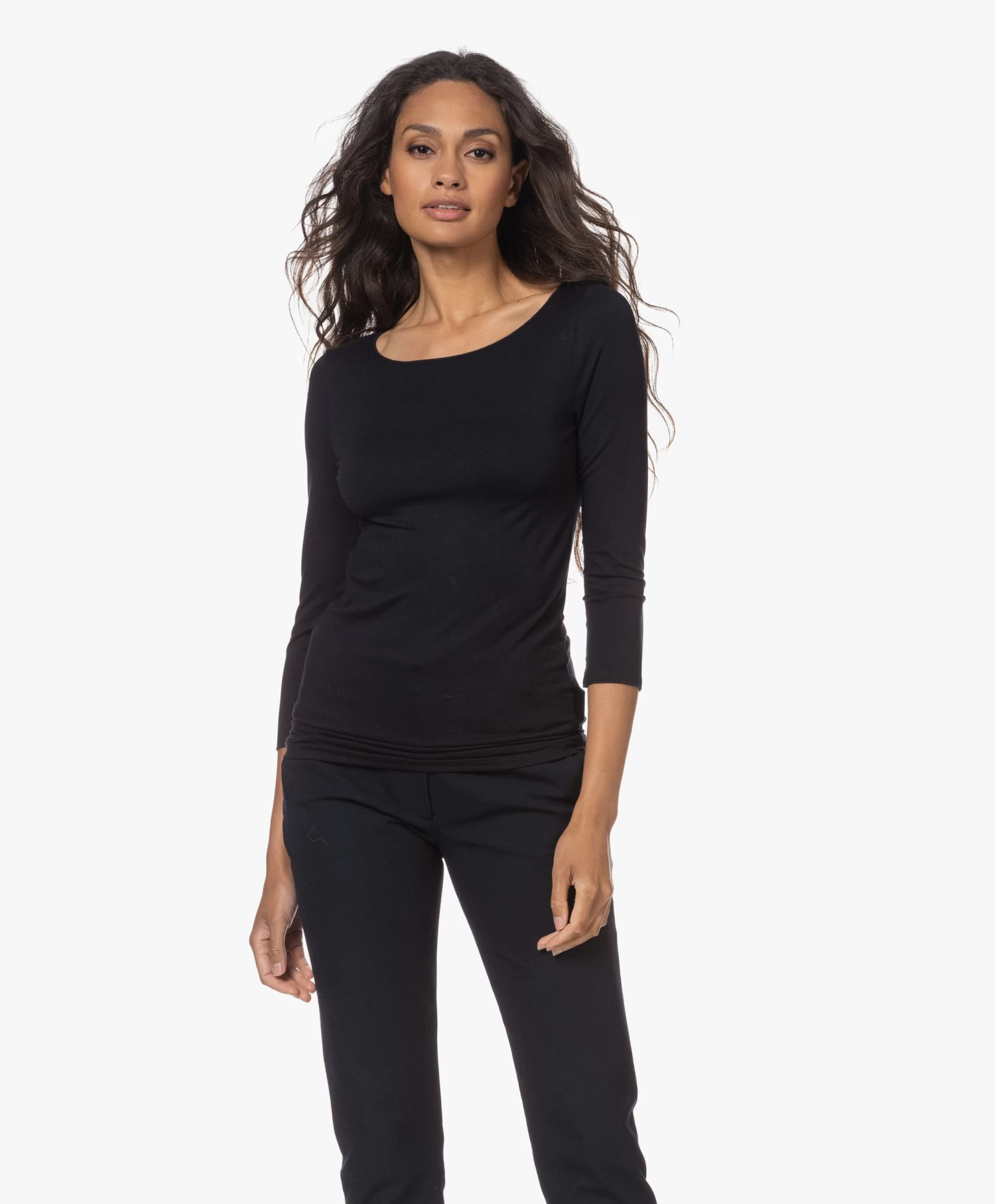 Vrouwelijk én flatterend – dit jersey T-shirt met driekwart mouwen van Majestic Filatures in een donkerblauwe tint. Gemaakt van een super comfortabele en zachte stretch-viscose mix in de karakteristieke ‘extrafine superwashed’ jersey kwaliteit van het merk. Draag zowel solo als gelaagd.