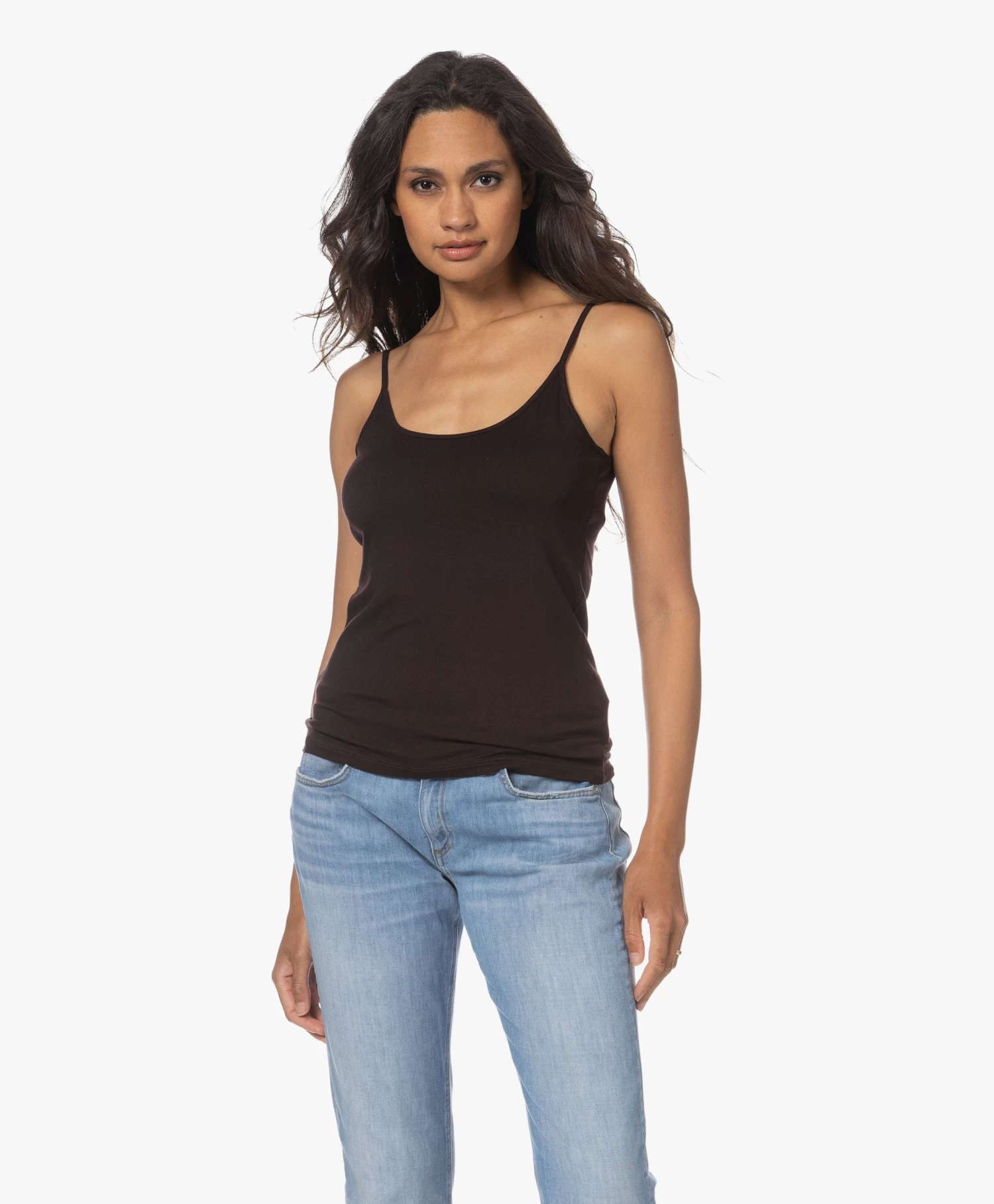 Majestic Filatures’ superwashed ‘soft touch’ strechviscose single-jersey is het succesrecept voor supercomfortabele basics. Zoals deze diep donkerrode slim-fit top met spaghettibandjes, een stijlvolle basis voor je dagelijkse outfits.