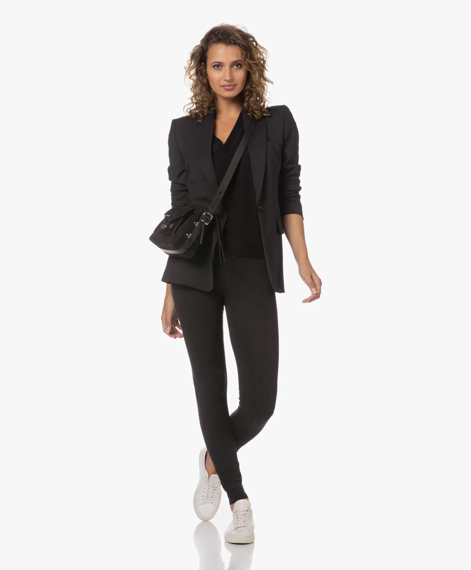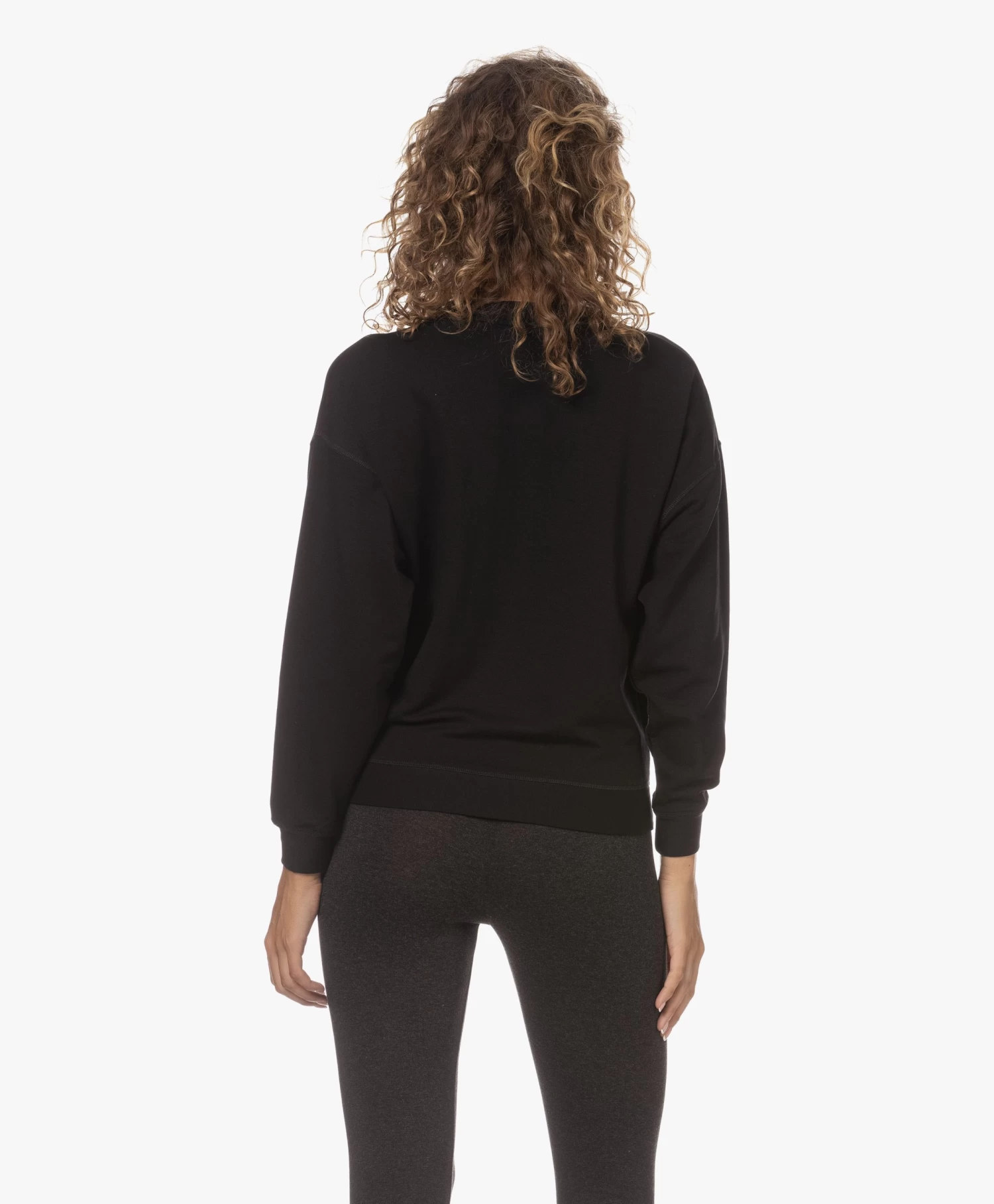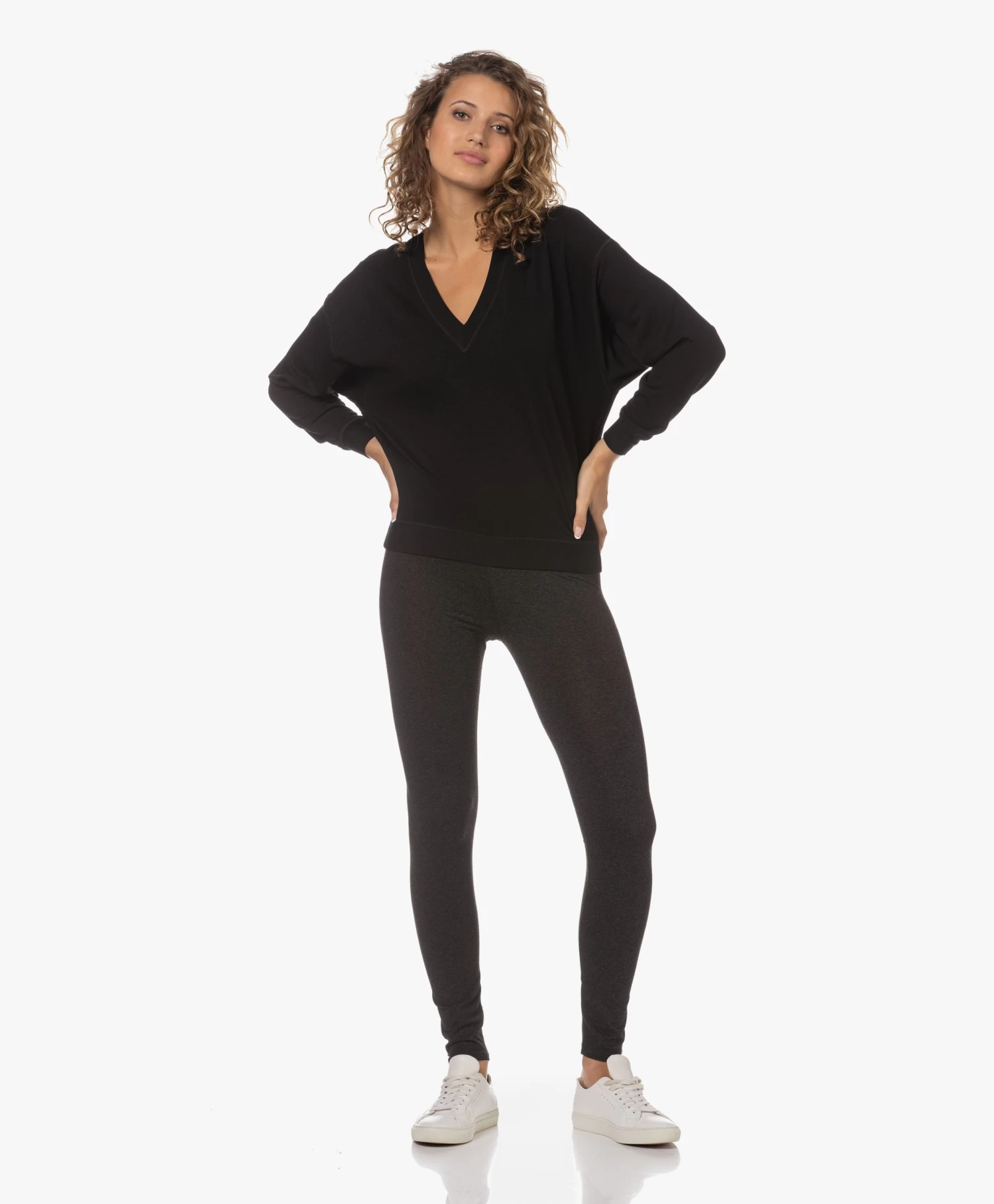 Nieuw in de Soft Touch-lijn van Majestic Filatures: een zwarte V-hals longsleeve van lichtgewicht stretch-viscose French terry. Met de looks van een sweatshirt, inclusief aangesloten zoomboord en manchetten, en het gewicht van een wat zwaarder T-shirt is dit een essential voor elk seizoen.