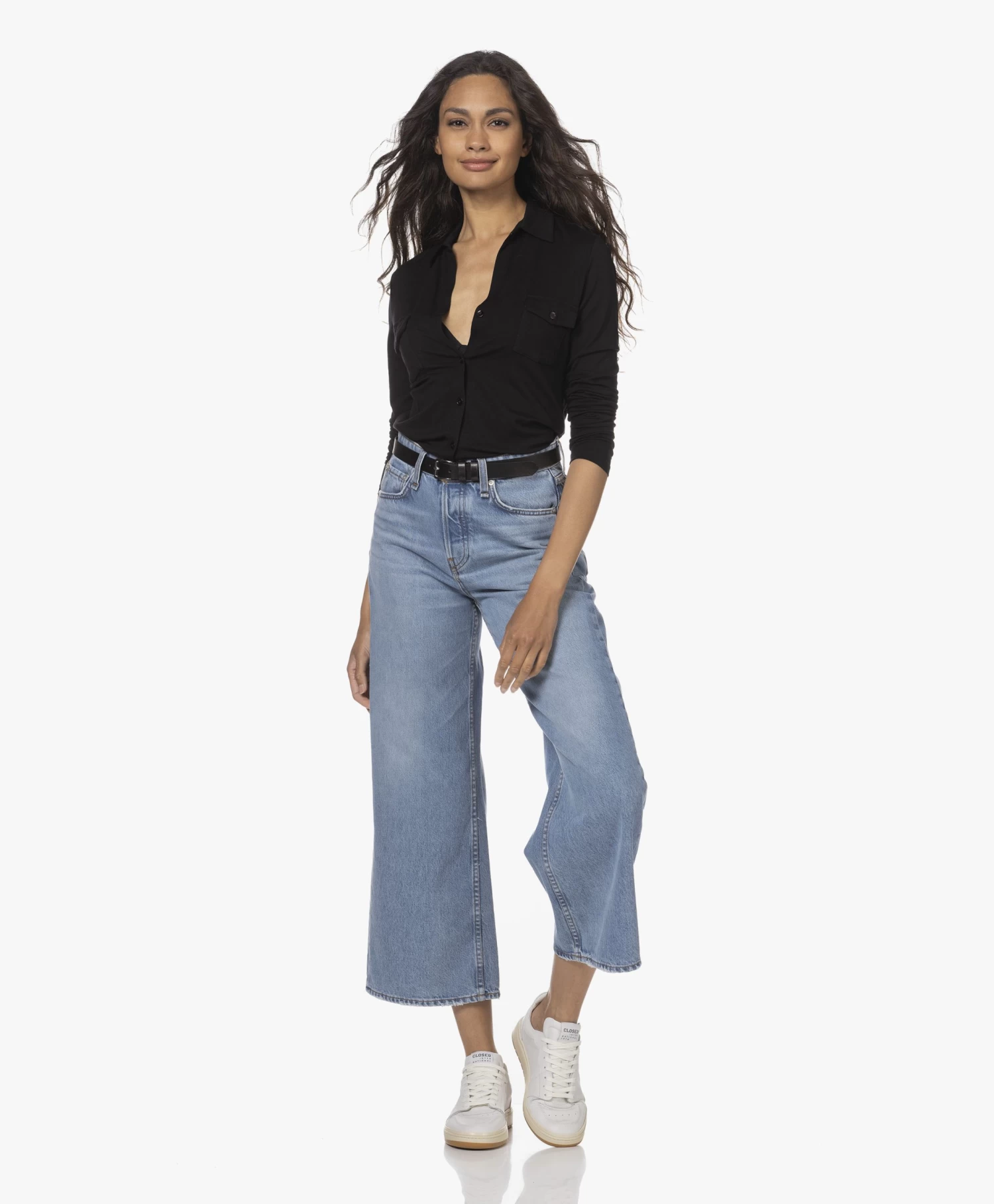 Deze zwarte blouse van Majestic Filatures is gemaakt van de voor het merk karakteristieke ‘superwashed soft touch’ jersey kwaliteit van viscose met extra stretch voor een perfecte pasvorm. Ontworpen met een V-hals en een semi-aangesloten pasvorm voor een ultra-vrouwelijke en tijdloze feel.