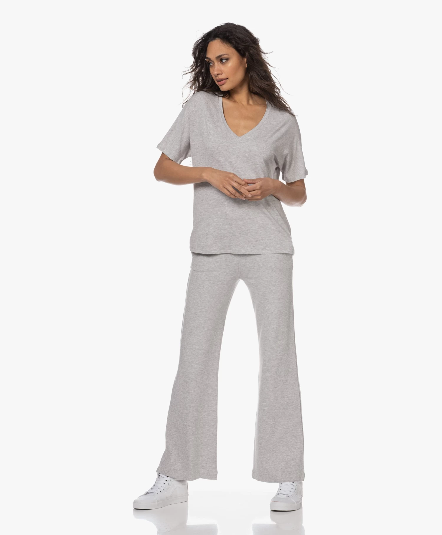 Majestic Filatures Superwashed Soft Touch V-Hals T-Shirt – Lichtgrijs Mêlee