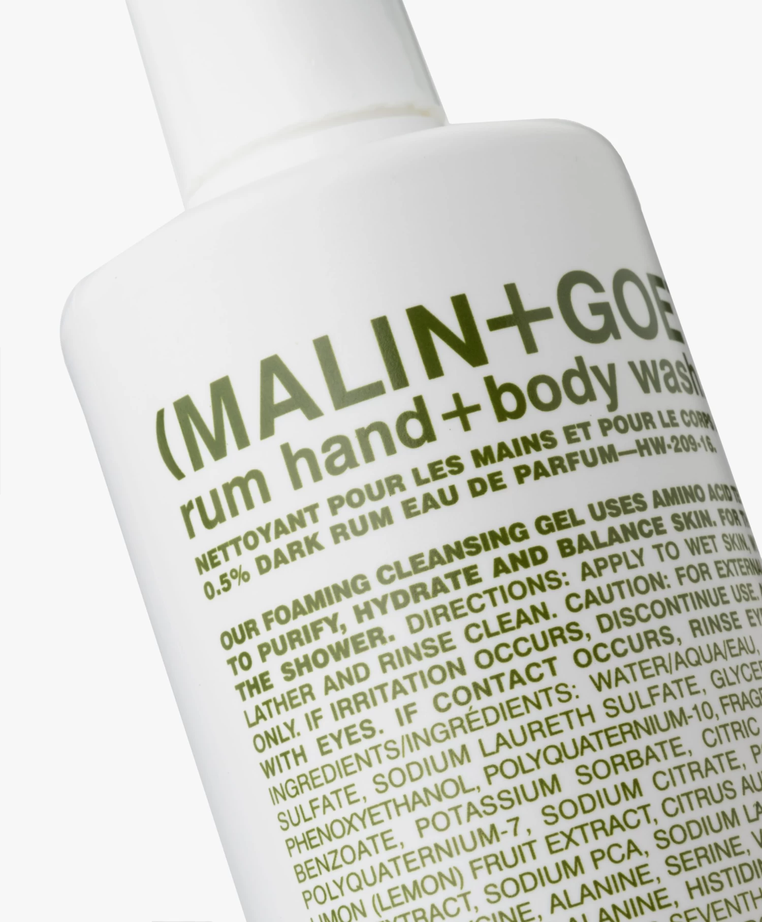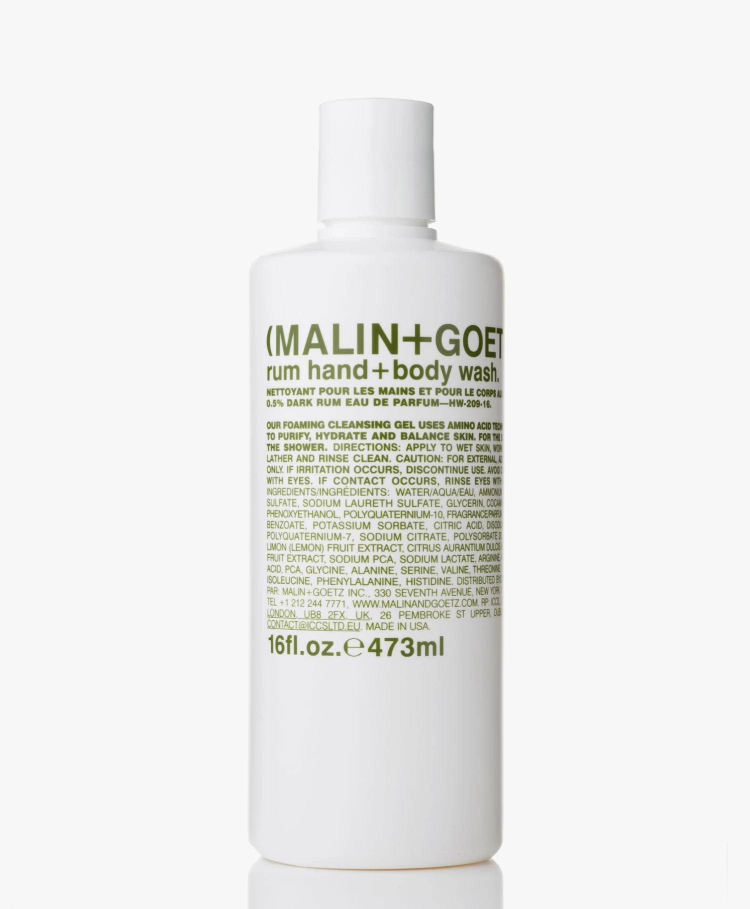 Deze schuimende Rum Hand & Body Wash van MALIN+GOETZ is samengesteld met de warme Rum Tonic Eau De Toilette met een op aminozuren-gebaseerd reinigingsmiddel. Deze hand & body wash heeft een zachte, zuiverende werking; in tegenstelling tot traditionele agressievere zeep. Ontwikkeld om te hydrateren en na afspoelen is de huid residu-vrij, zonder geïrriteerd of droog aan te voelen. Daarnaast draagt deze hand & body wash bij aan het verminderen van een gestreste huid en heeft een natuurlijke kleur.