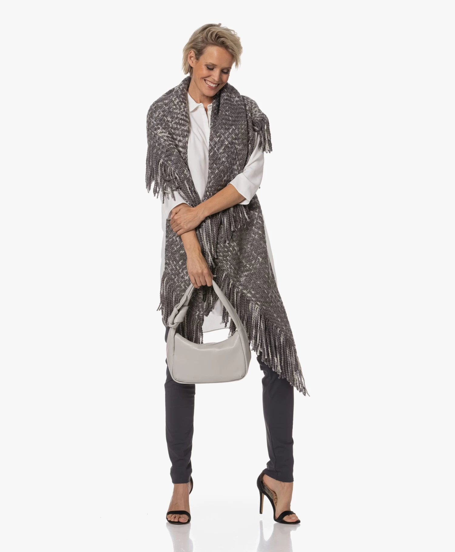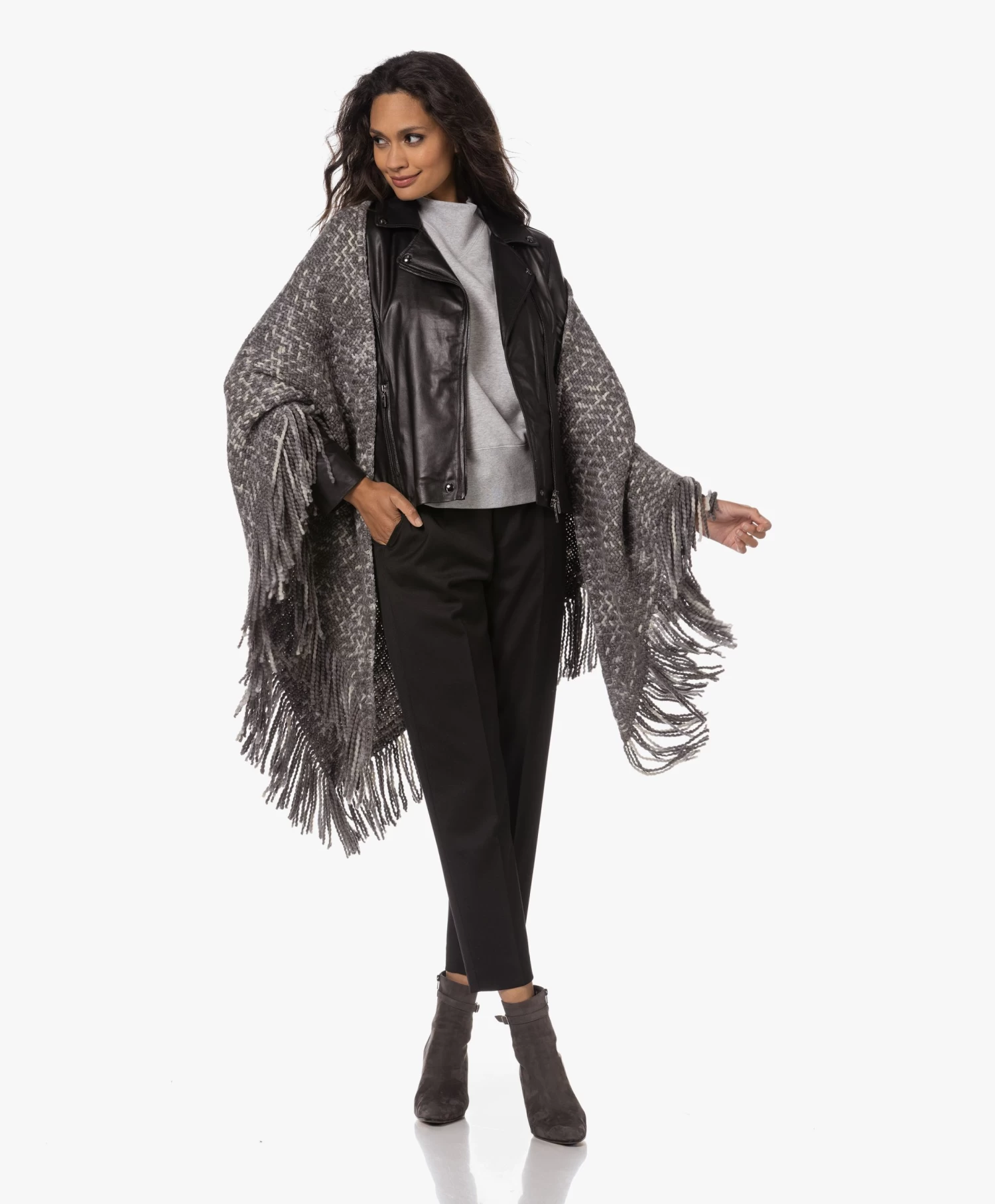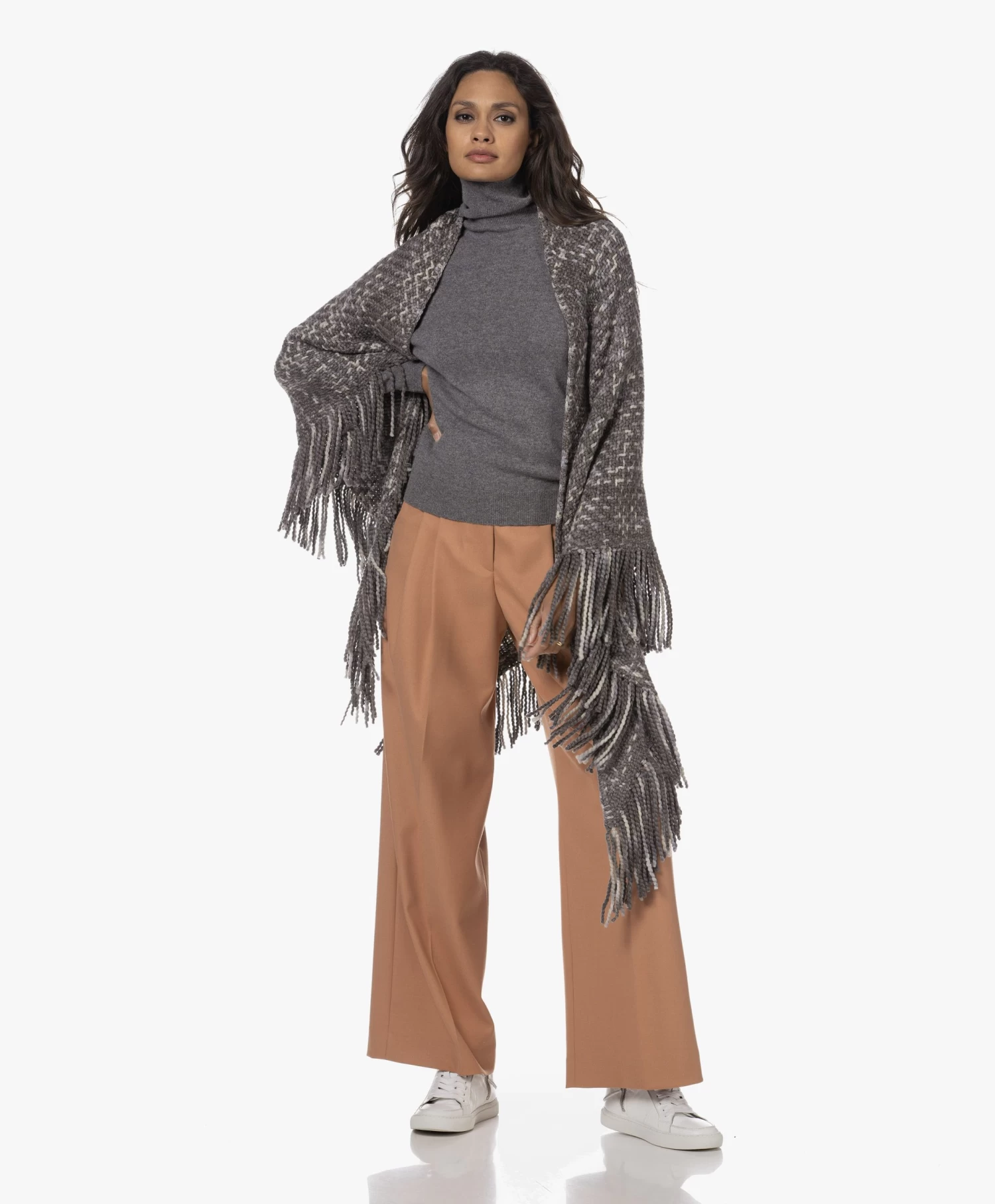 Unieke, handgemaakte stukken geven je garderobe karakter. Dat is, naast ultieme veelzijdigheid in gebruik, de toegevoegde waarde van deze handgeweven poncho van Manos del Uruguay. Gemaakt van de fijnste merinowol en linnen, gesponnen tot een zacht en dik garen met een gemêleerde optiek in grijstinten en ecru. Draagmomenten te over, variërend van relaxen op de bank tot power naps in het vliegtuig of een rondje met de hond. De fairtrade insteek komt met een persoonlijk tintje: de hangtag vermeldt de naam van de trotse maker.