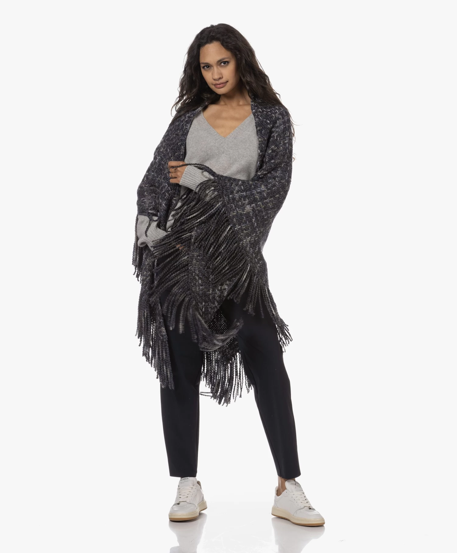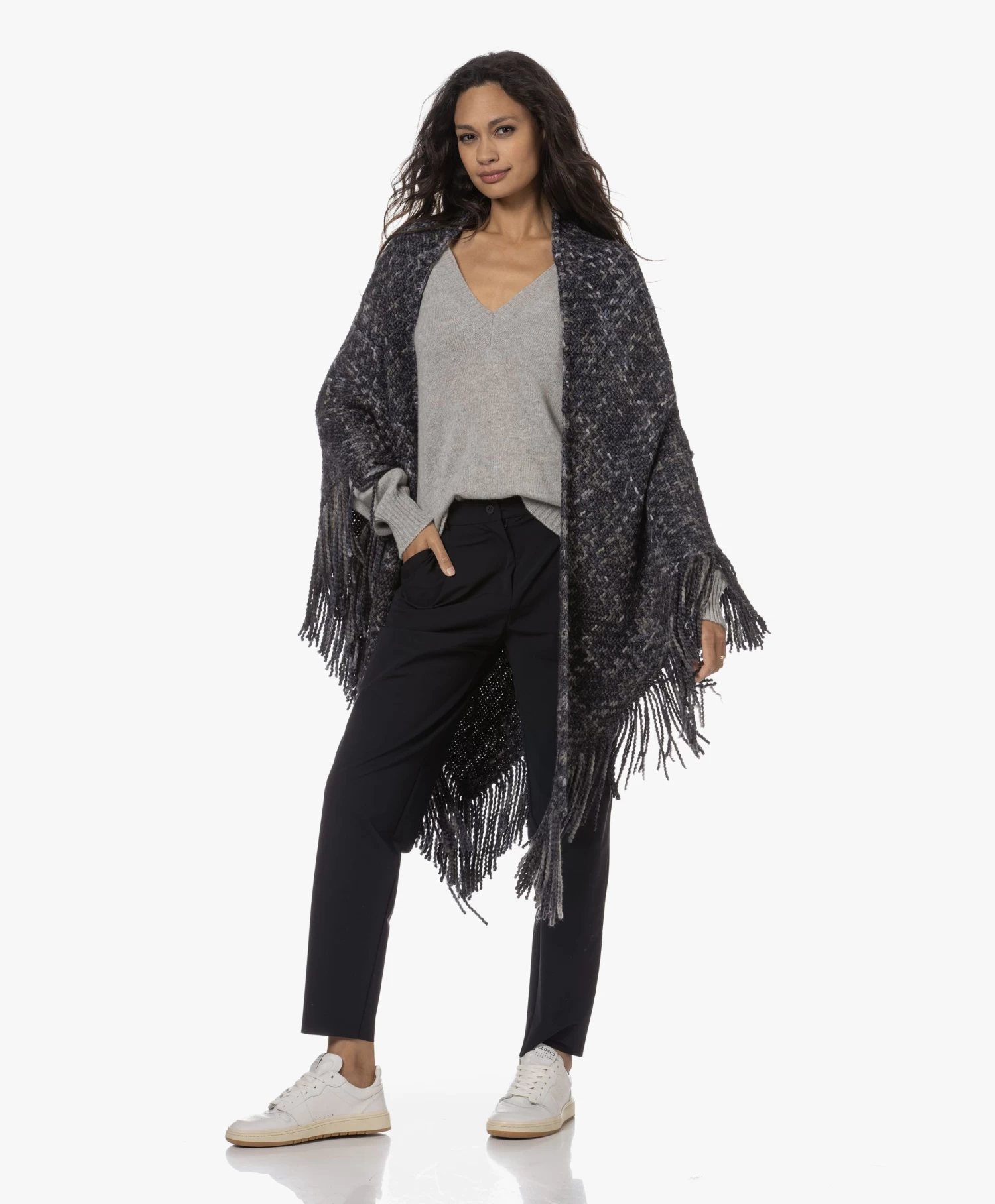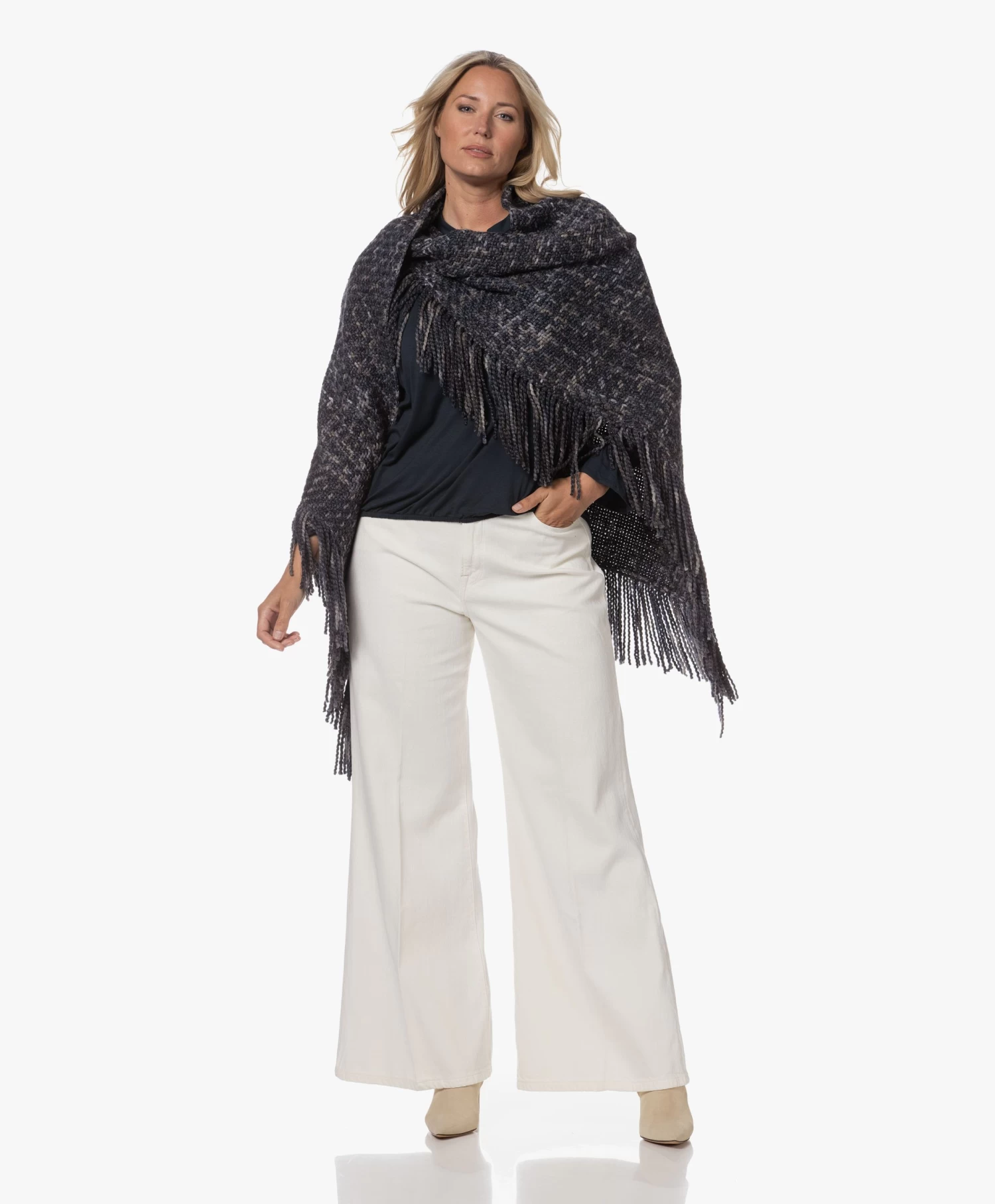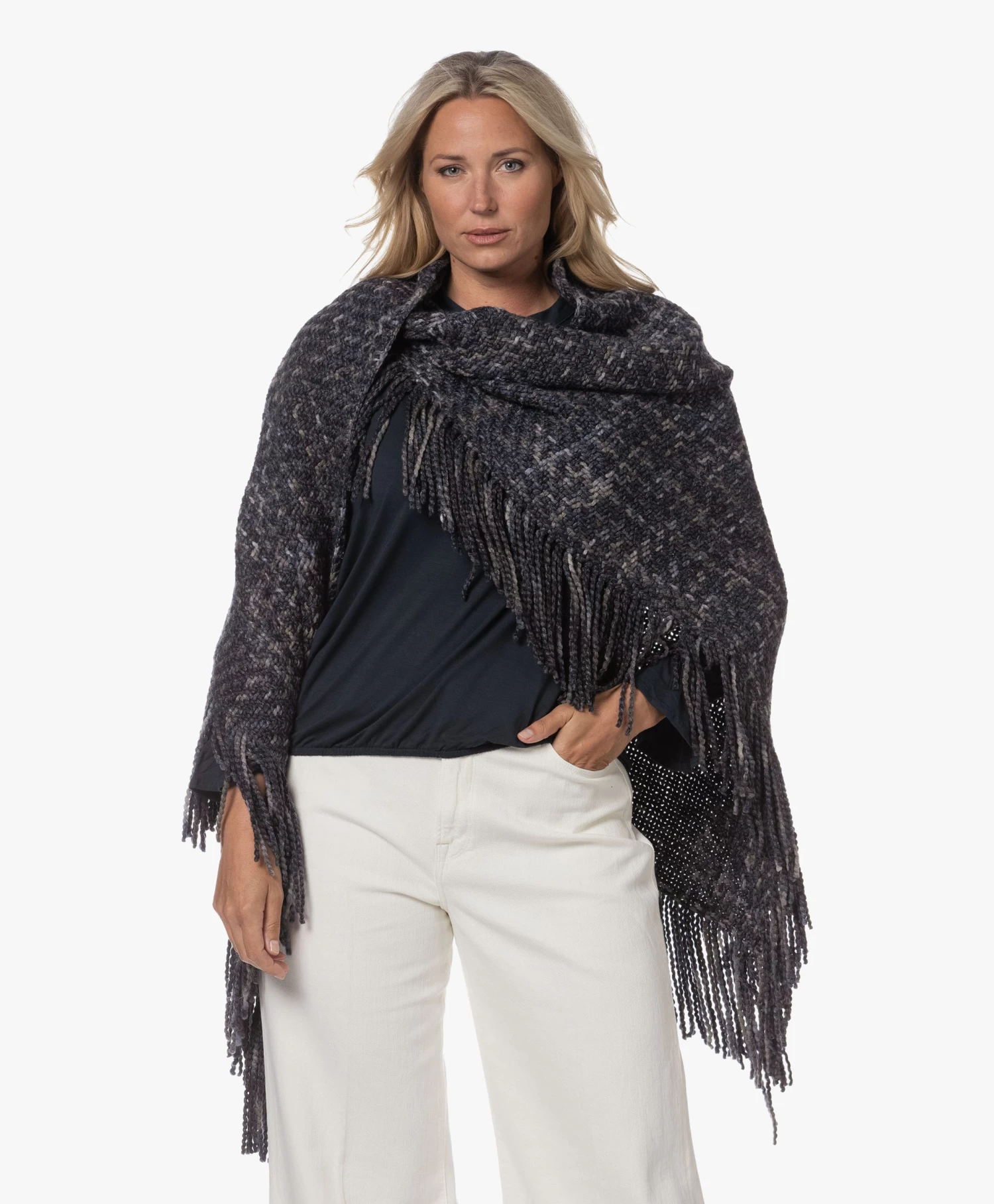 Unieke, handgemaakte stukken geven je garderobe karakter. Dat is, naast ultieme veelzijdigheid in gebruik, de toegevoegde waarde van deze handgeweven poncho van Manos del Uruguay. Gemaakt van de fijnste merinowol en linnen, gesponnen tot een zacht en dik garen met een gemêleerde optiek in grijstinten. Draagmomenten te over, variërend van relaxen op de bank tot power naps in het vliegtuig of een rondje met de hond. De fairtrade insteek komt met een persoonlijk tintje: de hangtag vermeldt de naam van de trotse maker.