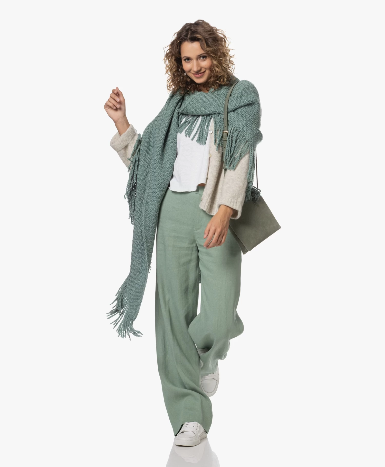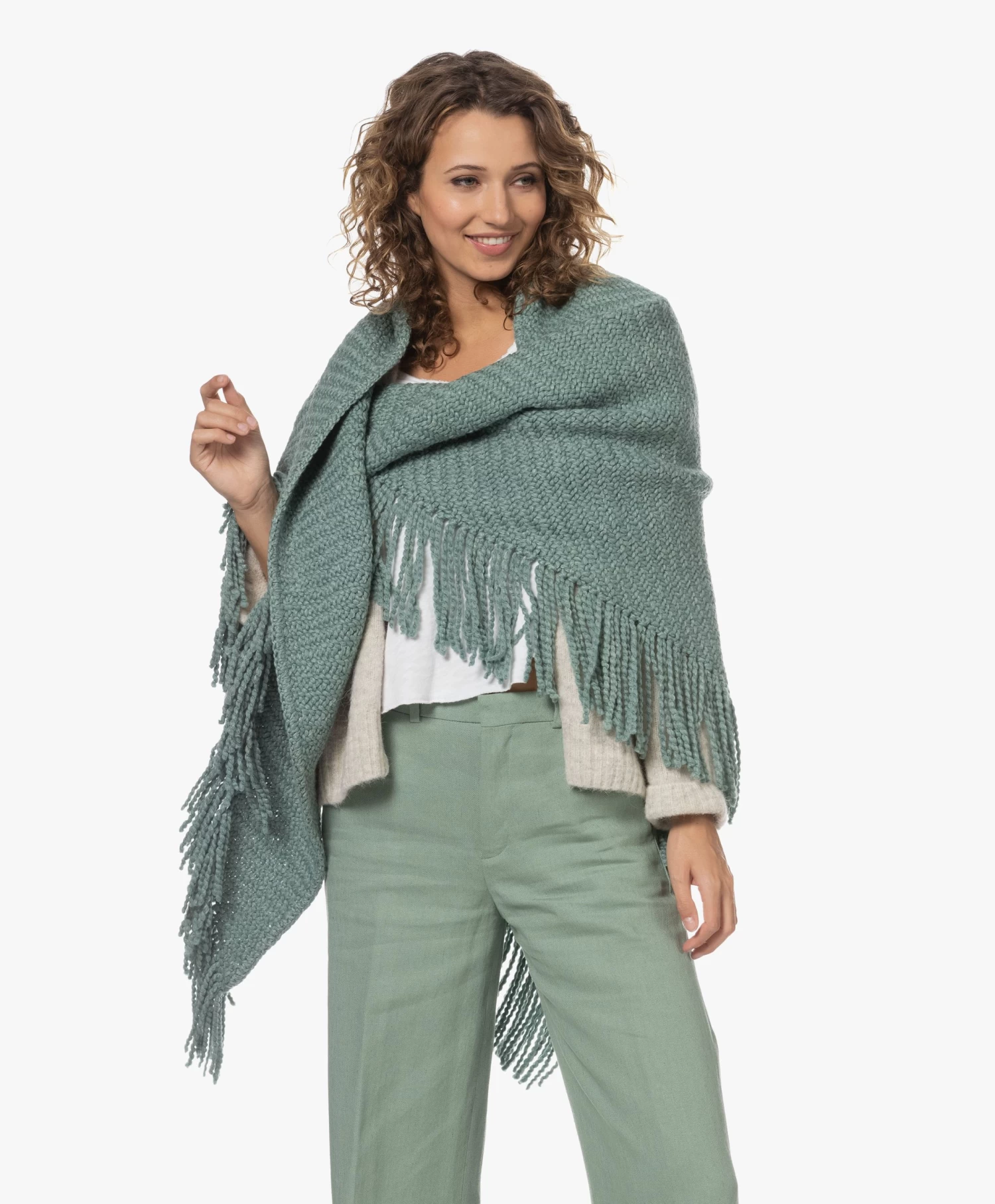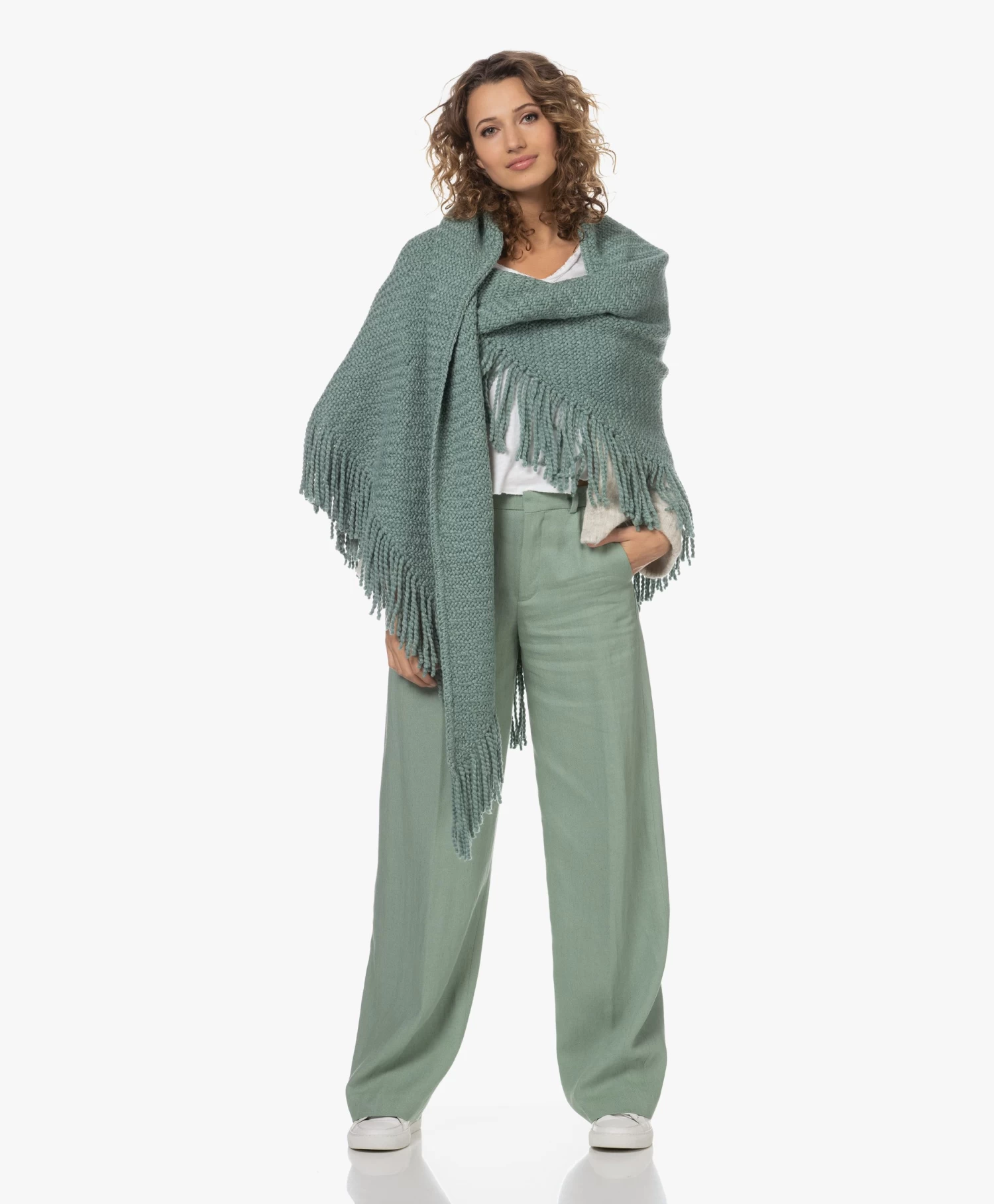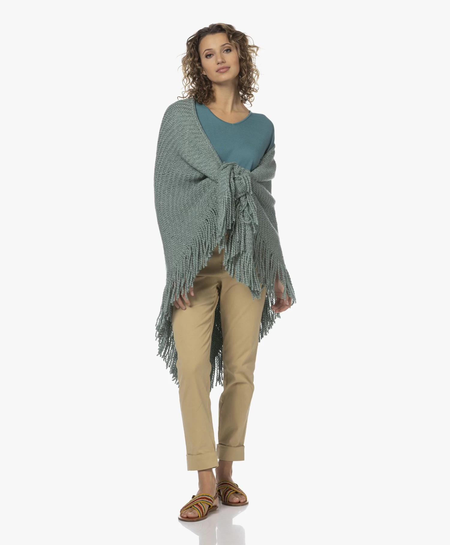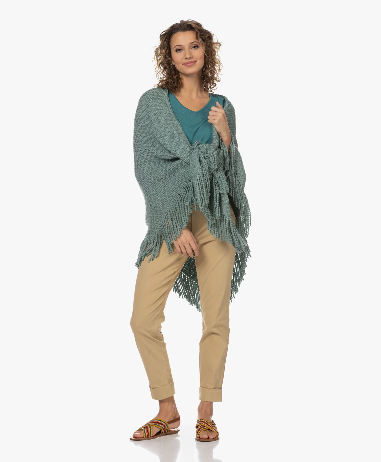 Unieke, handgemaakte stukken geven je garderobe karakter. Dat is, naast ultieme veelzijdigheid in gebruik, de toegevoegde waarde van deze handgeweven poncho van Manos del Uruguay. Gemaakt van de fijnste merinowol en linnen, gesponnen tot een zacht en dik garen met een gemêleerde optiek in jadegroen. Draagmomenten te over, variërend van relaxen op de bank tot power naps in het vliegtuig of een rondje met de hond. De fairtrade insteek komt met een persoonlijk tintje: de hangtag vermeldt de naam van de trotse maker.