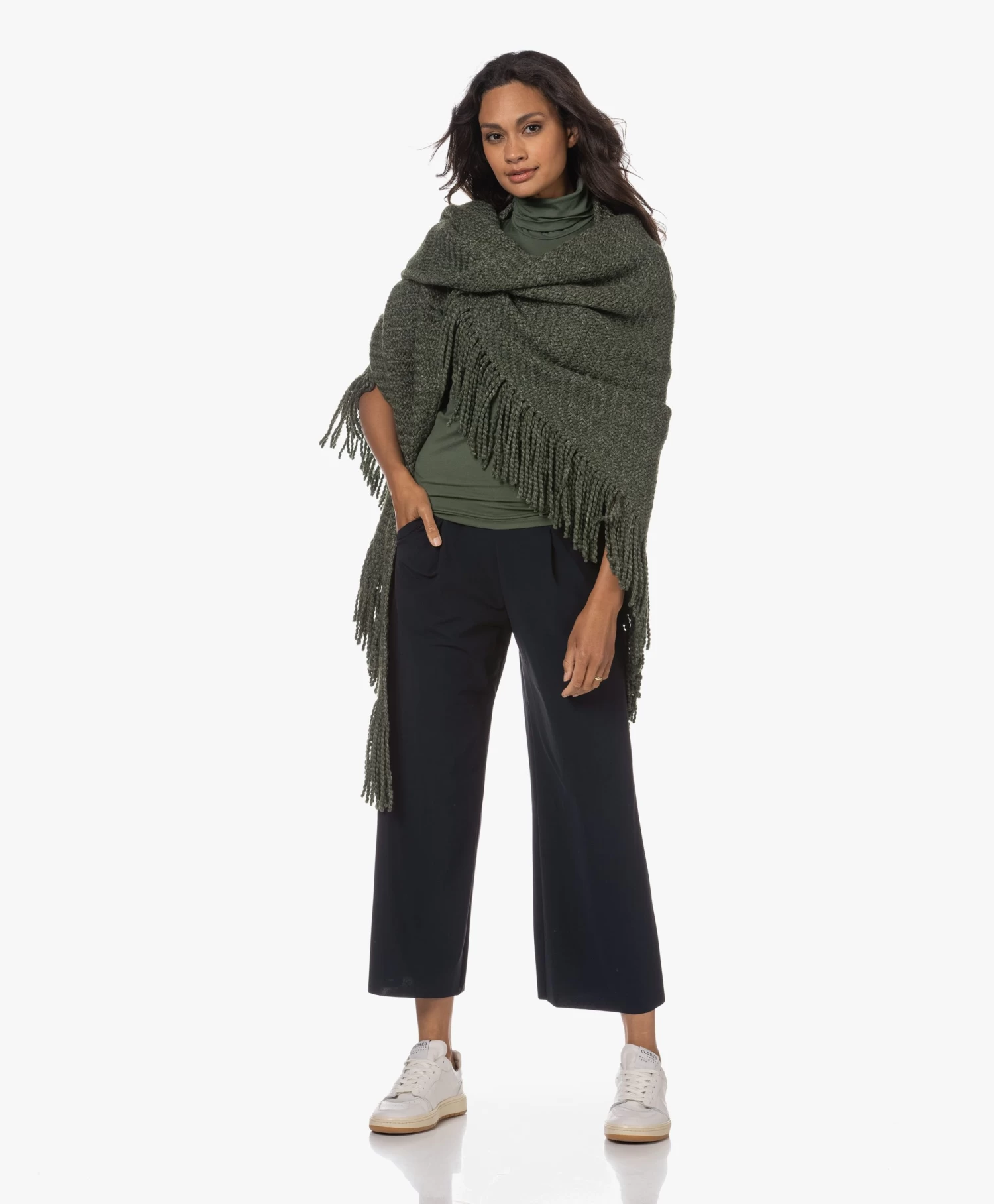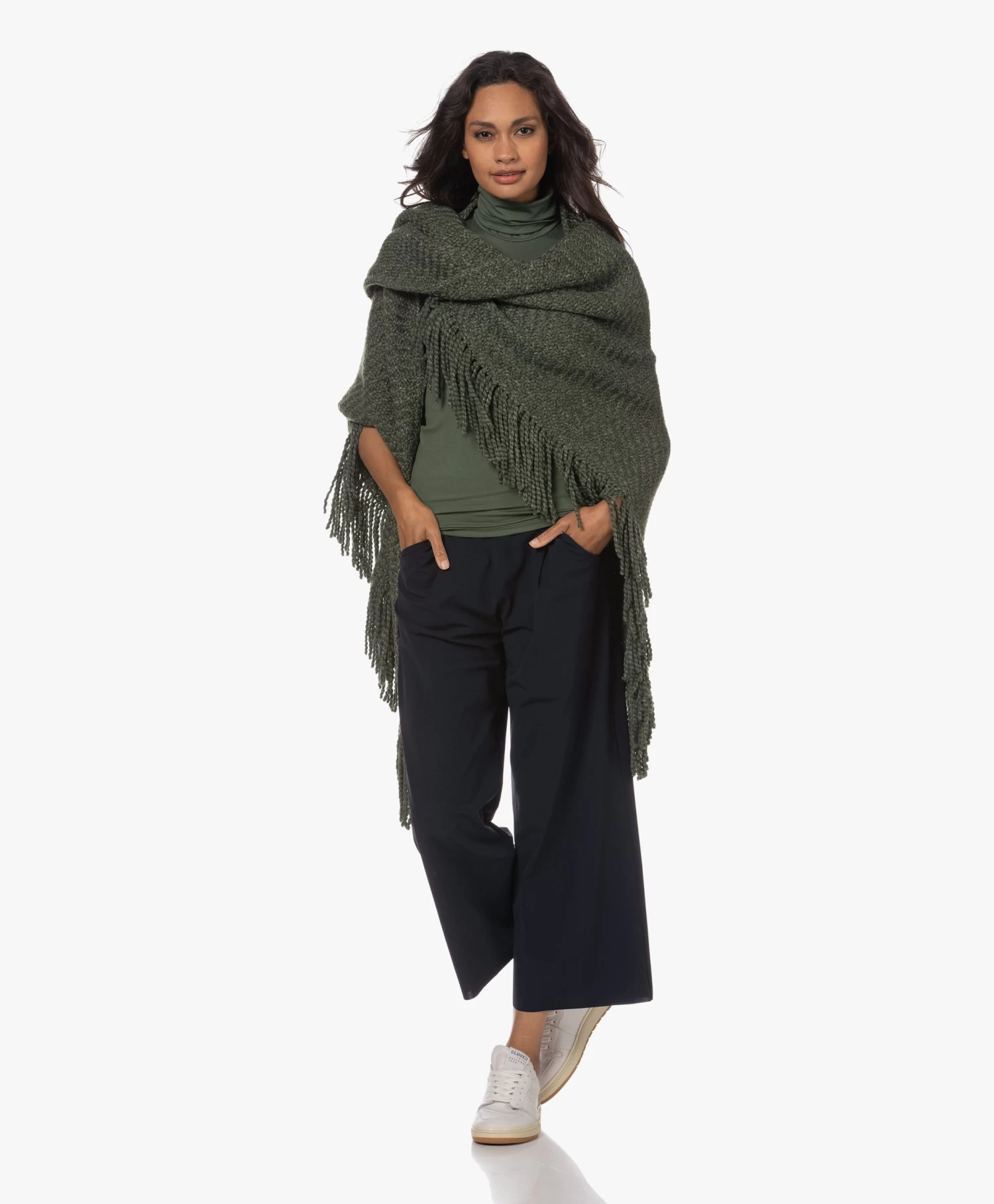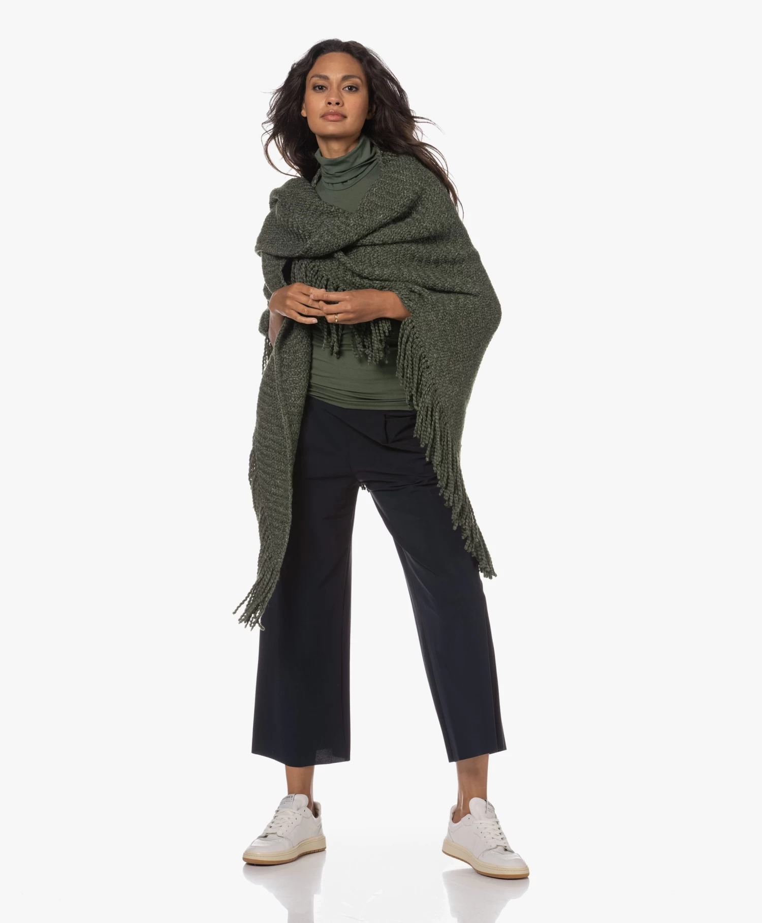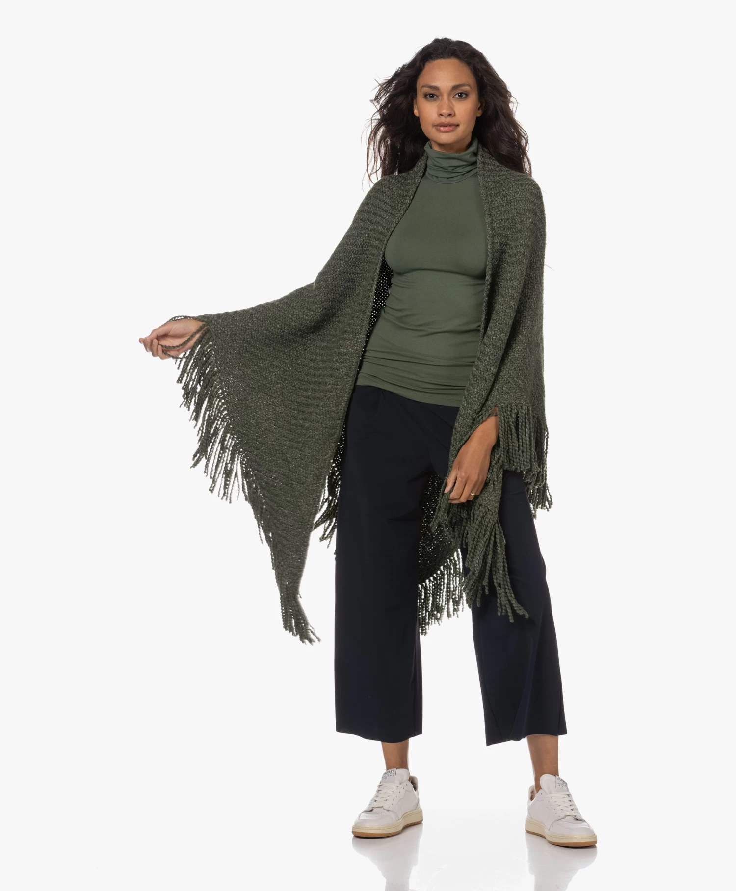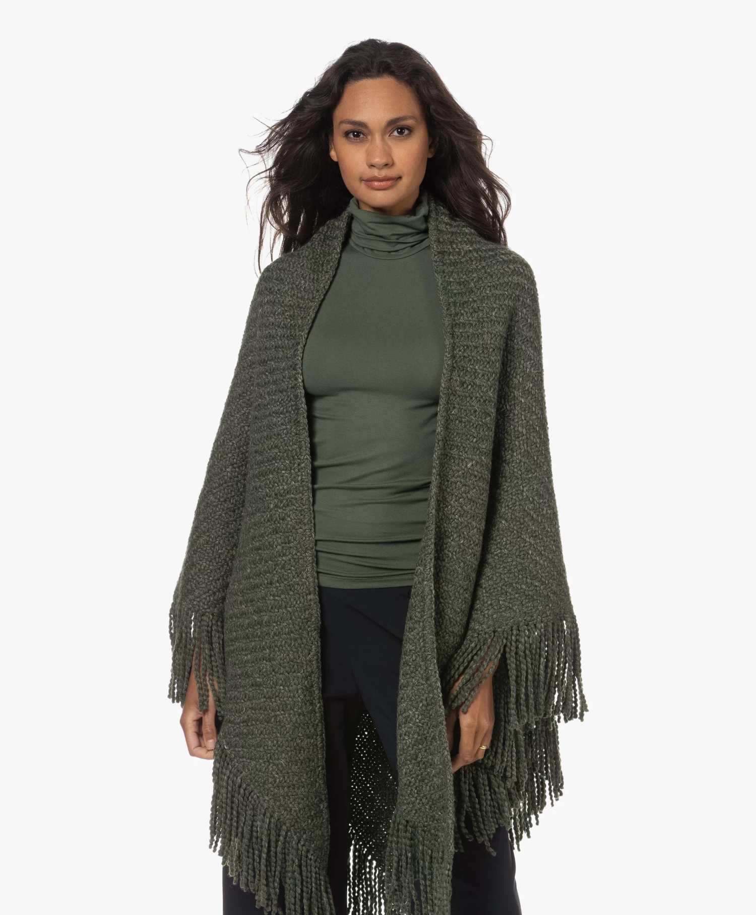 Unieke, handgemaakte stukken geven je garderobe karakter. Dat is, naast ultieme veelzijdigheid in gebruik, de toegevoegde waarde van deze handgeweven poncho van Manos del Uruguay. Gemaakt van de fijnste merinowol en linnen, gesponnen tot een zacht en dik garen met een gemêleerde optiek in donkergroen. Draagmomenten te over, variërend van relaxen op de bank tot power naps in het vliegtuig of een rondje met de hond. De fairtrade insteek komt met een persoonlijk tintje: de hangtag vermeldt de naam van de trotse maker.