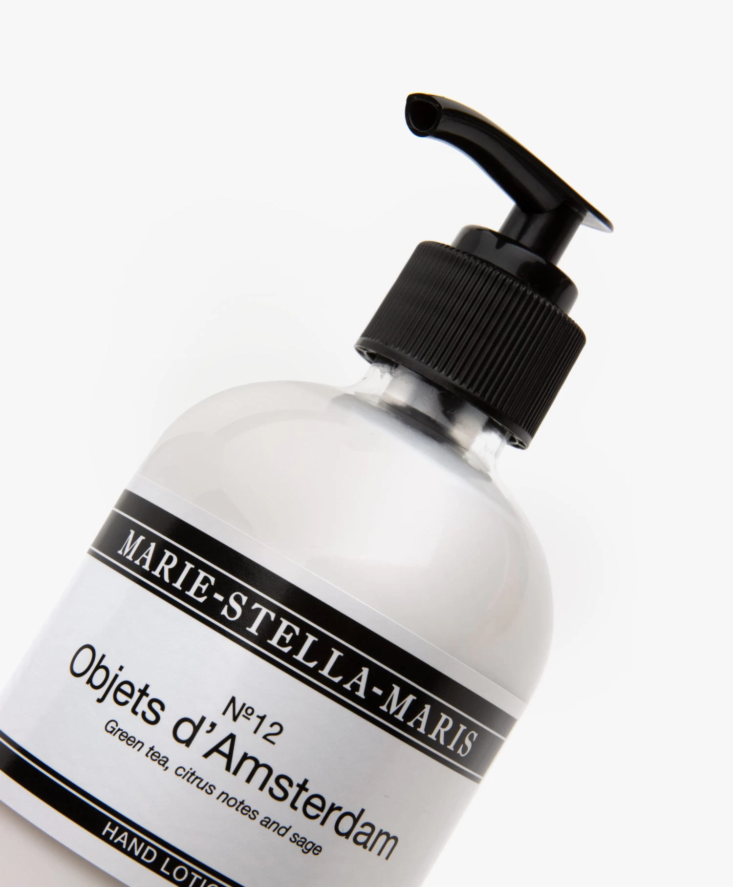 Zachte, perfect verzorgde handen gaat bij Marie-Stella-Maris standaard gepaard met een verrijking van je interieur. De No.12 Objets d’Amsterdam Hand Lotion komt in een glazen pompfles met het klassieke – en inmiddels iconische – zwart/witte etiket. Met natuurlijke ingrediënten zoals glycerine, sheaboter en zonnebloemolie voedt deze handcrème de huid optimaal terwijl de sprankelende tonen van groene thee, citrus en salie een delicate geur achterlaat die je steeds weer opnieuw wilt ruiken.