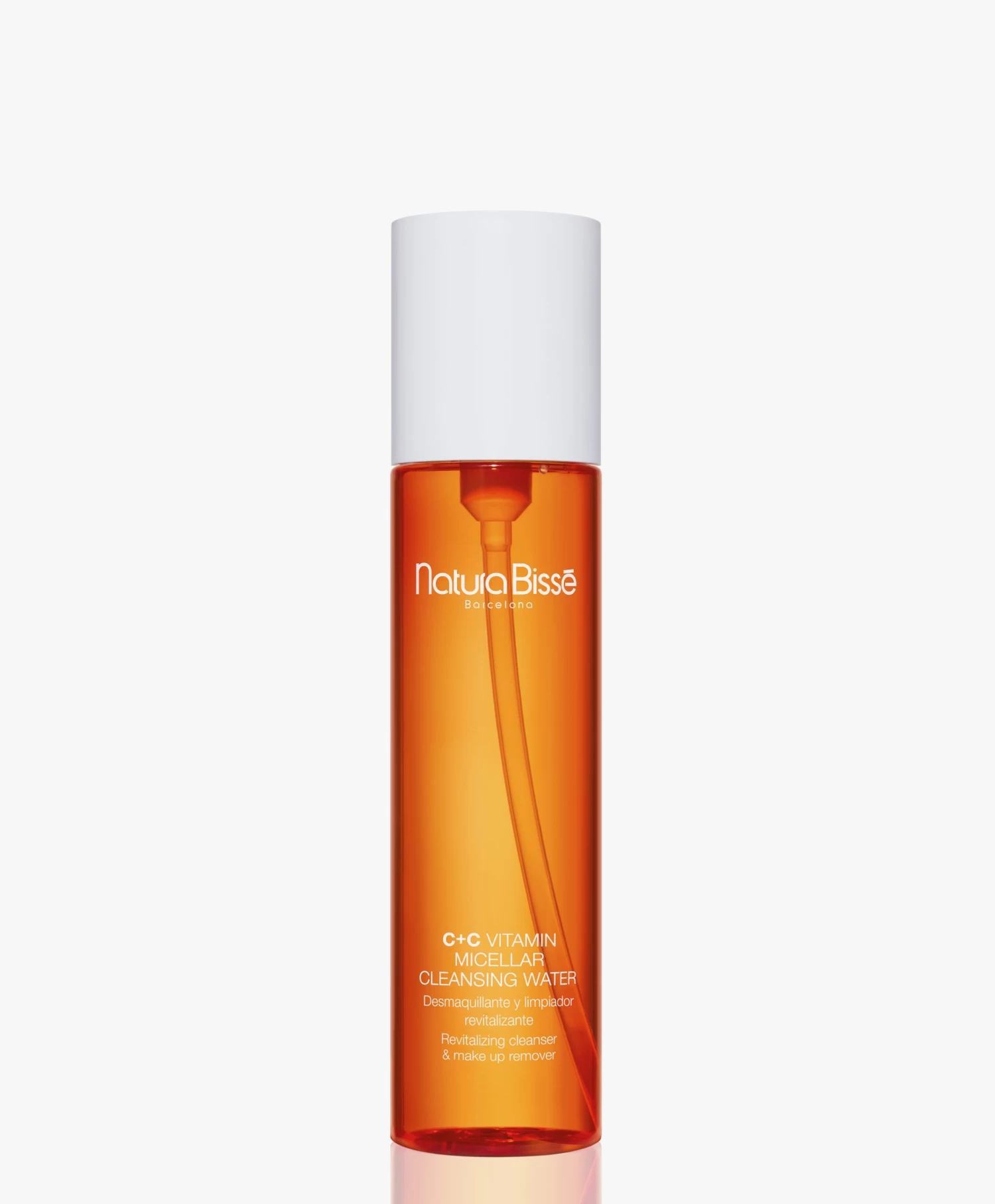 De C+C Vitamin collectie van Natura Bissé biedt alle gunstige effecten van vitamine C; de meest directe manier om zichtbare tekenen van veroudering in de meest natuurlijke vorm te herstellen en te voorkomen. Dit revitaliserende Micellar Cleansing Water is gemaakt om je huid diep te reinigen en make-up en onzuiverheden te verwijderen. Een multifunctioneel 2-in-1 product met een hydraterende werking voor een levendige glow. Omdat je de cleanser niet afspoelt, blijven de actieve ingrediënten achter op de huid – handig!