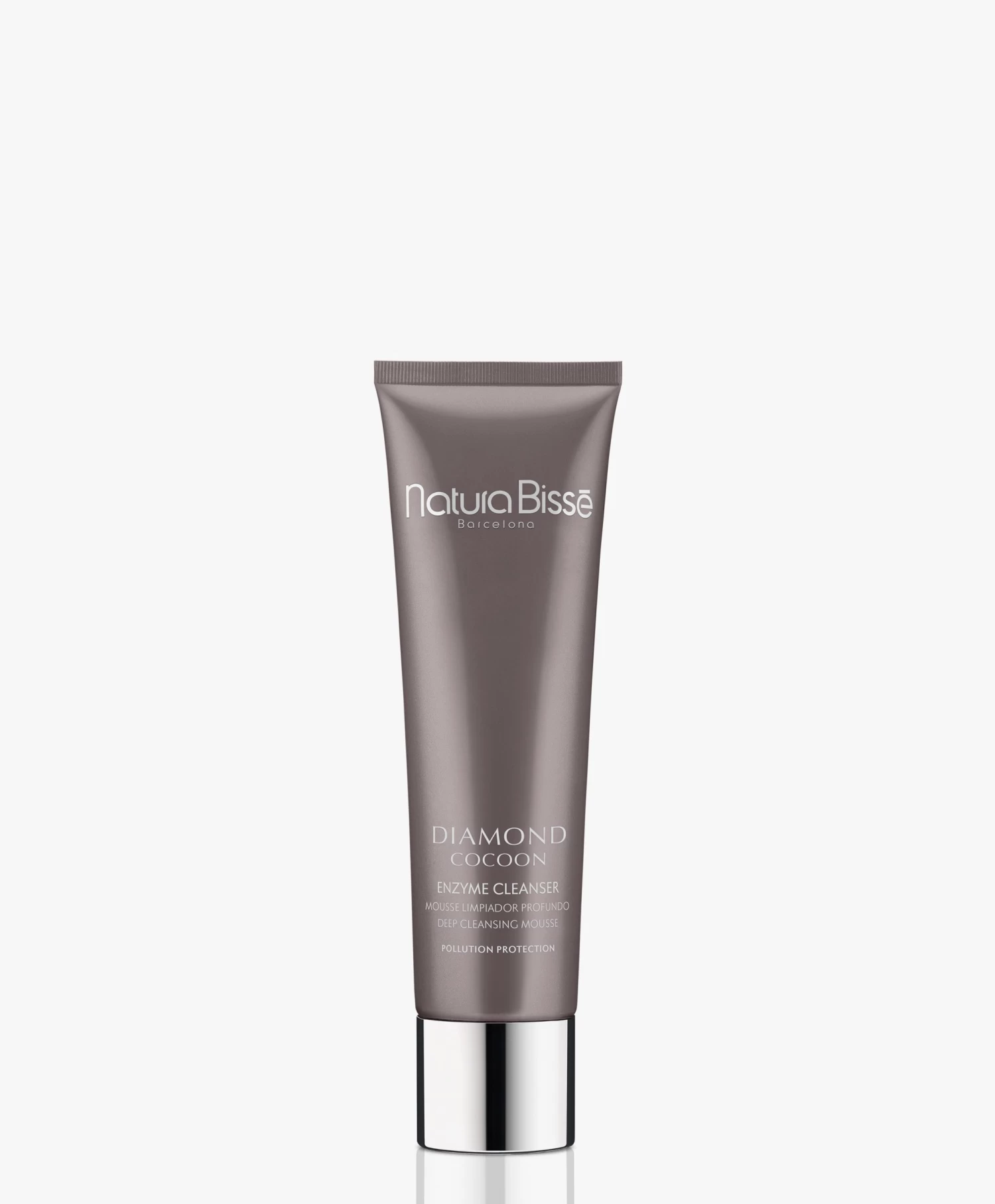 De huid bevrijden van alles wat dagelijkse luchtvervuiling op de huid achterlaat doe je met deze de Diamond Cocoon Deep Enzyme Cleanser van Natura Bissé. De diep reinigende mouse verwijdert gifstoffen en onzuiverheden door vervuiling en schadelijk blauw licht van schermen. De huid barrière wordt versterkt op de dieper gelegen lagen terwijl schadelijke en vervuilende deeltjes worden geïsoleerd en buitengesloten.