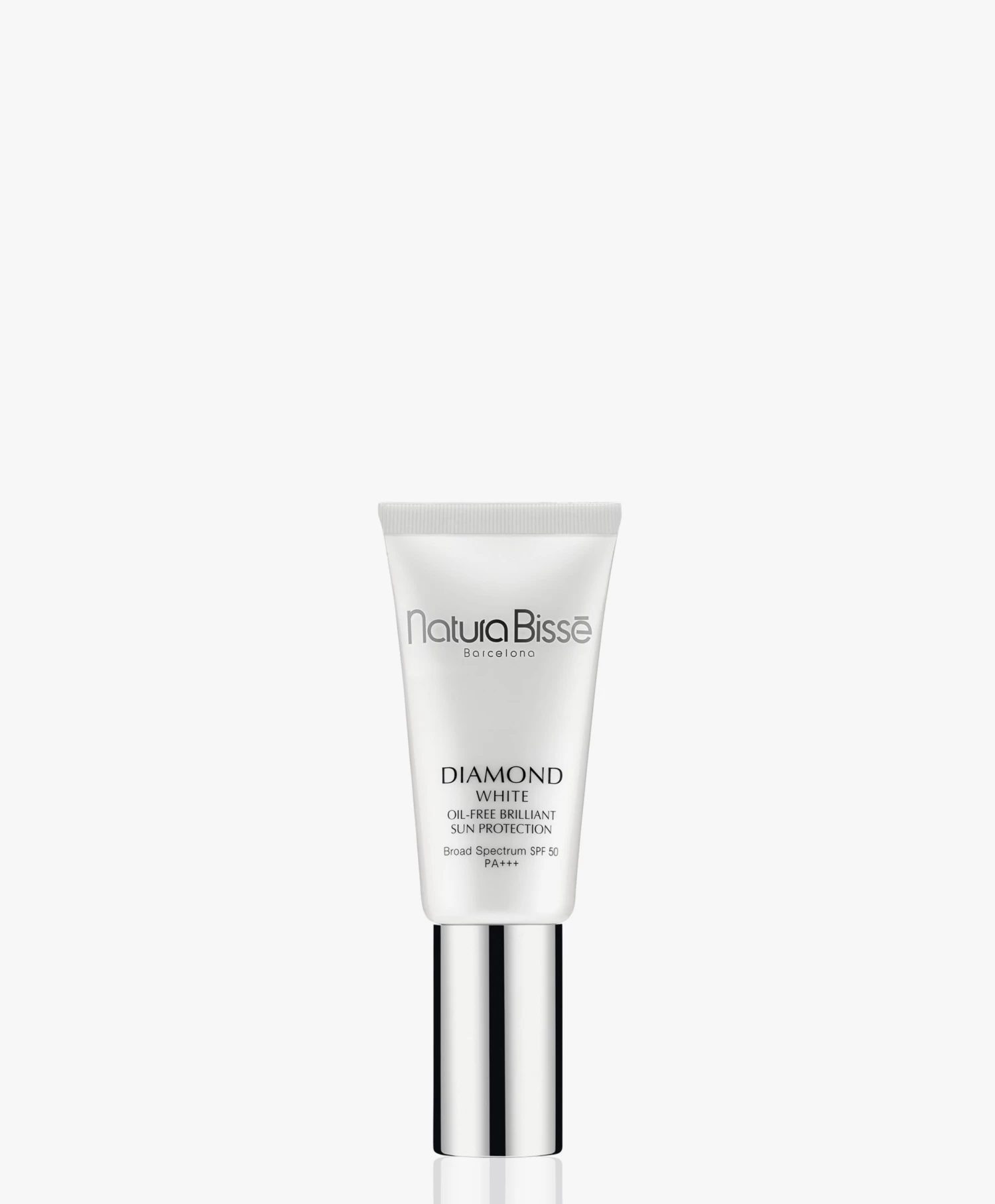 Natura Bissé brengt de Diamond White collectie: een speciale anti-aging lijn met maar liefst 40% geconcentreerde werkstoffen om pigmentatie aan te pakken. Deze verhelderende PA+++ zonnebrandcrème met SPF 50 biedt zeer effectieve bescherming tegen UVA- en UVB-stralen. De olievrije formule is verrijkt met granaatappelextract om de zichtbaarheid van pigmentvlekjes te verminderen en melanine pigmenten waardoor de crème zich moeiteloos aanpast aan elke huidskleur- en ondertoon voor een egale teint.