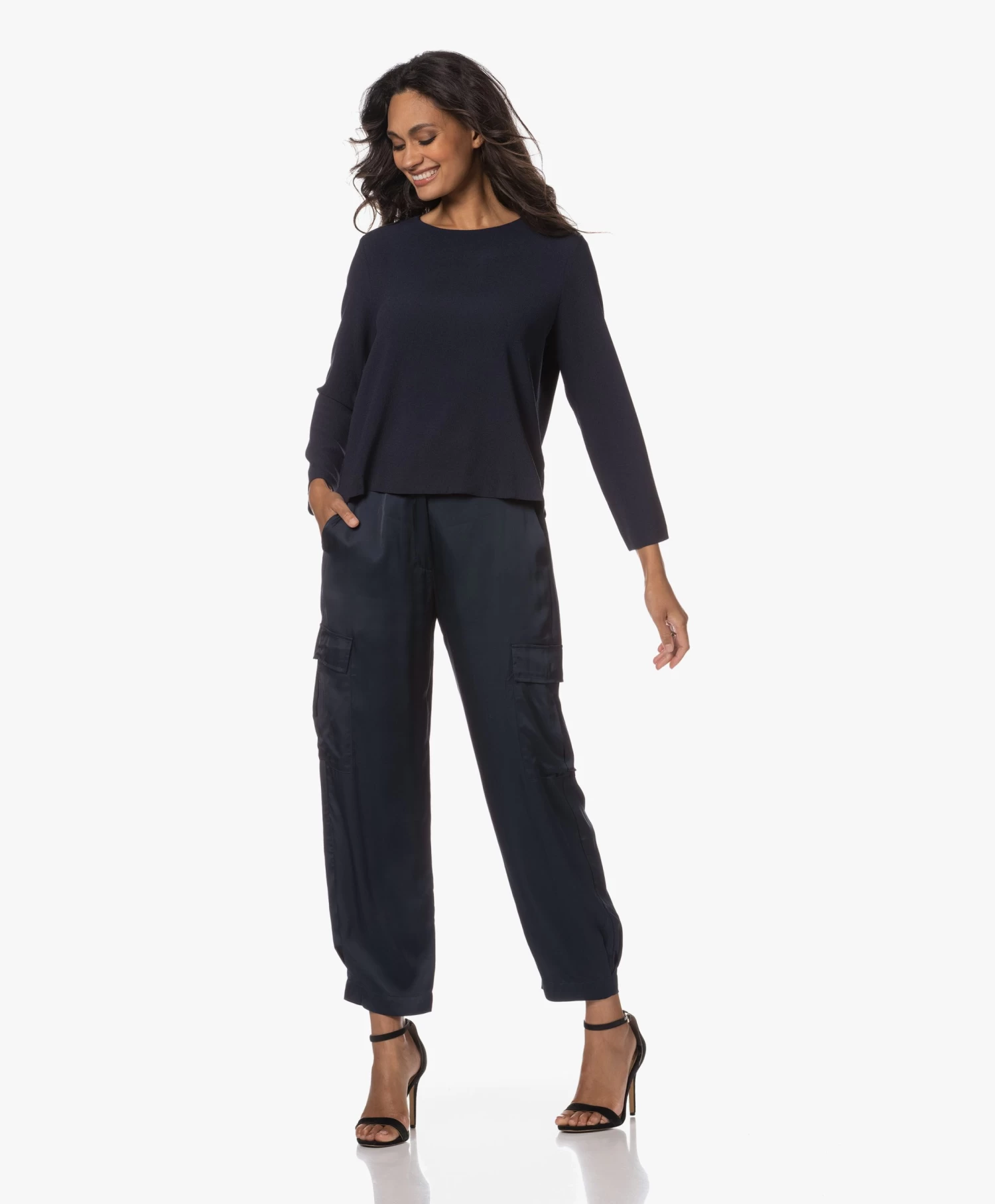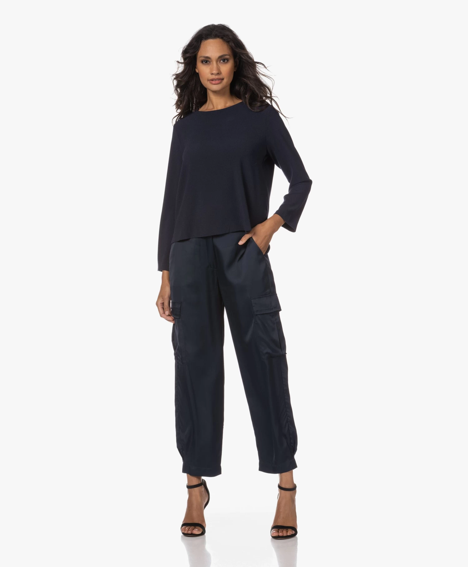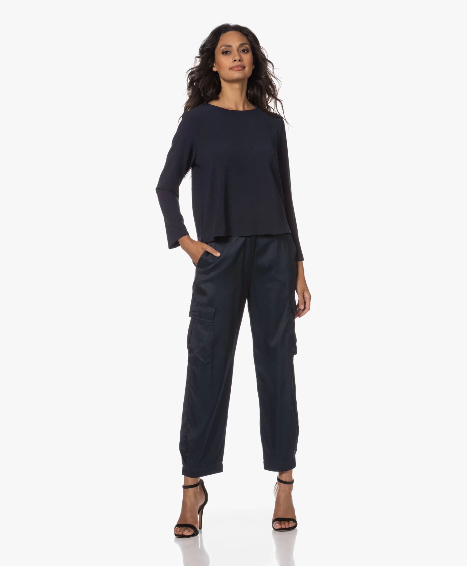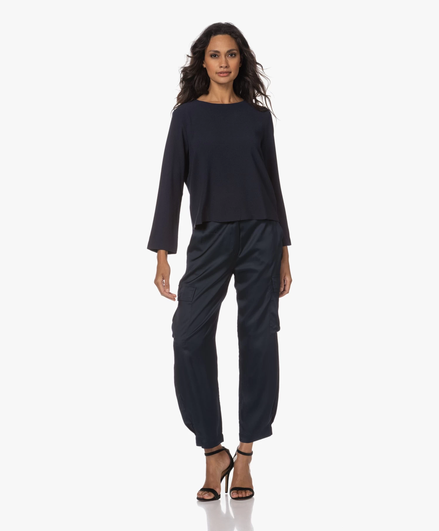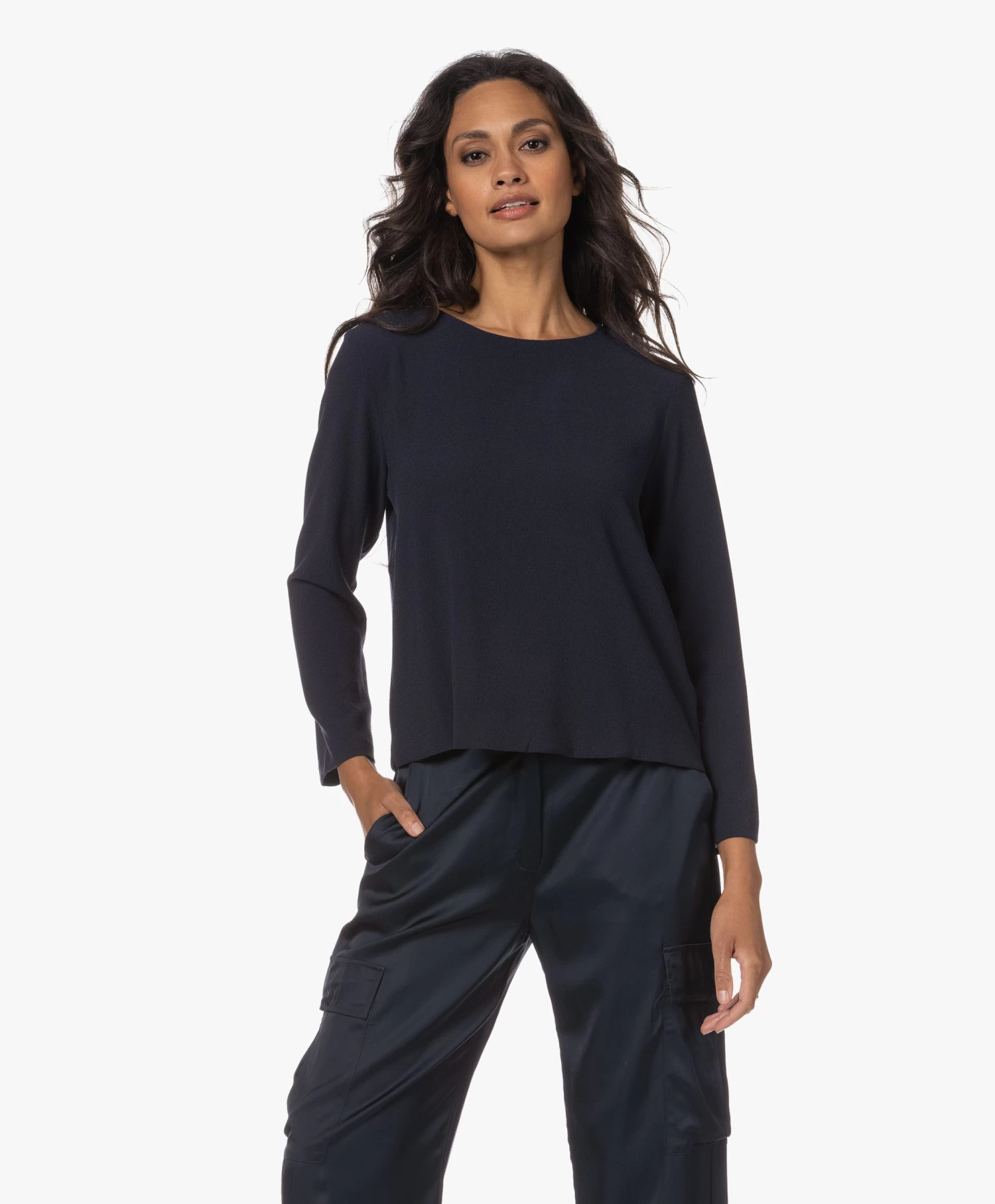 No Man’S Land Crêpe Blouse Met Lange Mouwen – Dark Sapphire