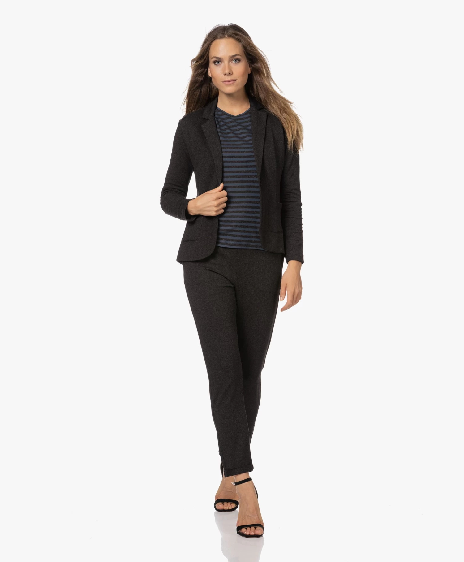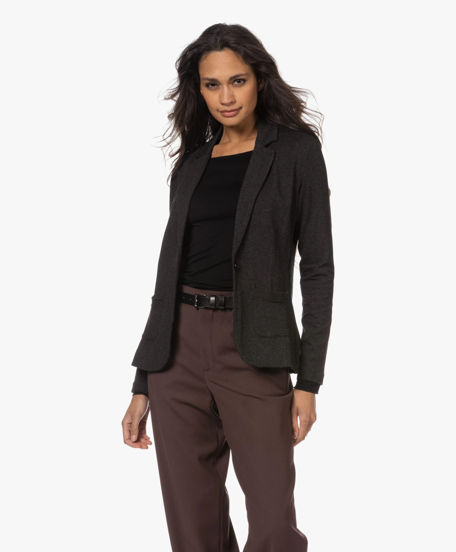Lichtgewicht French terry van zachte stretchviscose geeft no man’s land’s donkergrijze blazer een hoog draagcomfort en een smart-casual uitstraling. Ideaal voor hectische dagen waarop je snel wilt kunnen schakelen. Heb je de bijpassende cropped jogger al gezien? Daarmee maak je je outfit stijlvol compleet.