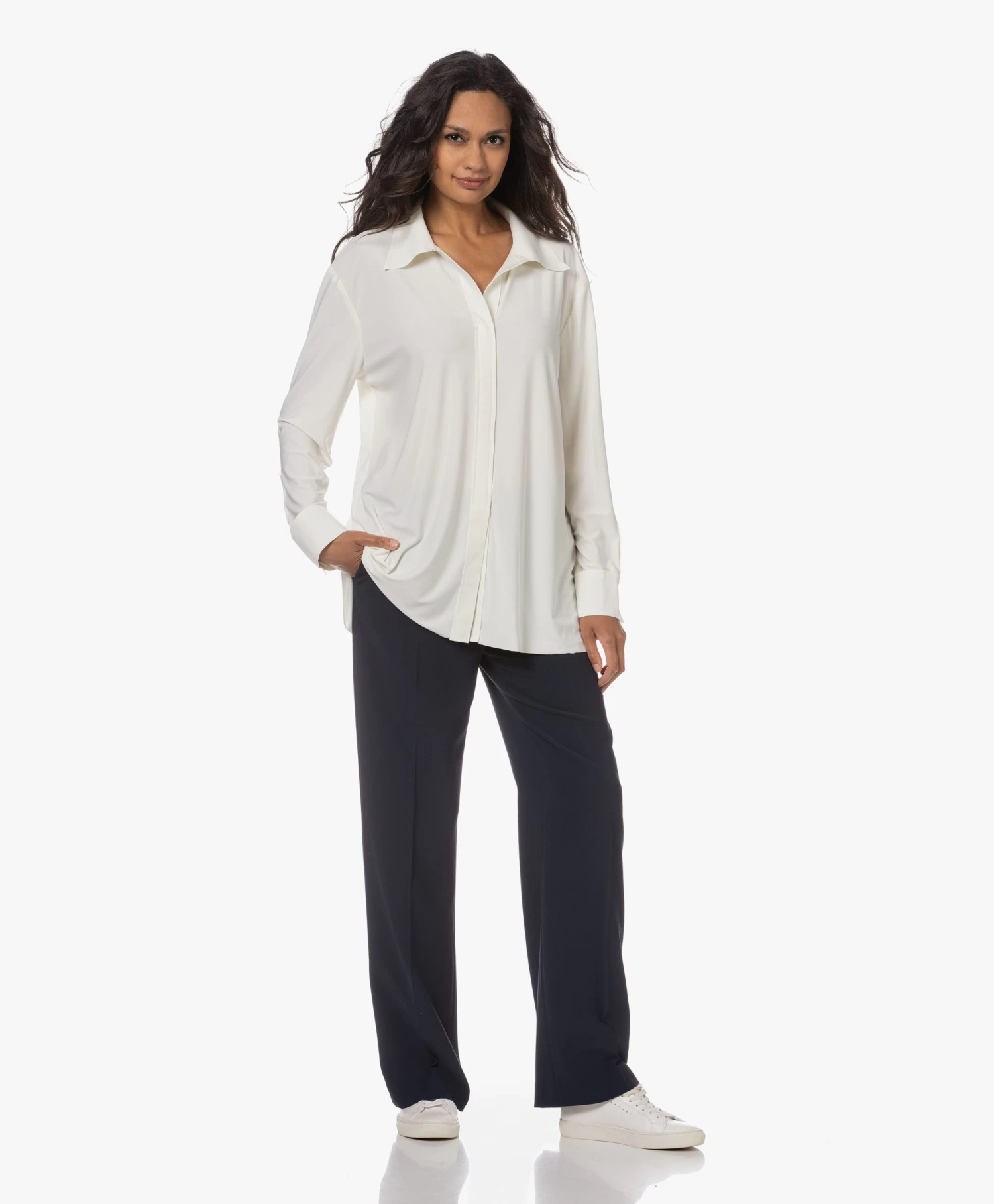 – Verborgen ‘faux’ knopenlijst, vastgestikt vanaf borsthoogte