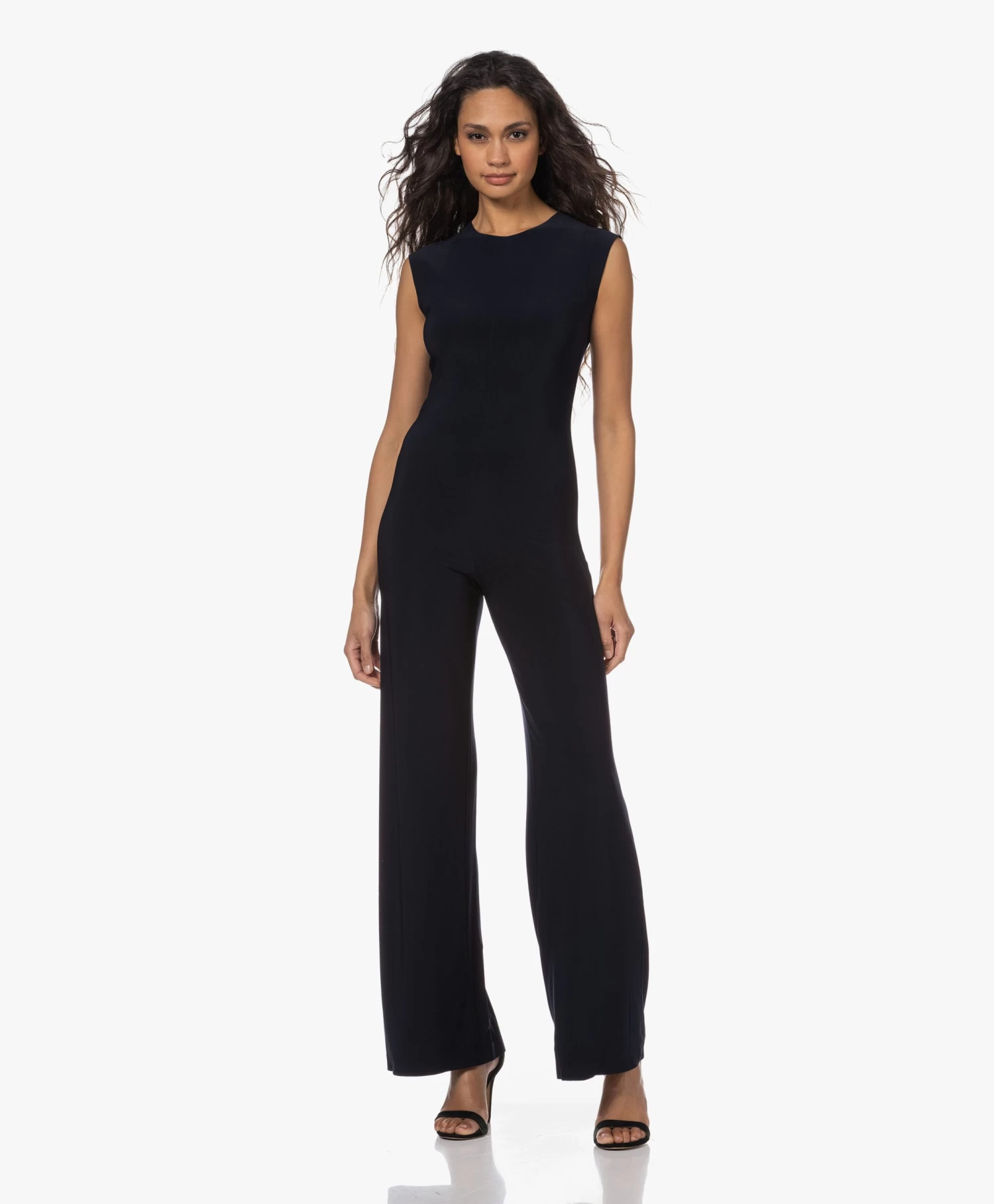 De tijdloze must-haves van Norma Kamali kun je seizoen na seizoen blijven dragen en combineren! Deze donkerblauwe jumpsuit heeft een aangesloten pasvorm, waardoor het vrouwelijke silhouet op de juiste manier wordt geaccentueerd. Gemaakt van een ultra-soepele, stretchy en gladde travel jersey kwaliteit die nauwelijks kreukt. Â