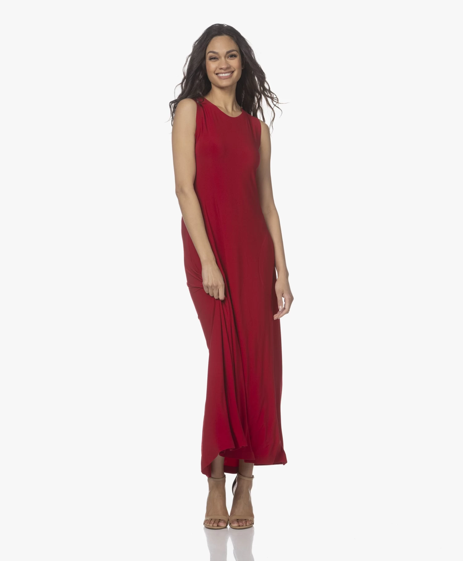 Flatterend voor elk figuur, deze donkerblauwe mouwloze Swing maxi jurk van Norma Kamali. De jurk is ontworpen in een A-lijn silhouet en komt in een comfortabele en gladde technische stretch jersey kwaliteit die nauwelijks kreukt. Laser-cut afwerkingen bij de hals, armsgaten en zoom benadrukken het minimalistische karakter.