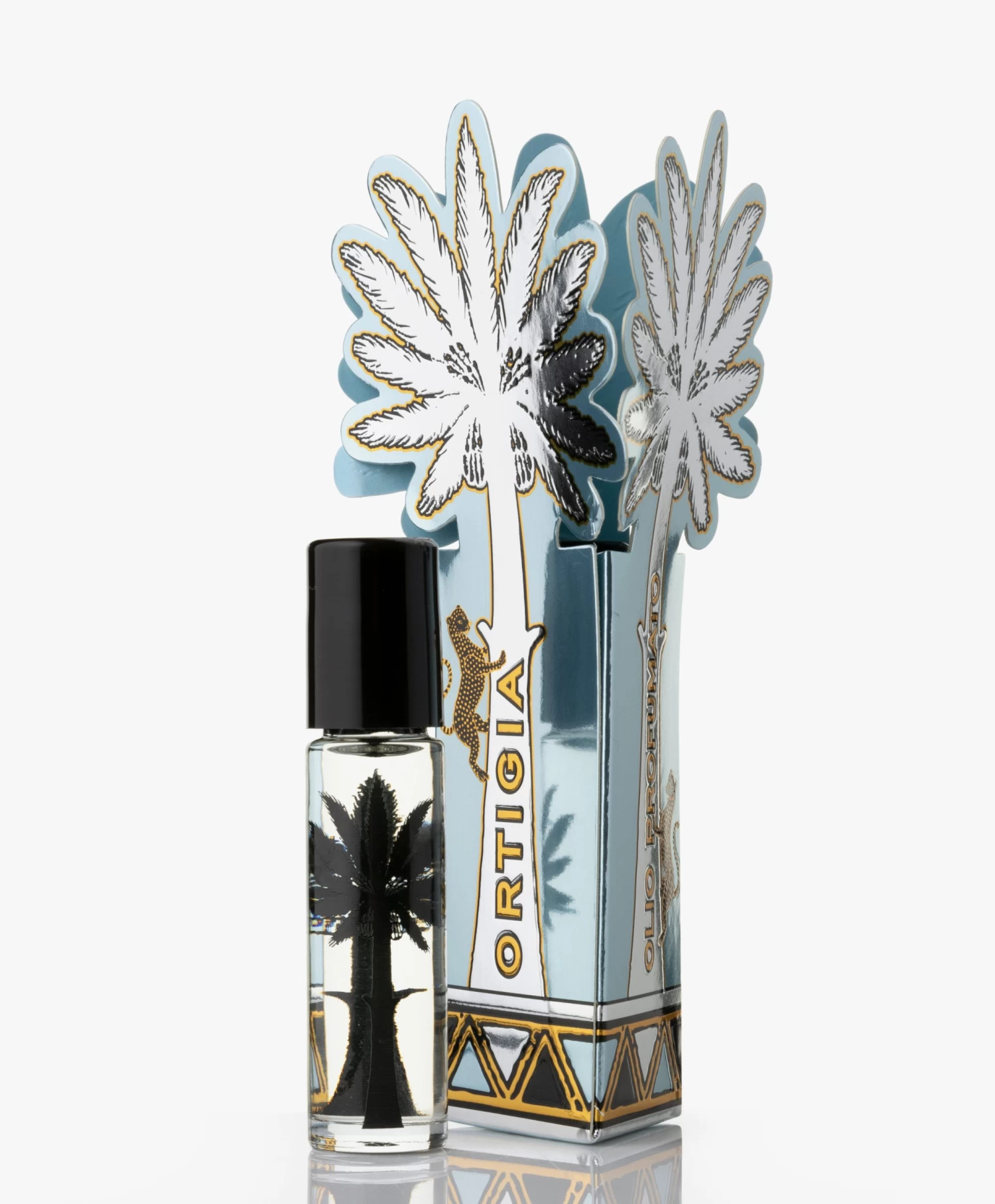 De roll-on parfumolie van Ortigia komt in een glazen design met een palmboom om niet alleen de exotische geur, maar ook het Italiaanse gevoel van het merk overal mee naar toe te nemen. Geformuleerd op basis van natuurlijke kokosolie voor een heerlijk gevoel op de huid in de rijke geur Florio met narcis, jasmijn en wilde iris.