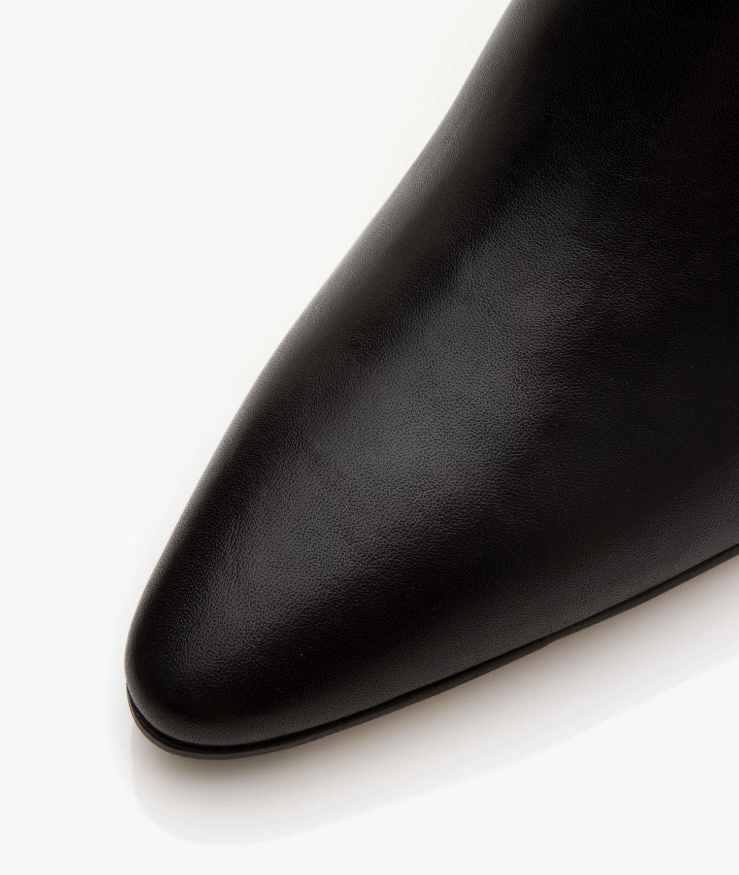 Deze stijlvolle enkellaarzen van Panara zijn uitgevoerd in een zwarte, hoogwaardige leerkwaliteit. Ontworpen met een decoratief gespbandje, een met leer bekleedde middelhoge hak, een elegante schachthoogte en een puntige neus voor een vrouwelijke uitstraling. Door de ritssluiting aan de binnenkant zijn de laarzen gemakkelijk aan te trekken.