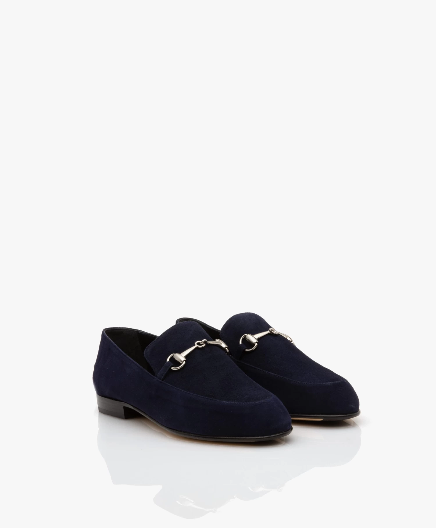 Classy, tijdloos en chic – loafers zijn ieder jaar weer favoriet. Panara’s donkerblauwe instappers brengen veelzijdigheid naar je garderobe. Gemaakt van een gladde en soepele suède kwaliteit en voorzien van een zilverkleurige gesp op de wreef waardoor de luxe uitstraling versterkt wordt. Klassiek design waar je U tegen zegt.