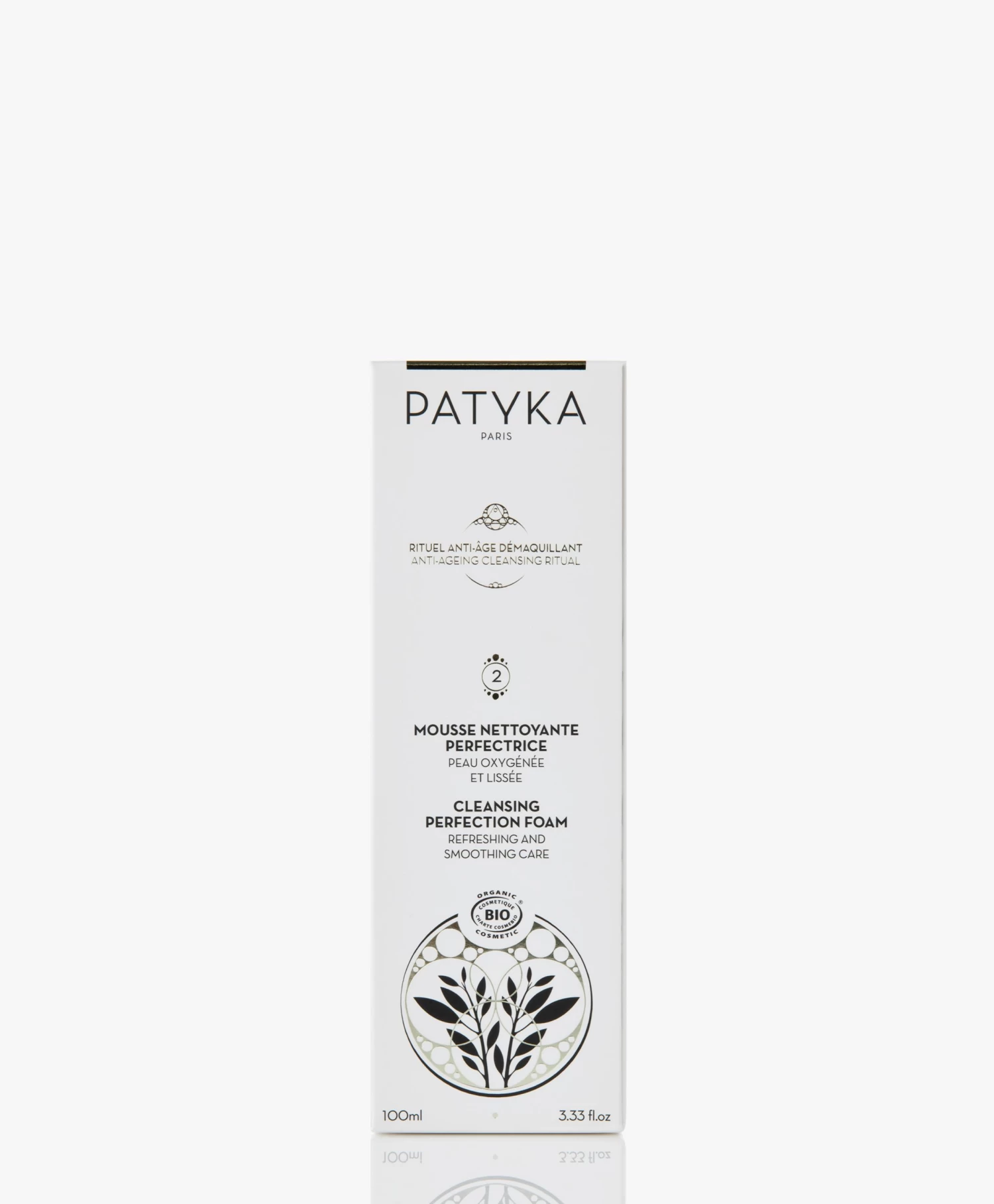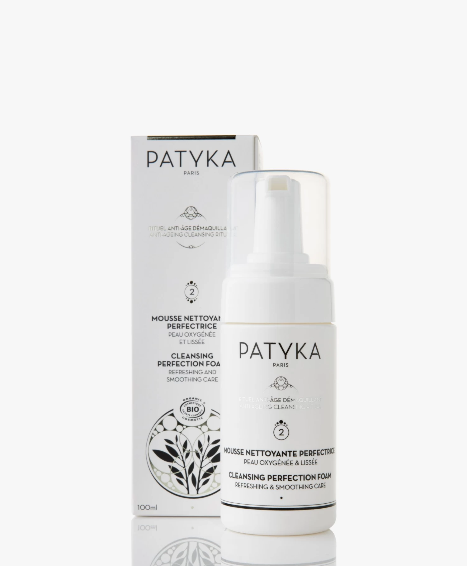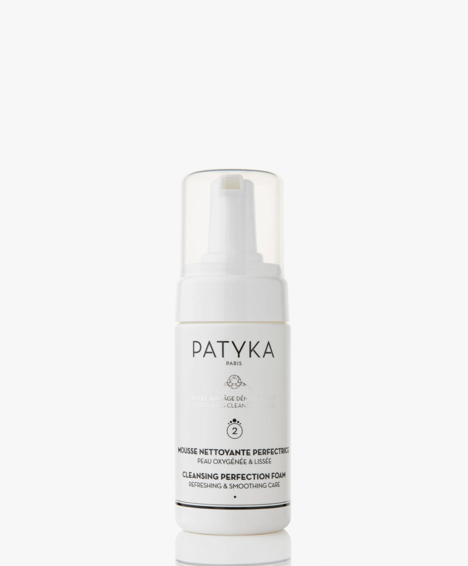 De Cleansing Perfection Foam van Patyka is een complete anti-aging routine om de jeugdigheid van de huid te behouden. Het dichte, romige schuim is verrijkt met natuurlijke en plantaardige actieve ingrediënten die het uiterlijk van een doffe en vermoeide huid doen herleven. Reinig en voeg zuurstof toe aan de opperhuid voor een mooie teint en een fluweelzachte huid. Dankzij de antioxiderende eigenschappen worden tekenen van huidveroudering vertraagd voor een langer mooi uitziende huid. Dit schuim is de tweede stap van het anti-verouderingsritueel na het verwijderen van make-up met de Remarkable Cleansing Oil.