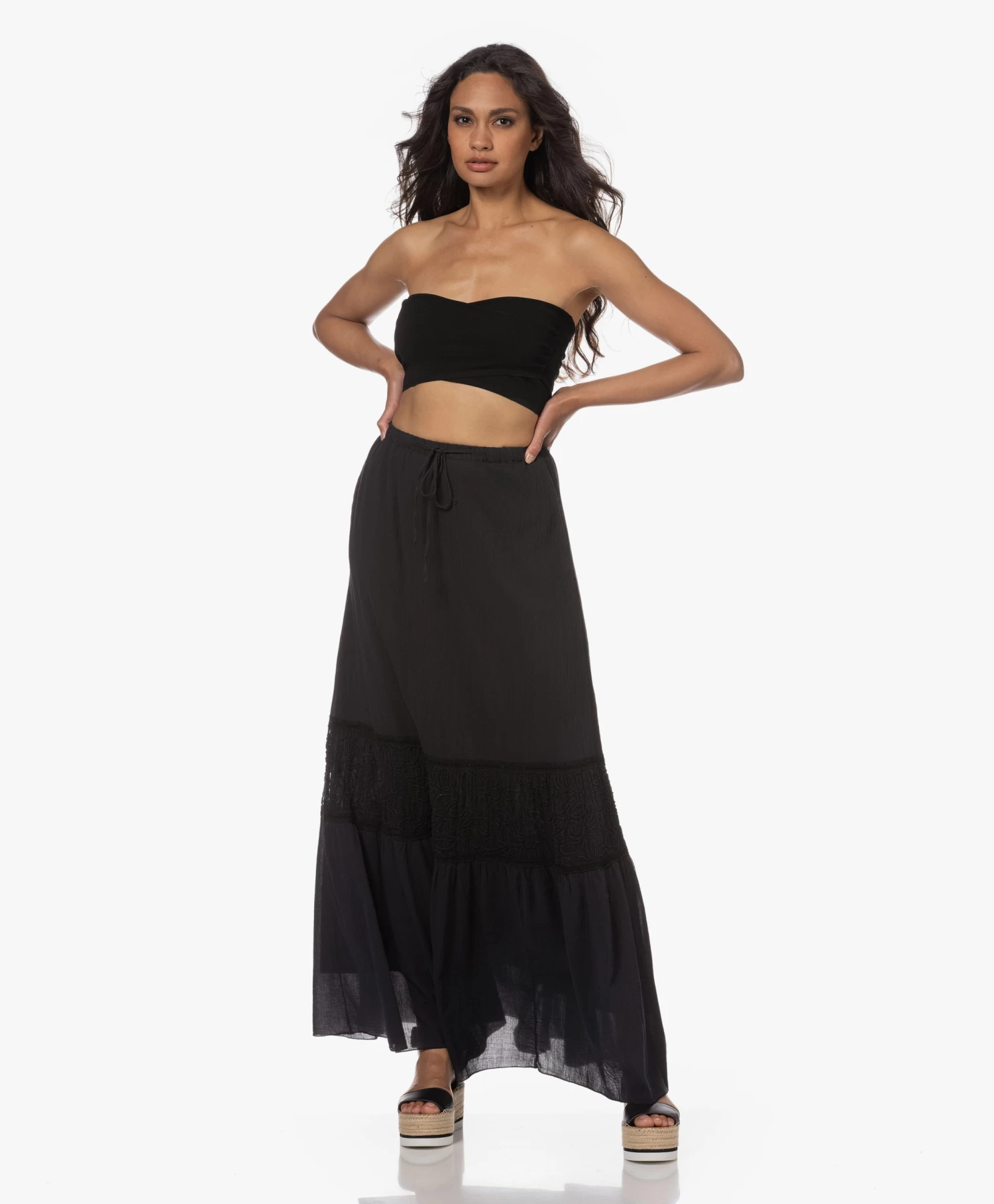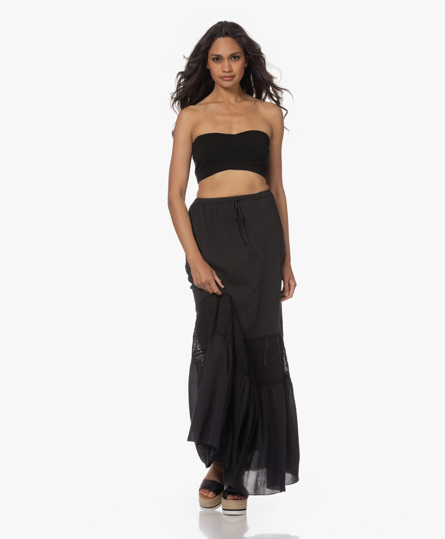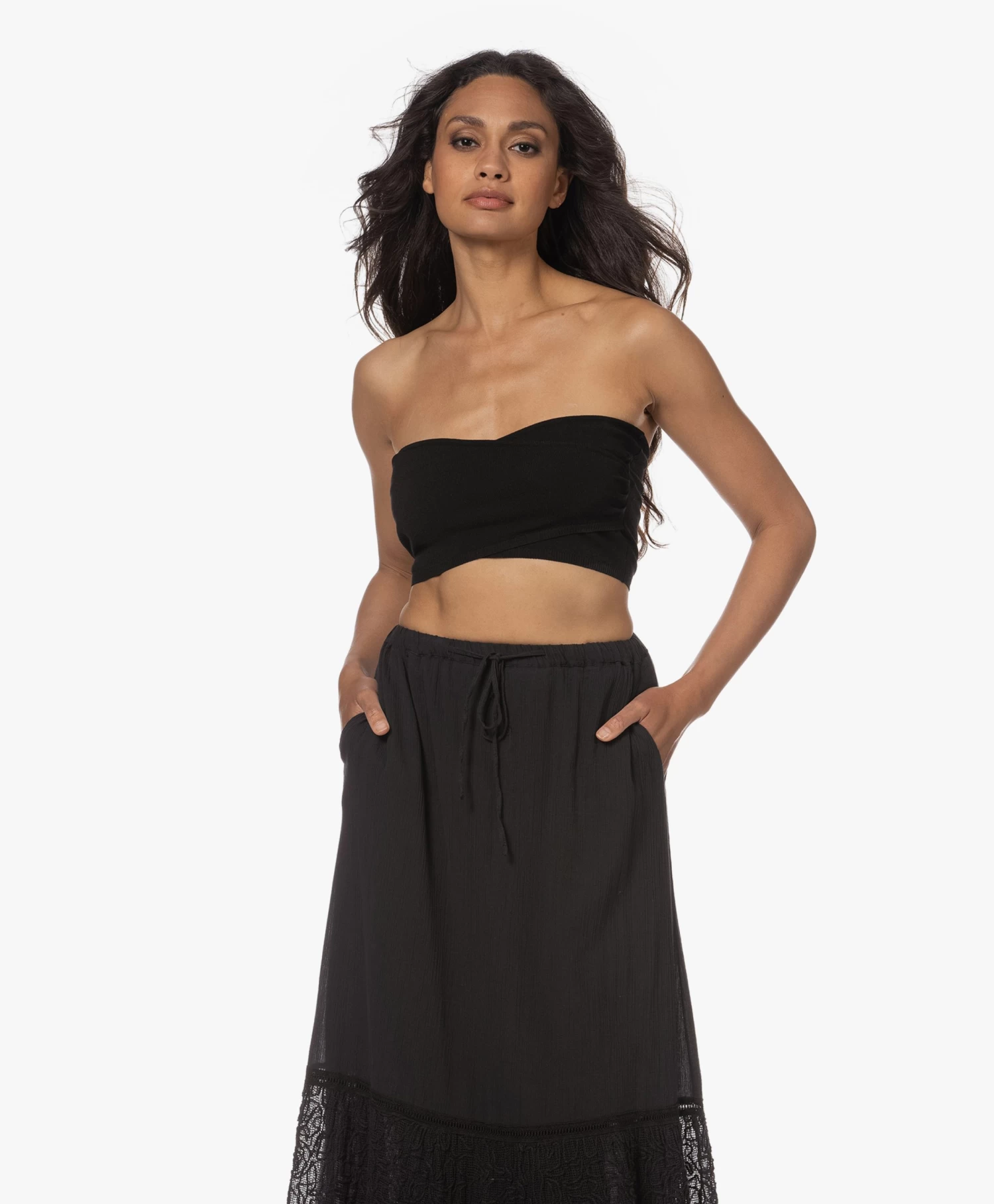 Pomandère’s strapless bandeau top is fijngebreid van viscosemixgaren en heeft daardoor een chique uitstraling. Draag de top gelaagd onder een (transparante) top of nonchalant opengeknoopte blouse: de zwarte kleur combineert goed met werkelijk alles.