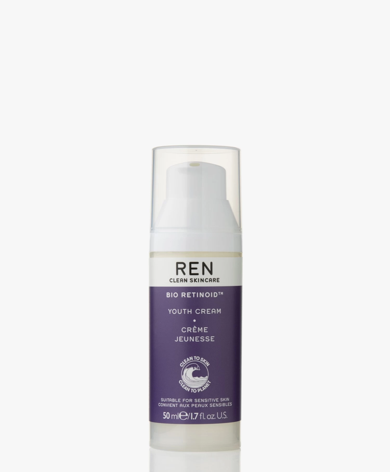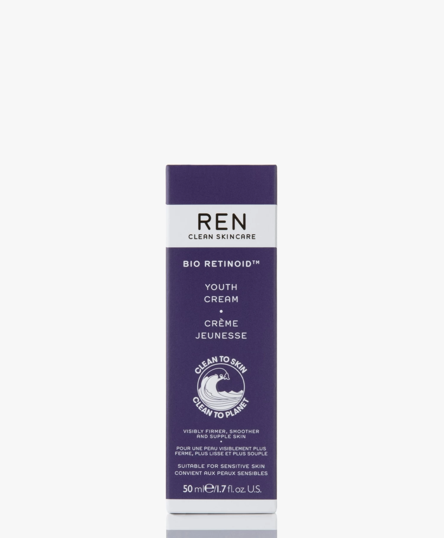 Bio Retinoid Youth Cream van REN Clean Skincare: een baanbrekende anti-ageing crème die zorgt voor retinol resultaten zonder te irriteren. De Bio Retinoid crème is verrijkt met Bidens Pilosa, een plantaardig alternatief voor retinol, om fijne lijntjes en rimpels aanzienlijk te verminderen. Microalgenextract zorgt voor een subtiele lift van het gezicht en olijfbladextract vernieuwt de huidtextuur voor een gladder resultaat. Voor een zichtbaar stevigere, gladdere en jonger uitziende huid.