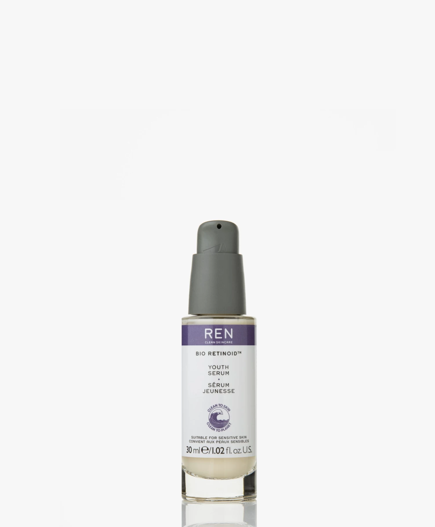 Dit REN Clean Skincare Bio Retinoid Youth Serum is een klinisch bewezen anti-aging serum dat verstevigt, de huidteint en pigmentatie egaliseert, de huid voller maakt, verzacht en de elasticiteit verbetert, terwijl lijntjes en rimpels zichtbaar worden verminderd. Ontwikkeld met een plantaardig alternatief voor Retinol, Bidens Pilosa en met Ceramides en Niacinamide. Dit geconcentreerde en lichtgewicht serum creëert een gezond uitziende huid en komt in een recyclebaar glazen flesje en met een pompje dat gemaakt is van 50% gerecycled plastic.