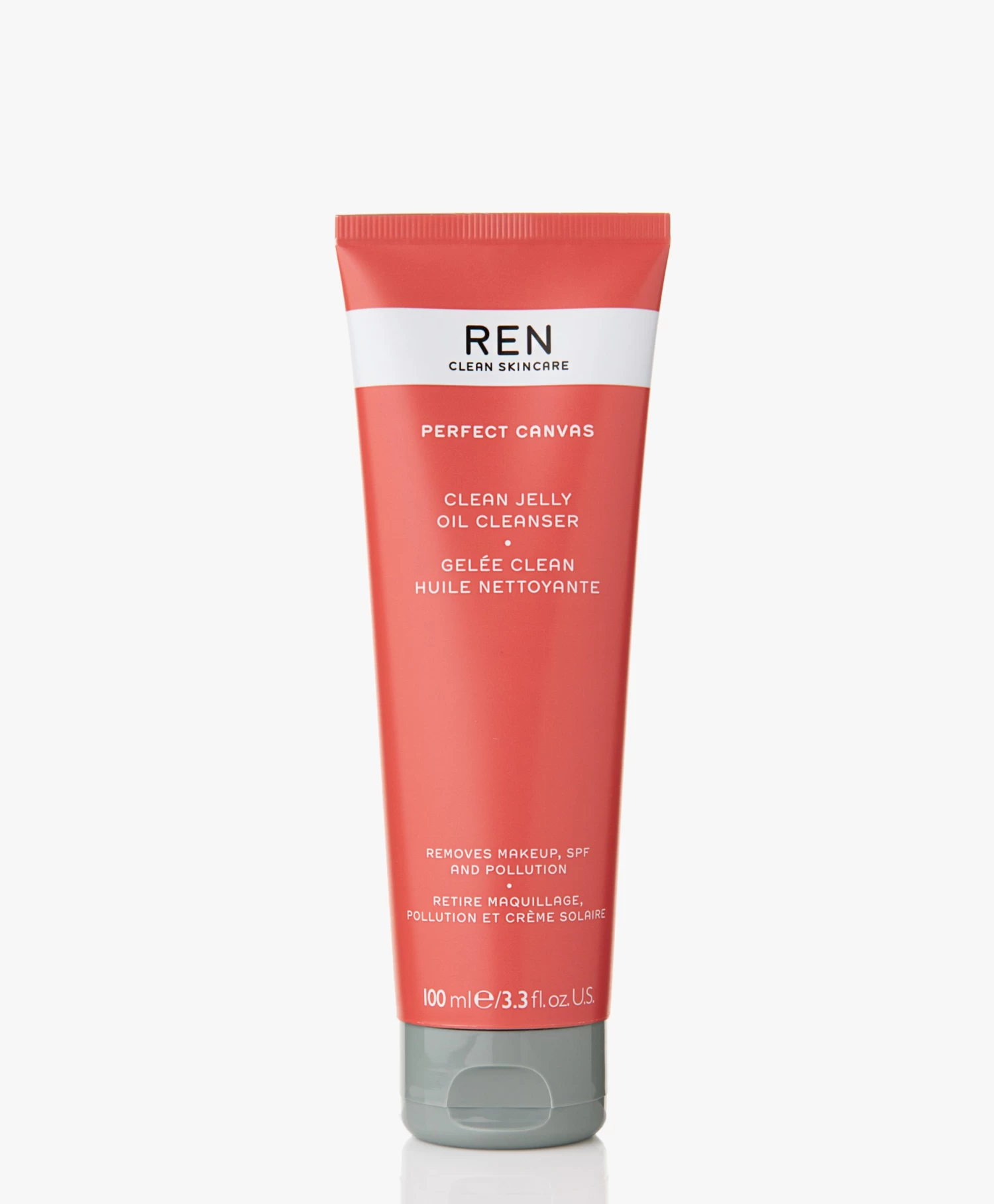 Deze REN Clean Skincare Perfect Canvas Jelly Oil Cleanser is een vegan gezichtsreiniger die op een zachtaardige manier make-up, vuil en zelfs SPF verwijdert – zonder de huid droog, strak of gestript aan te laten voelen. De cleanser zit bomvol oliën waar jouw huid van houdt: zonnebloem-, moerasbloem en druivenpitolie. Vuil en verontreiniging smelten weg, terwijl glycerine hydratatie in de huid opsluit tijdens de reiniging.