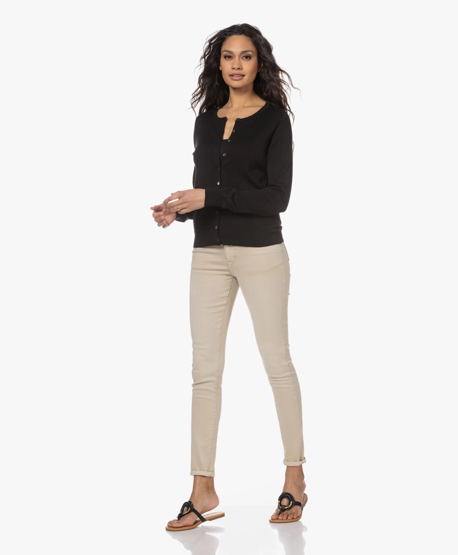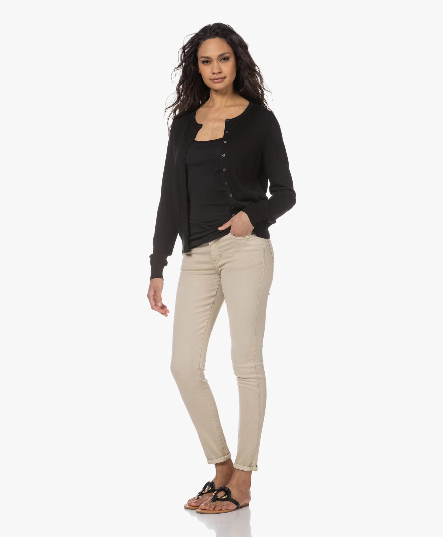 Het is een onvervalste klassieker, dit zwarte vest van Repeat. Fijngebreid in een blend van katoen en viscose, voorzien van een ronde hals en een sluiting met kleine knopen – een ideale neutrale basis voor gelaagde outfits. Goed om te weten voor twinset-fans: om de iconische status te eren heeft Repeat er een mouwloze top bij ontworpen.